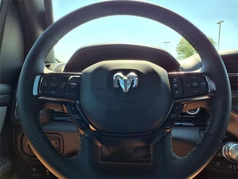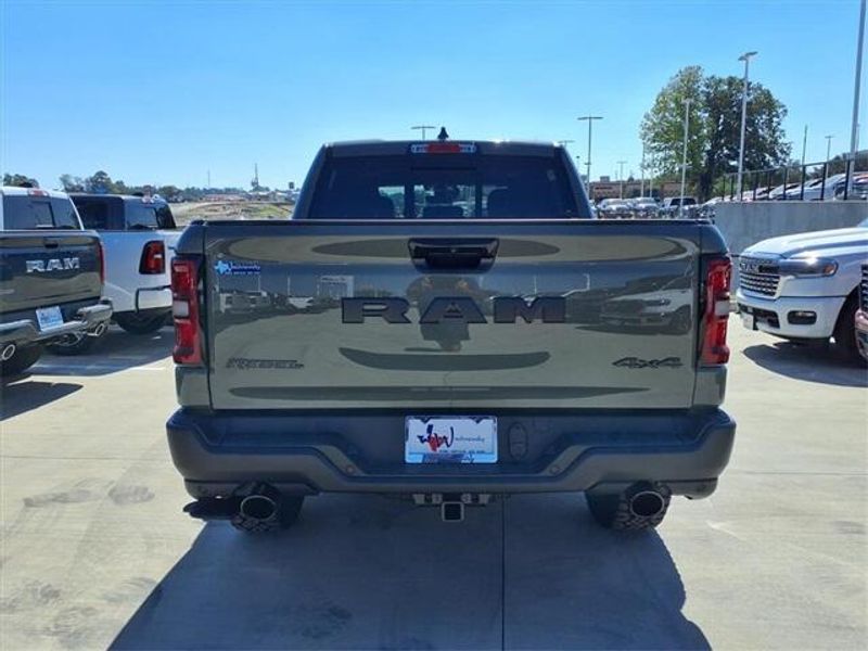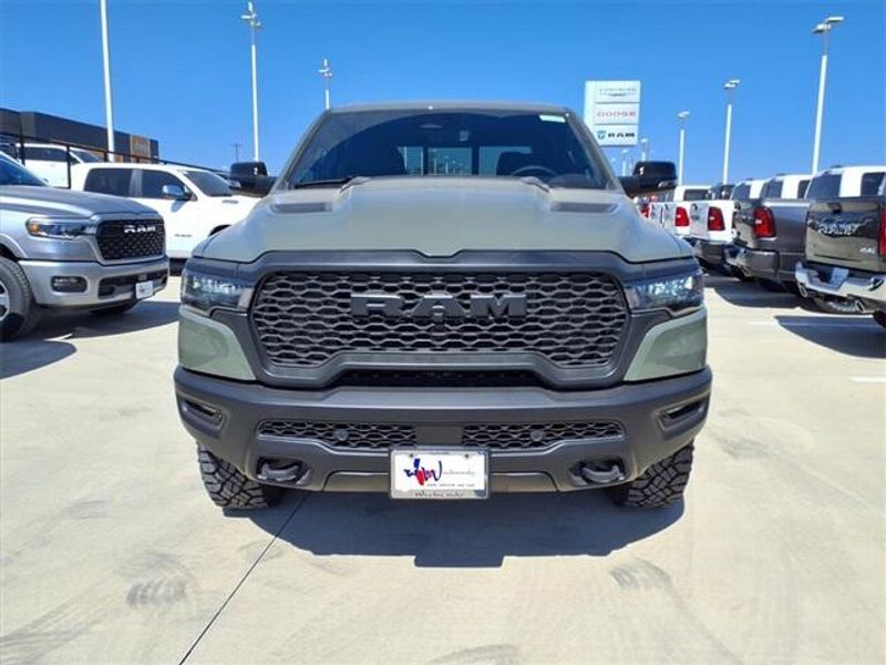 THIS VEHICLE COMES WITH THE FOLLOWING FEATURES AND OPTIONS : Bed Utility Group (Exterior 115V AC Outlet, MOPAR 4 Adjustable Cargo Tie-Down Hooks, and MOPAR Spray in Bedliner), Quick Order Package 21W Rebel, Rebel Level 2 Equipment Group (115V Auxiliary Rear Power Outlet, 14.4'' Touchscreen Display, 2-Door Passive Entry, Front Door Locks, 4G LTE Wi-Fi Hot Spot, Accent Color Door Handles, Accent Color Premium Power Mirrors, Accent Color Tailgate Handle, Apple CarPlay, Auto Power-Folding Mirrors, Auto-Dimming Exterior Driver Mirror, Black Painted Exterior Mirrors Caps, Connected Travel and Traffic Services, Connectivity - US/Canada, Convex Wide-Angle Exterior Mirror Insert, Disassociated Touchscreen Display, Driver Seat Memory, Dual Wireless Charging Pad, Exterior Mirrors Approach Lamps, Exterior Mirrors Courtesy Lamps, Exterior Mirrors with Heating Element, Exterior Mirrors with Memory, Exterior Mirrors with Supplemental Signals, Front Passenger Interactive Display, Global Telematics Box Module, Google Android Auto, GPS Antenna Input, GPS Navigation, Harman/Kardon 19 Speaker Premium Sound, HD Radio, Heated Second Row Seats, Integrated Center Stack Radio, Integrated Voice Command with Bluetooth, Media Hub with 2 Charge Only USBs, Off-Road Information Pages, Power 2-Way Passenger Lumbar Adjust, Power Adjust 8-Way Front Passenger Seat, Power Adjustable Pedals with Memory, Power Tailgate, Proximity Approach/Departure Lamps, Radio: Uconnect 5 Nav with 14.4'' Display, Radio/Driver Seat/Mirrors/Pedals Memory, Rain Sensitive Windshield Wipers, Rear Window Defroster, Security Alarm, SiriusXM Radio Service, SiriusXM with 360L, Smartphone as a Key Capable, and USB Host Flip), 10 Speakers, 3.92 Rear Axle Ratio, 33 Gallon Fuel Tank, 4 Way Front Headrests, 4-Wheel Disc Brakes, ABS brakes, Active Noise Control System, Air Conditioning, Alloy wheels, AM/FM radio: SiriusXM with 360L, Apple CarPlay/Android Auto, Auto High-beam Headlights, Auto-dimming Rear-View mirror, Automatic temperature control, Black Exterior Mirrors, Brake assist, Bucket Seats, Cloth/Vinyl Bucket Seats, Compass, Delay-off headlights, Dome Dual LED Reading Lamp, Driver door bin, Driver vanity mirror, Dual front impact airbags, Dual front side impact airbags, Dual-Pane Panoramic Sunroof, Electronic Stability Control, Front anti-roll bar, Front Bucket Seats, Front Center Armrest w/Storage, Front dual zone A/C, Front fog lights, Front License Plate Bracket, Front reading lights, Front Seat Back Map Pockets, Front wheel independent suspension, Full Length Upgraded Floor Console, Fully automatic headlights, Garage door transmitter, Heated door mirrors, Heated Front Seats, Heated front seats, Heated Steering Wheel, Heated steering wheel, Illuminated entry, Leather steering wheel, Low tire pressure warning, Manual Folding Exterior Mirrors, MyFlexCare Service Plan, Navigation System, Occupant sensing airbag, Outside temperature display, Overhead airbag, Overhead console, Panic alarm, ParkView Rear Back-Up Camera, Passenger door bin, Passenger vanity mirror, Power 2-Way Driver Lumbar Adjust, Power Adjust 8-Way Driver Seat, Power door mirrors, Power driver seat, Power steering, Power windows, Radio data system, Radio: Uconnect 5 Navigation with 12.0'' Display, Rear 60/40 Folding Seat, Rear anti-roll bar, Rear seat center armrest, Rear step bumper, Remote keyless entry, Speed control, Split folding rear seat, Steering wheel mounted audio controls, Tachometer, Telescoping steering wheel, Tilt steering wheel, Traction control, Trailer Brake Control, Trip computer, Variably intermittent wipers, Voltmeter, and Wheels: 18'' x 8.0'' Painted Mid-Gloss Black. Price includes: $3500 - 2026 National Retail Consumer Cash . Exp. 12/01/2025