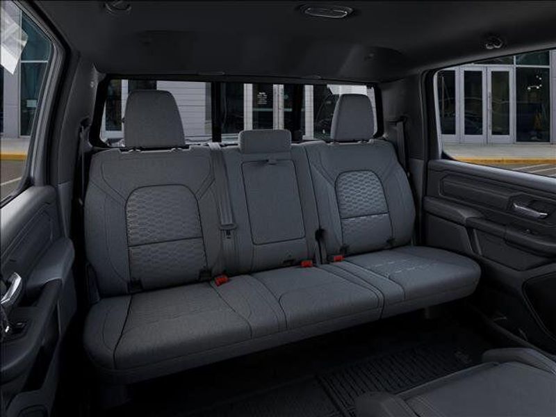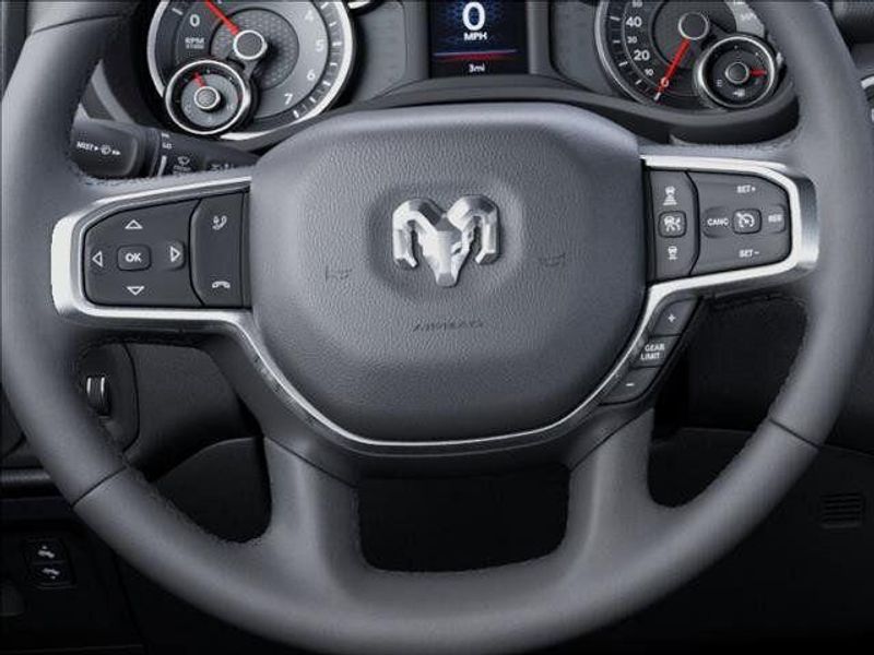 THIS VEHICLE COMES WITH THE FOLLOWING FEATURES AND OPTIONS : Big Horn Level 1 Equipment Group (115V Auxiliary Power Outlet, 2nd Row in Floor Storage Bins, 3 Rear Seat Head Restraints, 4 Way Front Headrests, 400W Inverter, Auto Power-Folding Mirrors, Auto-Dimming Exterior Driver Mirror, Auto-Dimming Rear-View Mirror, Black Exterior Mirrors, Black Premium Power Mirrors, Body Color Fender Flares, Bucket Seats, Center Console Parts Module, Convex Wide-Angle Exterior Mirror Insert, Deluxe Cloth Bucket Seats, Exterior Mirrors Courtesy Lamps, Exterior Mirrors with Heating Element, Exterior Mirrors with Supplemental Signals, Front Seat Back Map Pockets, Full Length Floor Console, Glove Box Lamp, Heated Front Seats, Heated Steering Wheel, Leather Wrapped Steering Wheel, Manual Adjust 4-Way Front Passenger Seat, Power 2-Way Driver Lumbar Adjust, Power Adjust 8-Way Driver Seat, Power Adjustable Pedals, Rear 60/40 Folding Seat, Rear Center Armrest, Rear Dome with on/Off Switch Lamp, Rear Power Sliding Window, Rear Window Defroster, SiriusXM Radio Service, SiriusXM Satellite Radio, Steering Wheel Mounted Audio Controls, Sun Visors with Illuminated Vanity Mirrors, and Universal Garage Door Opener), Quick Order Package 21R Lone Star (Lone Star Badge), 3.21 Rear Axle Ratio, 4-Wheel Disc Brakes, 48V Belt Starter Generator, 4G LTE Wi-Fi Hot Spot, 6 Speakers, ABS brakes, Air Conditioning, Alloy wheels, AM/FM radio, Anti-Spin Differential Rear Axle, Apple CarPlay, Apple CarPlay/Android Auto, Auto High-beam Headlights, Brake assist, Bumpers: chrome, Cloth Bucket Seats, Compass, Connectivity - US/Canada, Delay-off headlights, Driver door bin, Dual front impact airbags, Dual front side impact airbags, Electronic Stability Control, Exterior Parking Camera Rear, Front anti-roll bar, Front Bucket Seats, Front Center Armrest w/Storage, Front fog lights, Front License Plate Bracket, Front reading lights, Front wheel independent suspension, Fully automatic headlights, Global Telematics Box Module, Google Android Auto, GPS Antenna Input, Heated door mirrors, Illuminated entry, Integrated Center Stack Radio, Integrated Voice Command with Bluetooth, Low tire pressure warning, Manual Adjust 4-Way Driver Seat, Manual Folding Exterior Mirrors, MOPAR Front and Rear Rubber Floor Mats, MyFlexCare Service Plan, Occupant sensing airbag, Outside temperature display, Overhead airbag, Overhead console, Panic alarm, Passenger door bin, Passenger vanity mirror, Power door mirrors, Power steering, Power windows, Radio data system, Radio: Uconnect 5 W with 8.4'' Display, RAM Grille Badge - Chrome, Rear anti-roll bar, Rear step bumper, Remote keyless entry, Speed control, Supplier Part Tracking (J-1), Tachometer, Telescoping steering wheel, Tilt steering wheel, Traction control, Trip computer, USB Host Flip, Variably intermittent wipers, Voltmeter, Wheels: 18'' x 8'' Cast-Aluminum Painted, and Wheels: 20'' x 9'' Aluminum Chrome Clad.