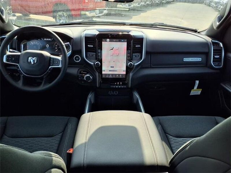 THIS VEHICLE COMES WITH THE FOLLOWING FEATURES AND OPTIONS : Bed Utility Group (Exterior 115V AC Outlet, MOPAR 4 Adjustable Cargo Tie-Down Hooks, MOPAR Spray in Bedliner, and Pick-Up Box Lighting), Big Horn Level 2 Equipment Group (115V Auxiliary Power Outlet, 115V Auxiliary Rear Power Outlet, 12'' Touchscreen Display, 2nd Row in Floor Storage Bins, 3 Rear Seat Head Restraints, 4 Way Front Headrests, 400W Inverter, 4G LTE Wi-Fi Hot Spot, 9 Amplified Speakers with Subwoofer, Air Conditioning ATC with Dual Zone Control, Apple CarPlay, Auto Power-Folding Mirrors, Auto-Dimming Exterior Driver Mirror, Auto-Dimming Rear-View Mirror, Black Exterior Mirrors, Black Premium Power Mirrors, Body Color Fender Flares, Bucket Seats, Center Console Parts Module, Cluster 7.0'' TFT Color Display, Configurable Drive Mode, Connected Travel and Traffic Services, Connectivity - US/Canada, Convex Wide-Angle Exterior Mirror Insert, Deluxe Cloth Bucket Seats, Disassociated Touchscreen Display, Exterior Mirrors Courtesy Lamps, Exterior Mirrors with Heating Element, Exterior Mirrors with Supplemental Signals, Front Seat Back Map Pockets, Full Length Floor Console, Global Telematics Box Module, Glove Box Lamp, Google Android Auto, GPS Antenna Input, GPS Navigation, HD Radio, Heated Front Seats, Heated Steering Wheel, Integrated Center Stack Radio, Integrated Voice Command with Bluetooth, Leather Wrapped Steering Wheel, LED Dome Lamp with on/Off Switch, LED Footwell Lighting, Manual Adjust 4-Way Front Passenger Seat, Media Hub with 2 Charge Only USBs, Overhead LED Lamps, Power 2-Way Driver Lumbar Adjust, Power Adjust 8-Way Driver Seat, Power Adjustable Pedals, Premium Overhead Console, Radio: Uconnect 5 Navigation with 12.0'' Display, Rear 60/40 Folding Seat, Rear Center Armrest, Rear Power Sliding Window, Rear Window Defroster, Remote Tailgate Release, Security Alarm, SiriusXM Radio Service, SiriusXM with 360L, Steering Wheel Mounted Audio Controls, Sun Visors with Illuminated Vanity Mirrors, Universal Garage Door Opener, and USB Host Flip), Quick Order Package 21Z Big Horn, Sport Appearance Package (Black Interior Accents, Body Color Door Handles, Body Color Front Bumper, Body Color Rear Bumper with Step Pads, Body Color Tailgate Handle, Grille Surround 1 Body Color Texture 1 Black, and RAM Grille Badge - Chrome), 4-Wheel Disc Brakes, 48V Belt Starter Generator, 6 Speakers, ABS brakes, Air Conditioning, Alloy wheels, AM/FM radio, Apple CarPlay/Android Auto, Auto High-beam Headlights, Brake assist, Bumpers: chrome, Cloth Bucket Seats, Cluster 12'' TFT Color Display, Compass, Delay-off headlights, Driver door bin, Dual front impact airbags, Dual front side impact airbags, Electronic Stability Control, Front anti-roll bar, Front Bucket Seats, Front Center Armrest w/Storage, Front fog lights, Front License Plate Bracket, Front reading lights, Front wheel independent suspension, Fully automatic headlights, Heated door mirrors, Illuminated entry, Low tire pressure warning, Manual Adjust 4-Way Driver Seat, Manual Folding Exterior Mirrors, Manufacturer's Statement of Origin, MOPAR Front and Rear Rubber Floor Mats, Occupant sensing airbag, Outside temperature display, Overhead airbag, Overhead console, Panic alarm, ParkView Rear Back-Up Camera, Passenger door bin, Passenger vanity mirror, Power door mirrors, Power steering, Power windows, Radio data system, Radio: Uconnect 5 W with 8.4'' Display, Rear anti-roll bar, Rear step bumper, Rear Wheelhouse Liners, Remote keyless entry, Speed control, Supplier Part Tracking (J-1), Tachometer, Telescoping steering wheel, Tilt steering wheel, Traction control, Trip computer, Variably intermittent wipers, Voltmeter, and Wheel to Wheel Side Steps. Price includes: $3500 - 2026 National Retail Consumer Cash . Exp. 12/01/2025