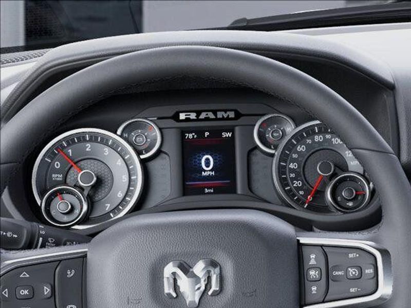 THIS VEHICLE COMES WITH THE FOLLOWING FEATURES AND OPTIONS : Big Horn Level 1 Equipment Group (115V Auxiliary Power Outlet, 2nd Row in Floor Storage Bins, 3 Rear Seat Head Restraints, 4 Way Front Headrests, 400W Inverter, Auto Power-Folding Mirrors, Auto-Dimming Exterior Driver Mirror, Auto-Dimming Rear-View Mirror, Black Exterior Mirrors, Black Premium Power Mirrors, Body Color Fender Flares, Bucket Seats, Center Console Parts Module, Convex Wide-Angle Exterior Mirror Insert, Deluxe Cloth Bucket Seats, Exterior Mirrors Courtesy Lamps, Exterior Mirrors with Heating Element, Exterior Mirrors with Supplemental Signals, Front Seat Back Map Pockets, Full Length Floor Console, Glove Box Lamp, Heated Front Seats, Heated Steering Wheel, Leather Wrapped Steering Wheel, Manual Adjust 4-Way Front Passenger Seat, Power 2-Way Driver Lumbar Adjust, Power Adjust 8-Way Driver Seat, Power Adjustable Pedals, Rear 60/40 Folding Seat, Rear Center Armrest, Rear Dome with on/Off Switch Lamp, Rear Power Sliding Window, Rear Window Defroster, SiriusXM Radio Service, SiriusXM Satellite Radio, Steering Wheel Mounted Audio Controls, Sun Visors with Illuminated Vanity Mirrors, and Universal Garage Door Opener), Quick Order Package 21Z Big Horn, 4-Wheel Disc Brakes, 48V Belt Starter Generator, 4G LTE Wi-Fi Hot Spot, 6 Speakers, ABS brakes, Air Conditioning, Alloy wheels, AM/FM radio, Anti-Spin Differential Rear Axle, Apple CarPlay, Apple CarPlay/Android Auto, Auto High-beam Headlights, Brake assist, Bumpers: chrome, Cloth Bucket Seats, Compass, Connectivity - US/Canada, Delay-off headlights, Driver door bin, Dual front impact airbags, Dual front side impact airbags, Electronic Stability Control, Front anti-roll bar, Front Bucket Seats, Front Center Armrest w/Storage, Front fog lights, Front License Plate Bracket, Front reading lights, Front wheel independent suspension, Fully automatic headlights, Global Telematics Box Module, Google Android Auto, GPS Antenna Input, Heated door mirrors, Illuminated entry, Integrated Center Stack Radio, Integrated Voice Command with Bluetooth, Low tire pressure warning, Manual Adjust 4-Way Driver Seat, Manual Folding Exterior Mirrors, Manufacturer's Statement of Origin, Occupant sensing airbag, Outside temperature display, Overhead airbag, Overhead console, Panic alarm, ParkView Rear Back-Up Camera, Passenger door bin, Passenger vanity mirror, Power door mirrors, Power steering, Power windows, Radio data system, Radio: Uconnect 5 W with 8.4'' Display, RAM Grille Badge - Chrome, Rear anti-roll bar, Rear step bumper, Remote keyless entry, Speed control, Supplier Part Tracking (J-1), Tachometer, Telescoping steering wheel, Tilt steering wheel, Traction control, Trip computer, USB Host Flip, Variably intermittent wipers, Voltmeter, and Wheels: 20'' x 9'' Aluminum Chrome Clad. Price includes: $1000 - 2026 Southwest BC State of Texas Regional Bonus Cash . Exp. 04/30/2026 $3500 - 2026 National Retail Bonus Cash . Exp. 04/30/2026 $750 - 2026 Southwest BC Retail Bonus Cash . Exp. 04/30/2026