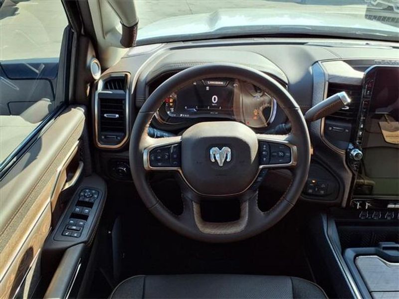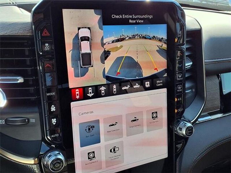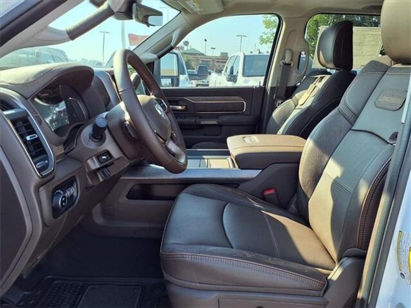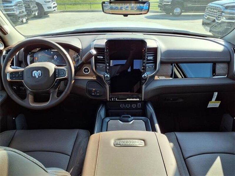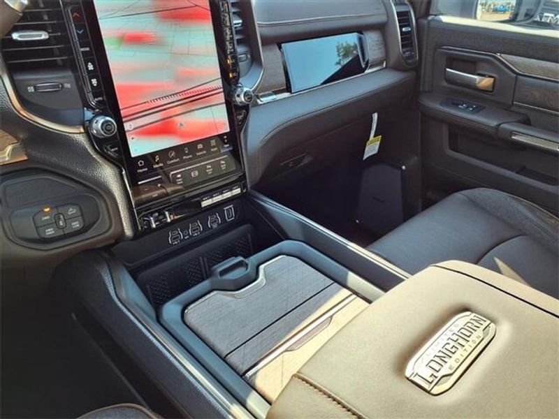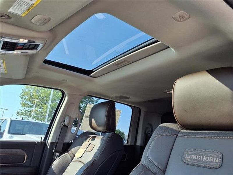 THIS VEHICLE COMES WITH THE FOLLOWING FEATURES AND OPTIONS : 5th Wheel/Gooseneck Towing Prep Group (Pickup Box, Vendor Painted Cargo Box, and Vendor Painted Cargo Box Tracking), Longhorn Level 1 Equipment Group (Anti-Spin Differential Rear Axle, Center Stop Lamp w/Cargo View Camera, Digital Rearview Mirror, LED Bed Lighting, MOPAR Spray In Bedliner, Power Deployable Running Boards, Surround View Camera System, Trailer Reverse Guidance, and Trailer Tire Pressure Monitoring System), Off Road Package (Front Performance Tuned Shock Absorbers, Hill Descent Control, and Rear Performance Tuned Shock Absorbers), Quick Order Package 24K Longhorn (I/P Aluminum Litho Bezels w/Real Wood #1, Longhorn Badge, Longhorn Instrument Cluster Theme 3, Luxury Front & Rear Floor Mats, Premium Filigree Leather Seats, and Warm Chrome Key Fob), Safety Group (Active Lane Management System, Adaptive Steering System, Drowsy Driver Detection, and Traffic Sign Recognition), Tow-Mode Digital Rearview Mirror Package (Tow-Mode Camera (Wired)), 17 Speakers, 3.42 Axle Ratio, 4-Wheel Disc Brakes, ABS brakes, Adjustable pedals, Air Conditioning, Alloy wheels, AM/FM radio: SiriusXM with 360L, Apple CarPlay/Android Auto, Audio memory, Auto High-beam Headlights, Auto-dimming door mirrors, Auto-dimming Rear-View mirror, Automatic temperature control, Black Wheel Center Hub, Bodyside moldings, Brake assist, Bumpers: body-color, Clearance Lamps, Compass, Dash Pass Thru Wire Circuits, Delay-off headlights, Driver door bin, Driver vanity mirror, Dual Alternators Rated at 480 Amps, Dual front impact airbags, Dual front side impact airbags, Electronic Stability Control, Engine Block Heater, Front anti-roll bar, Front Bucket Seats, Front Center Armrest w/Storage, Front dual zone A/C, Front fog lights, Front License Plate Bracket, Front reading lights, Fully automatic headlights, Garage door transmitter, Genuine wood console insert, Genuine wood dashboard insert, Genuine wood door panel insert, harman/kardon Speakers, Heated door mirrors, Heated front seats, Heated rear seats, Heated steering wheel, I/P Mounted Auxiliary Switches, Illuminated entry, Leather steering wheel, Low tire pressure warning, Manufacturer's Statement of Origin, Memory seat, MyFlexCare Service Diesel, Navigation System, Occupant sensing airbag, Outside temperature display, Overhead airbag, Overhead console, Panic alarm, ParkView Rear Back-Up Camera, Passenger door bin, Passenger vanity mirror, Pedal memory, Power door mirrors, Power driver seat, Power passenger seat, Power steering, Power Sunroof, Power windows, Radio data system, Radio: Uconnect 5 Nav w/14.4'' Display, Rain sensing wipers, Rear anti-roll bar, Rear reading lights, Rear seat center armrest, Rear step bumper, Rear window defroster, Remote keyless entry, Security system, Speed control, Split folding rear seat, Steering wheel mounted audio controls, Tachometer, Tilt steering wheel, Traction control, Trip computer, Turn signal indicator mirrors, Ultra Premium Leather Seats, Variably intermittent wipers, Ventilated front seats, Voltmeter, and Wheels: 20'' x 8'' Diamond Cut Aluminum.