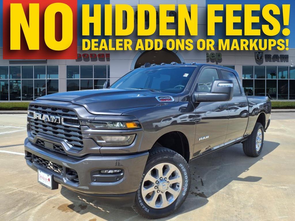 $4,345 off MSRP! This 2500 Big Horn vehicle comes nicely equipped with Big Horn Level 1 Plus Equipment Group (12'' Touchscreen Display, 2 Way Rear Headrest Seat, 2nd Row In Floor Storage Bins, 4 Way Front Headrests, 40/20/40 Split Bench Seat, 4G LTE Wi-Fi Hot Spot, 9 Alpine Speakers w/Subwoofer, Air Conditioning ATC w/Dual Zone Control, Alexa Built-In, Anti-Spin Differential Rear Axle, Apple CarPlay, Auto Power-Folding Mirrors, Auto-Dimming Rear-View Mirror, Black Exterior Mirrors, Connected Travel & Traffic Services, Connectivity - US/Canada, Disassociated Touchscreen Display, Dual Glove Boxes, Emergency Vehicle Alert System (EVAS), Exterior Mirrors Courtesy Lamps, Exterior Mirrors w/Heating Element, Exterior Mirrors w/Supplemental Signals, Foam Bottle Insert (Door Trim Panel), Folding Flat Load Floor Storage, Footwell Courtesy Lamp, For Details, Visit DriveUconnect.com, For More Info, Call 800-643-2112, Forward & Reverse Utility Lights, Front Armrest w/Cupholders, Front Center Seat Cushion Storage, Front Seat Back Map Pockets, Global Telematics Box Module (TBM), Glove Box Lamp, Google Android Auto, GPS Antenna Input, GPS Navigation, HD Radio, Integrated Voice Command w/Bluetooth, LED Bed Lighting, Locking Lower Glove Box, Luxury Steering Wheel, Manual Adjust 4-Way Front Passenger Seat, Mirror Running Lights, MOPAR Deployable Bed Step, MOPAR Spray In Bedliner, Off-Road Info Pages, Power 2-Way Driver Lumbar Adjust, Power Adjust 8-Way Driver Seat, Power Adjust Mirrors, Power Heated Folding Telescopic Mirrors, Power Telescoping Mirrors, Power-Adjustable Convex Aux Mirrors, Premium Cloth 40/20/40 Bench Seat, Radio: Uconnect 5 Nav w/12.0'' Display, Rear 60/40 Folding Seat, Rear Dome w/On/Off Switch Lamp, Remote Start System, Remote USB Port - Charge Only, Selectable Tire Fill Alert, SiriusXM Radio Service, SiriusXM w/360L, Steering Wheel Mounted Audio Controls, Storage Tray, and Trailer Tow Pages), Quick Order Package 2UY Lone Star (Regional) (Lone Star Badge), Sport Appearance Package (Black Interior Accents, Body Color Grille-Surround, Painted Front Bumper, Painted Rear Bumper, and Sport Decal), 20'' x 8.0'' Polished Aluminum Wheels, 3.73 Axle Ratio, 4-Wheel Disc Brakes, 6 Speakers, ABS brakes, Air Conditioning, Alloy wheels, AM/FM radio: SiriusXM, Apple CarPlay/Android Auto, Brake assist, Bumpers: chrome, Center Hub, Clearance Lamps, Cloth 40/20/40 Bench Seat, Compass, Delay-off headlights, Driver door bin, Dual front impact airbags, Dual front side impact airbags, Electronic Stability Control, Front anti-roll bar, Front Center Armrest w/Storage, Front fog lights, Front License Plate Bracket, Front reading lights, Fully automatic headlights, Heated door mirrors, Illuminated entry, Low tire pressure warning, Manual Adjust 4-Way Driver Seat, MOPAR Front & Rear Rubber Floor Mats, Occupant sensing airbag, Outside temperature display, Overhead airbag, Overhead console, Panic alarm, ParkView Rear Back-Up Camera, Passenger door bin, Passenger vanity mirror, Power door mirrors, Power steering, Power windows, Radio data system, Radio: Uconnect 5 w/8.4'' Display, Rear anti-roll bar, Rear Folding Seat, Rear seat center armrest, Rear step bumper, Rear window defroster, Remote keyless entry, Security system, Speed control, Tachometer, Tilt steering wheel, Traction control, Trip computer, Turn signal indicator mirrors, Variably intermittent wipers, Voltmeter, and Wheels: 18'' x 8.0'' Polished AluminuM.