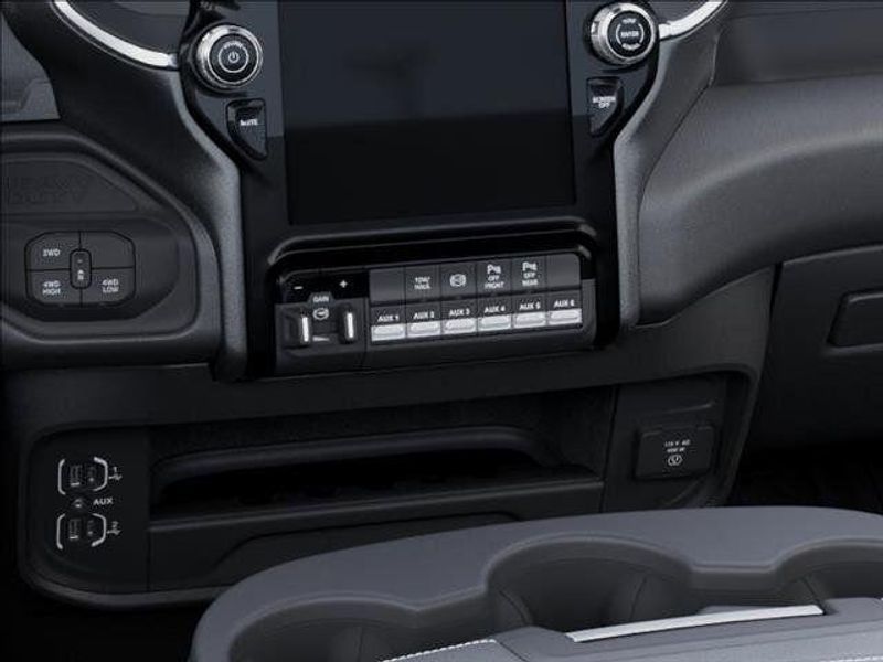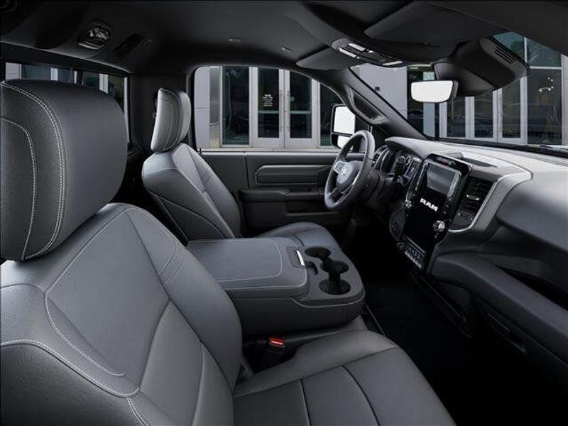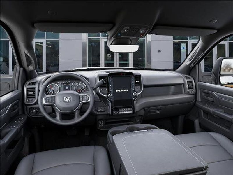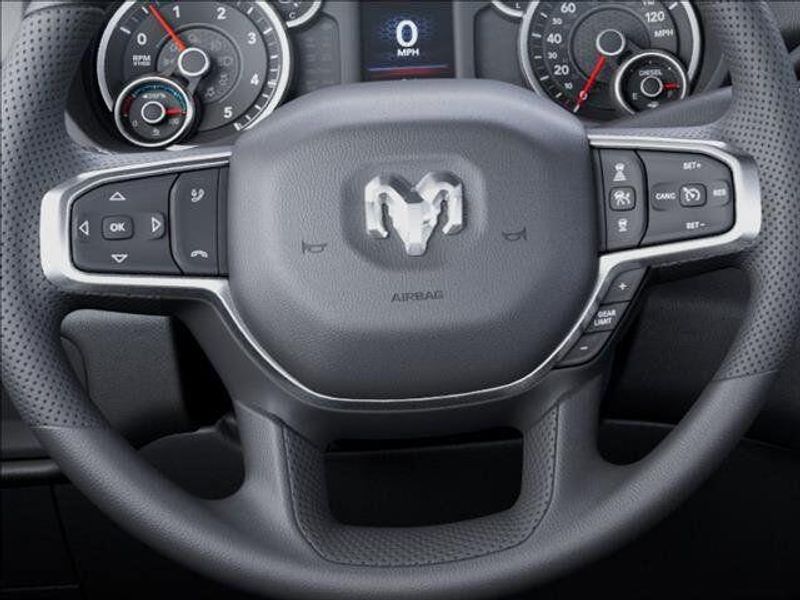 THIS VEHICLE COMES WITH THE FOLLOWING FEATURES AND OPTIONS : Commercial Features Package (ParkSense Front/Rear Park Assist System), Quick Order Package 24A Tradesman, Tradesman Level 2A Equipment Group (12'' Touchscreen Display, 4 Way Front Headrests, 40/20/40 Split Bench Seat, 4G LTE Wi-Fi Hot Spot, 6 Speakers, Air Conditioning ATC with Dual Zone Control, Alexa Built-in, Apple CarPlay, Auto-Dimming Rear-View Mirror, Black Exterior Mirrors, Bright Front Bumper, Bright Rear Bumper, Bright Wheel Skins, Carpet Floor Covering, Center Hub, Chrome Grille Surround, Cloth 40/20/40 Bench Seat, Connected Travel and Traffic Services, Connectivity - US/Canada, Convenience Group, Disassociated Touchscreen Display, Emergency Vehicle Alert System (EVAS), Exterior Mirrors Courtesy Lamps, Exterior Mirrors with Heating Element, Exterior Mirrors with Supplemental Signals, For Details Visit DriveUconnect.com, For More Info, Call 800-643-2112, Front 1-Touch Down Power Windows, Front Armrest with Cupholders, Front Floor Mats, Global Telematics Box Module, Google Android Auto, GPS Antenna Input, GPS Navigation, HD Radio, Integrated Voice Command with Bluetooth, Manual Adjust 4-Way Driver Seat, Manual Adjust 4-Way Front Passenger Seat, Manual Folding Exterior Mirrors, Manual Telescoping Mirrors, Matte Black Mesh with Chrome Grille, Mirror Running Lights, Mopar Black Tubular Side Steps, Off-Road Information Pages, Power Adjust Mirrors, Power Heat Fold Telescope Mirrors, Power-Adjustable Convex Aux Mirrors, Radio: Uconnect 5 Navigation with 12.0'' Display, Rear Sliding Window, Remote Keyless Entry, Remote USB Port - Charge Only, Selectable Tire Fill Alert, SiriusXM Radio Service, SiriusXM with 360L, Speed Sensitive Power Locks, Tinted Acoustic Windshield Glass, Trailer Tow Pages, and Upgraded Door Trim Panel), 4 Speakers, 4-Wheel Disc Brakes, ABS brakes, Air Conditioning, AM/FM radio: SiriusXM, Apple CarPlay/Android Auto, Black Wheel Center Hub, Brake assist, Clearance Lamps, Compass, Dash Pass Thru Wire Circuits, Delay-off headlights, Driver door bin, Dual front impact airbags, Dual front side impact airbags, Electronic Stability Control, Front anti-roll bar, Front Center Armrest w/Storage, Front fog lights, Front License Plate Bracket, Front reading lights, Fully automatic headlights, Illuminated entry, Instrument Panel Mounted Auxiliary Switches, Low tire pressure warning, Manufacturer's Statement of Origin, MOPAR Front Rubber Floor Mats, MyFlexCare Service Diesel, Occupant sensing airbag, Outside temperature display, Overhead airbag, Overhead console, ParkView Rear Back-Up Camera, Passenger door bin, Passenger vanity mirror, Power steering, Radio data system, Radio: Uconnect 5 with 8.4'' Display, Rear step bumper, Speed control, Tachometer, Tilt steering wheel, Traction control, Variably intermittent wipers, Voltmeter, Wheels: 18'' x 8.0'' Black Painted Steel, and Wheels: 18'' x 8.0'' Steel Chrome ClaD.
