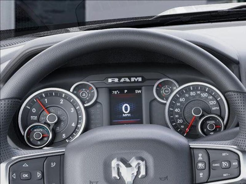 THIS VEHICLE COMES WITH THE FOLLOWING FEATURES AND OPTIONS : Commercial Features Package (ParkSense Front/Rear Park Assist System), Quick Order Package 24A Tradesman, Tradesman Level 2A Equipment Group (12'' Touchscreen Display, 4 Way Front Headrests, 40/20/40 Split Bench Seat, 4G LTE Wi-Fi Hot Spot, 6 Speakers, Air Conditioning ATC with Dual Zone Control, Alexa Built-in, Apple CarPlay, Auto-Dimming Rear-View Mirror, Black Exterior Mirrors, Bright Front Bumper, Bright Rear Bumper, Bright Wheel Skins, Carpet Floor Covering, Center Hub, Chrome Grille Surround, Cloth 40/20/40 Bench Seat, Connected Travel and Traffic Services, Connectivity - US/Canada, Convenience Group, Disassociated Touchscreen Display, Emergency Vehicle Alert System (EVAS), Exterior Mirrors Courtesy Lamps, Exterior Mirrors with Heating Element, Exterior Mirrors with Supplemental Signals, For Details Visit DriveUconnect.com, For More Info, Call 800-643-2112, Front 1-Touch Down Power Windows, Front Armrest with Cupholders, Front Floor Mats, Global Telematics Box Module, Google Android Auto, GPS Antenna Input, GPS Navigation, HD Radio, Integrated Voice Command with Bluetooth, Manual Adjust 4-Way Driver Seat, Manual Adjust 4-Way Front Passenger Seat, Manual Folding Exterior Mirrors, Manual Telescoping Mirrors, Matte Black Mesh with Chrome Grille, Mirror Running Lights, Mopar Black Tubular Side Steps, Off-Road Information Pages, Power Adjust Mirrors, Power Heat Fold Telescope Mirrors, Power-Adjustable Convex Aux Mirrors, Radio: Uconnect 5 Navigation with 12.0'' Display, Rear Sliding Window, Remote Keyless Entry, Remote USB Port - Charge Only, Selectable Tire Fill Alert, SiriusXM Radio Service, SiriusXM with 360L, Speed Sensitive Power Locks, Tinted Acoustic Windshield Glass, Trailer Tow Pages, and Upgraded Door Trim Panel), 4 Speakers, 4-Wheel Disc Brakes, 6000# Front Axle with Hub Extension, ABS brakes, Air Conditioning, AM/FM radio: SiriusXM, Apple CarPlay/Android Auto, Black Wheel Center Hub, Box and Rear Fender Clearance Lamps, Brake assist, Clearance Lamps, Compass, Delay-off headlights, Driver door bin, Dual front impact airbags, Dual front side impact airbags, Dual Rear Wheels, Electronic Stability Control, Front anti-roll bar, Front Center Armrest w/Storage, Front fog lights, Front License Plate Bracket, Front reading lights, Fully automatic headlights, Illuminated entry, Low tire pressure warning, MyFlexCare Service Diesel, Nexen Brand Tires, Occupant sensing airbag, Outside temperature display, Overhead airbag, Overhead console, ParkView Rear Back-Up Camera, Passenger door bin, Passenger vanity mirror, Power steering, Radio data system, Radio: Uconnect 5 with 8.4'' Display, Rear step bumper, Rear Wheelhouse Liners, Speed control, Tachometer, Tilt steering wheel, Traction control, Variably intermittent wipers, Voltmeter, Wheels: 17'' x 6.0'' Black Painted Steel, Wheels: 17'' x 6.0'' Steel Chrome Clad, and Wheels: 18'' x 8.0'' Black Painted SteeL. Price includes: $1000 - 2026 National Bonus Cash . Exp. 04/30/2026 $2000 - 2026 Southwest BC State of Texas Regional Bonus Cash . Exp. 04/30/2026