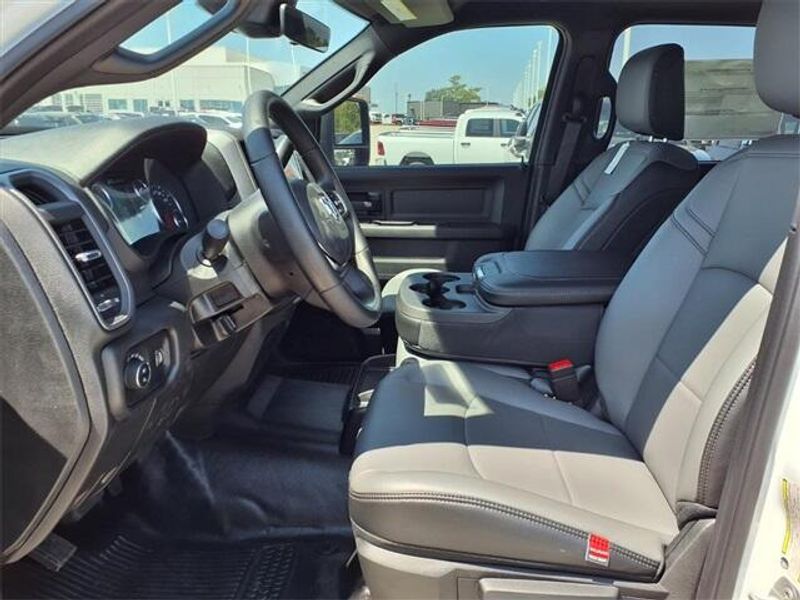 THIS VEHICLE COMES WITH THE FOLLOWING FEATURES AND OPTIONS : Chrome Appearance Group A (115V Auxiliary Front Power Outlet, 400W Inverter, Bright Front Bumper, Bright Rear Bumper, Bright Wheel Skins, Center Hub, Chrome Grille Surround, Exterior 115V AC Outlet, and Matte Black Mesh w/Chrome Grille), Quick Order Package 2UA Tradesman, 2 Way Rear Headrest Seat, 3.73 Axle Ratio, 4 Way Front Headrests, 4-Wheel Disc Brakes, 40/20/40 Split Bench Seat, 4G LTE Wi-Fi Hot Spot, 50 Gallon Fuel Tank, 5th Wheel/Gooseneck Towing Prep Group, 6 Speakers, 6000# Front Axle w/Hub Ext, ABS brakes, Air Conditioning, AM/FM radio: SiriusXM, Apple CarPlay, Apple CarPlay/Android Auto, Black Exterior Mirrors, Black Wheel Center Hub, Box & Rear Fender Clearance Lamps, Brake assist, Clearance Lamps, Compass, Connectivity - US/Canada, Delay-off headlights, Driver door bin, Dual front impact airbags, Dual front side impact airbags, Dual Rear Wheels, Electronic Stability Control, Front anti-roll bar, Front Armrest w/Cupholders, Front Center Armrest w/Storage, Front fog lights, Front License Plate Bracket, Front reading lights, Fully automatic headlights, Global Telematics Box Module (TBM), Google Android Auto, GPS Antenna Input, HD Vinyl 40/20/40 Split Bench Seat, Illuminated entry, Integrated Voice Command w/Bluetooth, Low tire pressure warning, Manual Adjust 4-Way Driver Seat, Manual Adjust 4-Way Front Passenger Seat, Manual Folding Exterior Mirrors, Manual Telescoping Mirrors, MyFlexCare Service Plan, Nexen Brand Tires, Occupant sensing airbag, Outside temperature display, Overhead airbag, Overhead console, Panic alarm, ParkView Rear Back-Up Camera, Passenger door bin, Passenger vanity mirror, Power steering, Power windows, Radio data system, Radio: Uconnect 5 w/8.4'' Display, Rear Folding Seat, Rear step bumper, Rear Wheelhouse Liners, Rear window defroster, Remote keyless entry, Remote USB Port - Charge Only, Selectable Tire Fill Alert, SiriusXM Radio Service, Speed control, Storage Tray, Tachometer, Tilt steering wheel, Traction control, Variably intermittent wipers, Voltmeter, Wheels: 17'' x 6.0'' Steel Chrome Clad, and Wheels: 18'' x 8.0'' Black Painted Steel. Price includes: $1000 - 2026 National Bonus Cash . Exp. 11/03/2025
