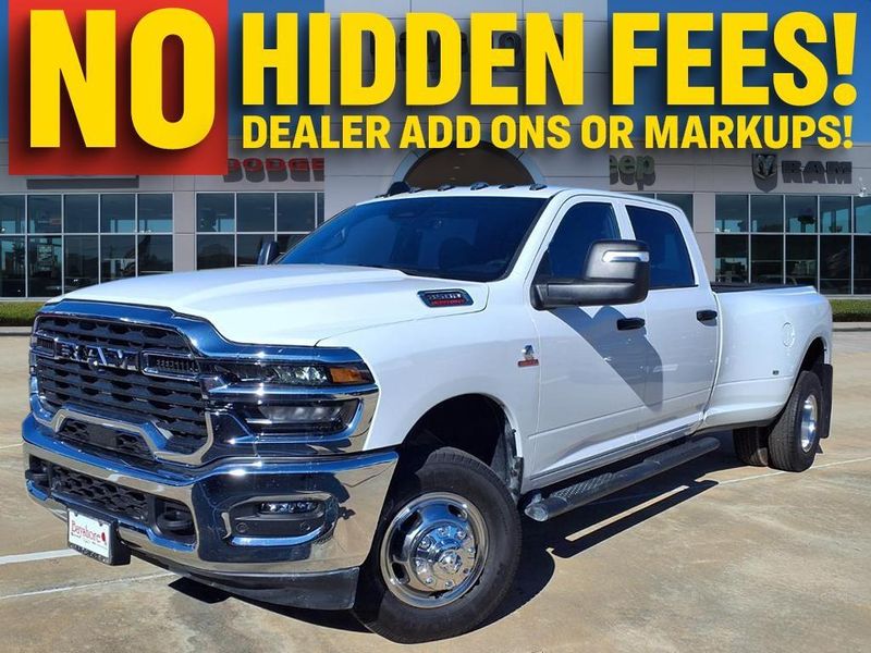 $7,398 off MSRP! This 3500 Tradesman vehicle comes nicely equipped with Bed Utility Group (LED Bed Lighting, MOPAR Deployable Bed Step, and MOPAR Spray in Bedliner), Max Tow Package (5th Wheel/Gooseneck Towing Prep Group), Quick Order Package 24A Tradesman, Tradesman Level 2A Equipment Group (115-Volt Auxiliary Front Power Outlet, 12'' Touchscreen Display, 2 Way Rear Headrest Seat, 4 Way Front Headrests, 40/20/40 Split Bench Seat, 400W Inverter, 4G LTE Wi-Fi Hot Spot, Air Conditioning ATC with Dual Zone Control, Alexa Built-in, Apple CarPlay, Auto-Dimming Rear-View Mirror, Black Exterior Mirrors, Bright Front Bumper, Bright Rear Bumper, Bright Wheel Skins, Carpet Floor Covering, Center Hub, Chrome Grille Surround, Cloth 40/20/40 Bench Seat, Connected Travel and Traffic Services, Connectivity - US/Canada, Convenience Group, Disassociated Touchscreen Display, Emergency Vehicle Alert System (EVAS), Exterior 115V AC Outlet, Exterior Mirrors Courtesy Lamps, Exterior Mirrors with Heating Element, Exterior Mirrors with Supplemental Signals, For Details Visit DriveUconnect.com, For More Info, Call 800-643-2112, Front and Rear Floor Mats, Front Armrest with Cupholders, Global Telematics Box Module, Google Android Auto, GPS Antenna Input, GPS Navigation, HD Radio, Integrated Voice Command with Bluetooth, Manual Adjust 4-Way Driver Seat, Manual Adjust 4-Way Front Passenger Seat, Manual Folding Exterior Mirrors, Manuarl Telescoping Mirrors, Matte Black Mesh with Chrome Grille, Mirror Running Lights, Mopar Black Tubular Side Steps, Off-Road Information Pages, ParkSense Front/Rear Park Assist System, Power Adjust Mirrors, Power Heat Fold Telescopic Mirrors, Power-Adjustable Convex Aux Mirrors, Radio: Uconnect 5 Navigation with 12.0'' Display, Rear Folding Seat, Rear Power Sliding Window, Remote USB Port - Charge Only, Selectable Tire Fill Alert, SiriusXM Radio Service, SiriusXM with 360L, Storage Tray, Tinted Acoustic Windshield Glass, and Trailer Tow Pages), 4-Wheel Disc Brakes, 50 Gallon Fuel Tank, 6 Speakers, 6000# Front Axle with Hub Extension, ABS brakes, Air Conditioning, AM/FM radio: SiriusXM, Apple CarPlay/Android Auto, Black Wheel Center Hub, Box and Rear Fender Clearance Lamps, Brake assist, Clearance Lamps, Compass, Delay-off headlights, Driver door bin, Dual front impact airbags, Dual front side impact airbags, Dual Rear Wheels, Electronic Stability Control, Front anti-roll bar, Front Center Armrest w/Storage, Front fog lights, Front License Plate Bracket, Front reading lights, Fully automatic headlights, Illuminated entry, Low tire pressure warning, Nexen Brand Tires, Occupant sensing airbag, Outside temperature display, Overhead airbag, Overhead console, Panic alarm, ParkView Rear Back-Up Camera, Passenger door bin, Passenger vanity mirror, Power steering, Power windows, Radio data system, Radio: Uconnect 5 with 8.4'' Display, Rear step bumper, Rear Wheelhouse Liners, Rear window defroster, Remote keyless entry, Speed control, Tachometer, Tilt steering wheel, Traction control, Variably intermittent wipers, Voltmeter, Wheels: 17'' x 6.0'' Steel Chrome Clad, and Wheels: 18'' x 8.0'' Black Painted SteeL.