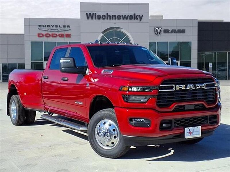 THIS VEHICLE COMES WITH THE FOLLOWING FEATURES AND OPTIONS : Big Horn Level 1 Plus Equipment Group (12'' Touchscreen Display, 2 Way Rear Headrest Seat, 2nd Row in Floor Storage Bins, 4 Way Front Headrests, 40/20/40 Split Bench Seat, 4G LTE Wi-Fi Hot Spot, 9 Alpine Speakers with Subwoofer, Air Conditioning ATC with Dual Zone Control, Alexa Built-in, Apple CarPlay, Auto Power-Folding Mirrors, Auto-Dimming Rear-View Mirror, Black Exterior Mirrors, Cloth 40/20/40 Premium Bench Seat, Connected Travel and Traffic Services, Connectivity - US/Canada, Disassociated Touchscreen Display, Dual Glove Boxes, Emergency Vehicle Alert System (EVAS), Exterior Mirrors Courtesy Lamps, Exterior Mirrors with Heating Element, Exterior Mirrors with Supplemental Signals, Foam Bottle Insert (door Trim Panel), Folding Flat Load Floor Storage, Footwell Courtesy Lamp, For Details Visit DriveUconnect.com, For More Info, Call 800-643-2112, Forward and Reverse Utility Lights, Front Armrest with Cupholders, Front Center Seat Cushion Storage, Front Seat Back Map Pockets, Global Telematics Box Module, Glove Box Lamp, Google Android Auto, GPS Antenna Input, GPS Navigation, HD Radio, Integrated Voice Command with Bluetooth, LED Bed Lighting, Locking Lower Glove Box, Luxury Steering Wheel, Manual Adjust 4-Way Front Passenger Seat, Mirror Running Lights, MOPAR Deployable Bed Step, MOPAR Spray in Bedliner, Off-Road Information Pages, Power 2-Way Driver Lumbar Adjust, Power Adjust 8-Way Driver Seat, Power Adjust Mirrors, Power Heated Fold Telescopic Mirrors, Power Telescoping Mirrors, Power-Adjustable Convex Aux Mirrors, Radio: Uconnect 5 Navigation with 12.0'' Display, Rear 60/40 Folding Seat, Rear Dome with on/Off Switch Lamp, Remote Start System, Remote USB Port - Charge Only, Selectable Tire Fill Alert, SiriusXM Radio Service, SiriusXM with 360L, Steering Wheel Mounted Audio Controls, Storage Tray, and Trailer Tow Pages), Quick Order Package 24Y Lone Star (Lone Star Badge), Sport Appearance Package (Black Interior Accents, Body Color Grille Surround, Painted Front Bumper, Painted Rear Bumper, and Sport Decal), 4-Wheel Disc Brakes, 50 Gallon Fuel Tank, 5th Wheel/Gooseneck Towing Prep Group, 6 Speakers, 6000# Front Axle with Hub Extension, ABS brakes, Air Conditioning, Alloy wheels, AM/FM radio: SiriusXM, Apple CarPlay/Android Auto, Box and Rear Fender Clearance Lamps, Brake assist, Bumpers: chrome, Center Hub, Chrome Flat Cab-Length Side Steps, Clearance Lamps, Cloth 40/20/40 Bench Seat, Compass, Delay-off headlights, Driver door bin, Dual front impact airbags, Dual front side impact airbags, Dual Rear Wheels, Electronic Stability Control, Front anti-roll bar, Front Center Armrest w/Storage, Front fog lights, Front License Plate Bracket, Front reading lights, Fully automatic headlights, Heated door mirrors, Illuminated entry, Low tire pressure warning, Manual Adjust 4-Way Driver Seat, Manufacturer's Statement of Origin, MOPAR Front and Rear Rubber Floor Mats, MyFlexCare Service Diesel, Nexen Brand Tires, Occupant sensing airbag, Outside temperature display, Overhead airbag, Overhead console, Panic alarm, ParkView Rear Back-Up Camera, Passenger door bin, Passenger vanity mirror, Power door mirrors, Power steering, Power windows, Radio data system, Radio: Uconnect 5 with 8.4'' Display, Rear Folding Seat, Rear seat center armrest, Rear step bumper, Rear Wheelhouse Liners, Rear window defroster, Remote keyless entry, Speed control, Tachometer, Tilt steering wheel, Traction control, Trip computer, Turn signal indicator mirrors, Variably intermittent wipers, Voltmeter, Wheels: 17'' x 6.0'' Polished Aluminum, and Wheels: 18'' x 8.0'' Polished AluminuM. Price includes: $1000 - 2026 National Bonus Cash . Exp. 12/01/2025