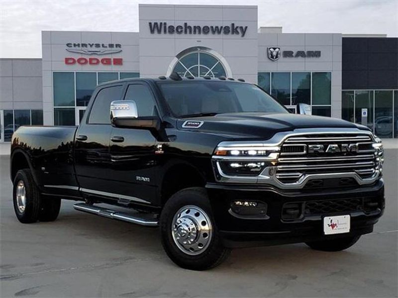 THIS VEHICLE COMES WITH THE FOLLOWING FEATURES AND OPTIONS : Laramie Level 1 Equipment Group (2nd Row in Floor Storage Bins, Auto Adjust in Reverse Exterior Mirrors, Auto Dimming Exterior Passenger Mirror, Auto High Beam Headlamp Control, Auto Power-Folding Mirrors, Auto-Dimming Exterior Mirrors, Chrome Exterior Mirrors, Exterior Mirrors Courtesy Lamps, Exterior Mirrors with Heating Element, Exterior Mirrors with Memory, Exterior Mirrors with Supplemental Signals, Foam Bottle Insert (door Trim Panel), Forward and Reverse Utility Lights, Mirror Running Lights, Power Adjust Mirrors, Power Adjustable Pedals with Memory, Power Heat Fold Memory Telescopic Mirrors, Power Telescoping Mirrors, Power-Adjustable Convex Aux Mirrors, Rain Sensitive Windshield Wipers, and Remote Tailgate Release), Max Tow Package (5th Wheel/Gooseneck Towing Prep Group and Auto Level Rear Air Suspension), Quick Order Package 24H Laramie, #1 Seat Foam Cushion, 10 Speakers, 115V Auxiliary Rear Power Outlet, 2 Way Rear Headrest Seat, 4 Way Front Headrests, 4-Wheel Disc Brakes, 4G LTE Wi-Fi Hot Spot, 50 Gallon Fuel Tank, 6000# Front Axle with Hub Extension, ABS brakes, Air Conditioning, Alexa Built-in, Alloy wheels, AM/FM radio: SiriusXM with 360L, Apple CarPlay, Apple CarPlay/Android Auto, Auto-dimming Rear-View mirror, Automatic temperature control, Black Wheel Center Hub, Box and Rear Fender Clearance Lamps, Brake assist, Bumpers: body-color, Center Hub, Center Stop Lamp with Cargo View Camera, Chrome Flat Cab-Length Side Steps, Clearance Lamps, Compass, Connected Travel and Traffic Services, Connectivity - US/Canada, Delay-off headlights, Disassociated Touchscreen Display, Driver door bin, Driver vanity mirror, Dual front impact airbags, Dual front side impact airbags, Dual Rear Wheels, Electronic Stability Control, Emergency Vehicle Alert System (EVAS), Folding Flat Load Floor Storage, Front anti-roll bar, Front Center Armrest w/Storage, Front dual zone A/C, Front fog lights, Front License Plate Bracket, Front reading lights, Front Seat Back Map Pockets, Fully automatic headlights, Garage door transmitter, Global Telematics Box Module, Google Android Auto, GPS Antenna Input, GPS Navigation, HD Radio, Heated door mirrors, Heated Front Seats, Heated front seats, Heated Steering Wheel, Heated steering wheel, High Back Seats, Illuminated entry, Integrated Voice Command with Bluetooth, Leather Trim 40/20/40 Bench Seat, Low tire pressure warning, MOPAR Front and Rear Rubber Floor Mats, Navigation System, Nexen Brand Tires, Occupant sensing airbag, Off-Road Information Pages, Outside temperature display, Overhead airbag, Overhead console, Panic alarm, ParkView Rear Back-Up Camera, Passenger door bin, Passenger vanity mirror, Power 2-Way Driver Lumbar Adjust, Power 2-Way Passenger Lumbar Adjust, Power Adjust 8-Way Driver Seat, Power Adjust 8-Way Front Passenger Seat, Power door mirrors, Power driver seat, Power passenger seat, Power steering, Power windows, Radio data system, Radio: Uconnect 5 Navigation with 12.0'' Display, Rear 60/40 Folding Seat, Rear reading lights, Rear seat center armrest, Rear step bumper, Rear window defroster, Remote keyless entry, Security system, Selectable Tire Fill Alert, SiriusXM Radio Service, SiriusXM with 360L, Speed control, Split folding rear seat, Steering wheel mounted audio controls, Tachometer, Tilt steering wheel, Traction control, Trailer Tow Pages, Trip computer, Turn signal indicator mirrors, Variably intermittent wipers, Voltmeter, Wheels: 17'' x 6.0'' Polished Aluminum, and Wheels: 18'' x 8.0'' Diamond Cut Aluminum with Black Pt Pockets. Price includes: $1000 - 2026 National Bonus Cash . Exp. 12/01/2025