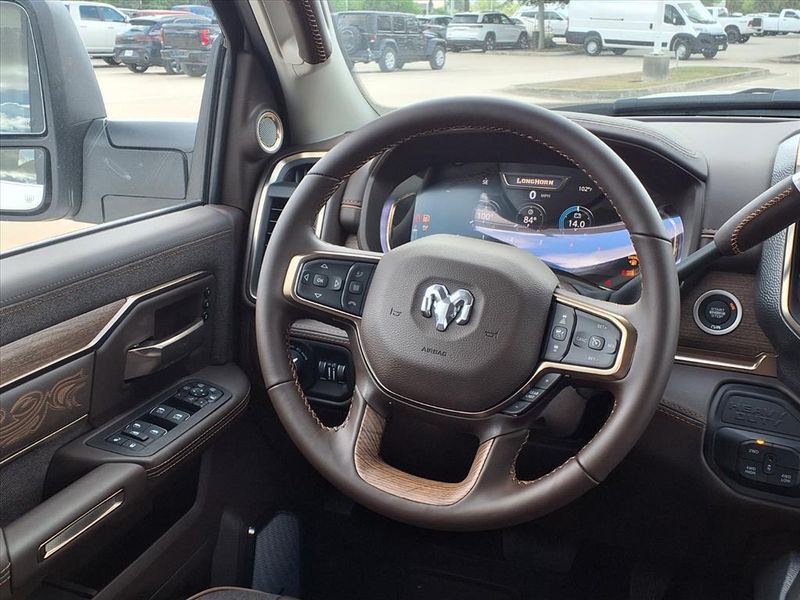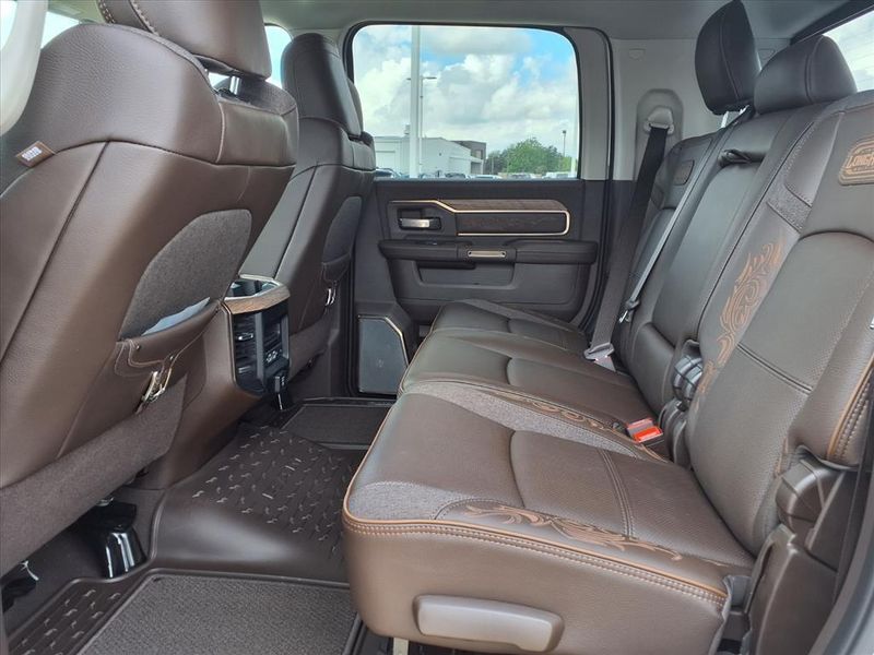$7,390 off MSRP! This 3500 Limited vehicle comes nicely equipped with 5th Wheel/Gooseneck Towing Prep Group (Pickup Box, Vendor Painted Cargo Box, and Vendor Painted Cargo Box Tracking), Max Tow Package (Auto Level Rear Air Suspension), Quick Order Package 24K Longhorn (I/P Aluminum Litho Bezels w/Real Wood #1, Longhorn Badge, Longhorn Instrument Cluster Theme 3, Luxury Front & Rear Floor Mats, Premium Door Trim Panel, and Premium Filigree Leather Seats), 17 Speakers, 3.42 Axle Ratio, 4-Wheel Disc Brakes, 6,000 lbs Front Axle w/Hub Ext, ABS brakes, Adjustable pedals, Air Conditioning, Alloy wheels, AM/FM radio: SiriusXM with 360L, Apple CarPlay/Android Auto, Audio memory, Auto High-beam Headlights, Auto-dimming door mirrors, Auto-dimming Rear-View mirror, Automatic temperature control, Black Wheel Center Hub, Bodyside moldings, Box & Rear Fender Clearance Lamps, Brake assist, Bumpers: body-color, Center Hub, Clearance Lamps, Compass, Delay-off headlights, Driver door bin, Driver vanity mirror, Dual front impact airbags, Dual front side impact airbags, Dual Rear Wheel Fender Flare Tracking, Dual Rear Wheels, Electronic Stability Control, Front anti-roll bar, Front Bucket Seats, Front Center Armrest w/Storage, Front dual zone A/C, Front fog lights, Front License Plate Bracket, Front reading lights, Fully automatic headlights, Garage door transmitter, Genuine wood console insert, Genuine wood dashboard insert, Genuine wood door panel insert, harman/kardon Speakers, Heated door mirrors, Heated front seats, Heated rear seats, Heated steering wheel, Illuminated entry, Leather steering wheel, LED Bed Lighting, Low tire pressure warning, Memory seat, Navigation System, Occupant sensing airbag, Outside temperature display, Overhead airbag, Overhead console, Panic alarm, ParkView Rear Back-Up Camera, Passenger door bin, Passenger vanity mirror, Pedal memory, Power door mirrors, Power driver seat, Power passenger seat, Power steering, Power windows, Radio data system, Radio: Uconnect 5 Nav w/14.4'' Display, Rain sensing wipers, Rear reading lights, Rear seat center armrest, Rear step bumper, Rear window defroster, Remote keyless entry, Security system, Speed control, Split folding rear seat, Steering wheel mounted audio controls, Tachometer, Tilt steering wheel, Traction control, Trip computer, Turn signal indicator mirrors, Ultra Premium Leather Seats, Variably intermittent wipers, Ventilated front seats, Voltmeter, Wheels: 17'' x 6.0'' Polished Aluminum, and Wheels: 20'' x 8'' Diamond Cut Aluminum.
