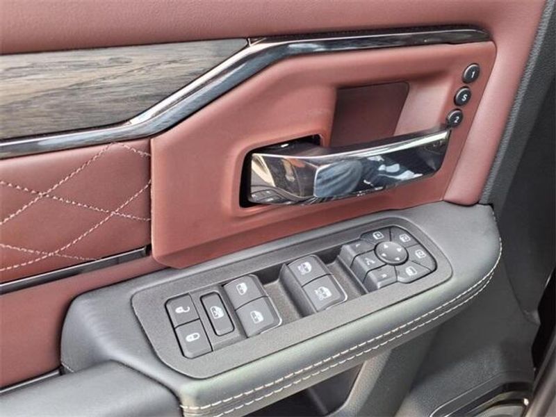 THIS VEHICLE COMES WITH THE FOLLOWING FEATURES AND OPTIONS : Limited Level 1 Equipment Group (Active Lane Management System, Adaptive Steering System, CTR Stop Lamp w/Cargo View Camera, Digital Rearview Mirror, Drowsy Driver Detection, LED Bed Lighting, MOPAR Spray In Bedliner, Power Deployable Running Boards, Surround View Camera System, Traffic Sign Recognition, Trailer Reverse Guidance, and Trailer Tire Pressure Monitoring System), Quick Order Package 24M Limited, 17 Speakers, 4-Wheel Disc Brakes, 50 Gallon Fuel Tank, 5th Wheel/Gooseneck Towing Prep Group, 6000# Front Axle w/Hub Ext, ABS brakes, Adjustable pedals, Air Conditioning, Alloy wheels, AM/FM radio: SiriusXM with 360L, Apple CarPlay/Android Auto, Audio memory, Auto High-beam Headlights, Auto Level Rear Air Suspension, Auto-dimming door mirrors, Auto-dimming Rear-View mirror, Automatic temperature control, Black Wheel Center Hub, Bodyside moldings, Box & Rear Fender Clearance Lamps, Brake assist, Bumpers: body-color, Center Hub, Clearance Lamps, Compass, Delay-off headlights, Driver door bin, Driver vanity mirror, Dual Alternators Rated at 480 Amps, Dual front impact airbags, Dual front side impact airbags, Dual Rear Wheels, Electronic Stability Control, Front anti-roll bar, Front Bucket Seats, Front Center Armrest w/Storage, Front dual zone A/C, Front fog lights, Front License Plate Bracket, Front reading lights, Fully automatic headlights, Garage door transmitter, Genuine wood console insert, Genuine wood dashboard insert, Genuine wood door panel insert, harman/kardon Speakers, Heated door mirrors, Heated front seats, Heated rear seats, Heated steering wheel, Illuminated entry, Leather steering wheel, Low tire pressure warning, Manufacturer's Statement of Origin, Memory seat, Navigation System, Nexen Brand Tires, Occupant sensing airbag, On Board Power System - 2.4KW, Outside temperature display, Overhead airbag, Overhead console, Panic alarm, ParkView Rear Back-Up Camera, Passenger door bin, Passenger vanity mirror, Pedal memory, Power door mirrors, Power driver seat, Power passenger seat, Power steering, Power windows, Radio data system, Radio: Uconnect 5 Nav w/14.4'' Display, Rain sensing wipers, Rear reading lights, Rear seat center armrest, Rear step bumper, Rear window defroster, Remote keyless entry, Security system, Speed control, Split folding rear seat, Steering wheel mounted audio controls, Tachometer, Tilt steering wheel, Traction control, Trip computer, Turn signal indicator mirrors, Ultra Premium Leather Seats, Variably intermittent wipers, Ventilated front seats, Voltmeter, Wheels: 17'' x 6.0'' Polished Aluminum, and Wheels: 20'' x 8.0'' Diam Cut Alum w/Blk Pt Pock. Price includes: $1000 - 2026 National Bonus Cash . Exp. 11/03/2025