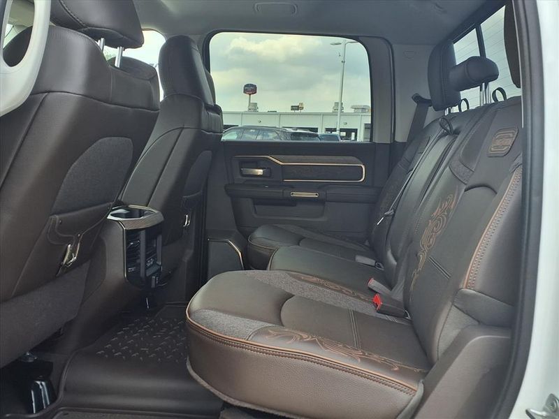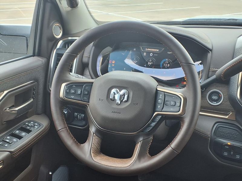 $6,390 off MSRP! This 3500 Limited vehicle comes nicely equipped with Longhorn Level 1 Equipment Group (Active Lane Management System, Adaptive Steering System, CTR Stop Lamp w/Cargo View Camera, Digital Rearview Mirror, Drowsy Driver Detection, LED Bed Lighting, MOPAR Spray In Bedliner, Power Deployable Running Boards, Surround View Camera System, Traffic Sign Recognition, Trailer Reverse Guidance, and Trailer Tire Pressure Monitoring System), Quick Order Package 24K Longhorn (I/P Aluminum Litho Bezels w/Real Wood #1, Longhorn Badge, Longhorn Instrument Cluster Theme 3, Luxury Front & Rear Floor Mats, Premium Door Trim Panel, Premium Filigree Leather Seats, and Warm Chrome Key Fob), 17 Speakers, 4-Wheel Disc Brakes, 50 Gallon Fuel Tank, 5th Wheel/Gooseneck Towing Prep Group, 6000# Front Axle w/Hub Ext, ABS brakes, Adjustable pedals, Air Conditioning, Alloy wheels, AM/FM radio: SiriusXM with 360L, Apple CarPlay/Android Auto, Audio memory, Auto High-beam Headlights, Auto-dimming door mirrors, Auto-dimming Rear-View mirror, Automatic temperature control, Black Wheel Center Hub, Bodyside moldings, Box & Rear Fender Clearance Lamps, Brake assist, Bumpers: body-color, Center Hub, Clearance Lamps, Compass, Delay-off headlights, Driver door bin, Driver vanity mirror, Dual front impact airbags, Dual front side impact airbags, Dual Rear Wheels, Electronic Stability Control, Engine Block Heater, Front anti-roll bar, Front Bucket Seats, Front Center Armrest w/Storage, Front dual zone A/C, Front fog lights, Front License Plate Bracket, Front reading lights, Fully automatic headlights, Garage door transmitter, Genuine wood console insert, Genuine wood dashboard insert, Genuine wood door panel insert, harman/kardon Speakers, Heated door mirrors, Heated front seats, Heated rear seats, Heated steering wheel, Illuminated entry, Leather steering wheel, Low tire pressure warning, Memory seat, Navigation System, Nexen Brand Tires, Occupant sensing airbag, Outside temperature display, Overhead airbag, Overhead console, Panic alarm, ParkView Rear Back-Up Camera, Passenger door bin, Passenger vanity mirror, Pedal memory, Power door mirrors, Power driver seat, Power passenger seat, Power steering, Power windows, Radio data system, Radio: Uconnect 5 Nav w/14.4'' Display, Rain sensing wipers, Rear reading lights, Rear seat center armrest, Rear step bumper, Rear window defroster, Remote keyless entry, Security system, Speed control, Split folding rear seat, Steering wheel mounted audio controls, Tachometer, Tilt steering wheel, Traction control, Trip computer, Turn signal indicator mirrors, Ultra Premium Leather Seats, Variably intermittent wipers, Ventilated front seats, Voltmeter, Wheels: 17'' x 6.0'' Polished Aluminum, and Wheels: 20'' x 8.0'' Diam Cut Alum w/Blk Pt Pock.