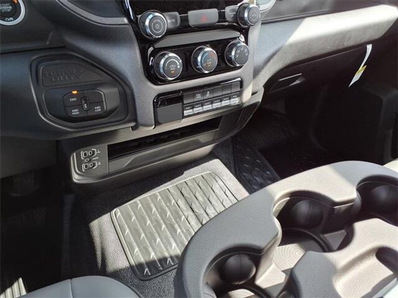 THIS VEHICLE COMES WITH THE FOLLOWING FEATURES AND OPTIONS : Chrome Appearance Group A (Bright Front Bumper, Bright Wheel Skins, Center Hub, Chrome Grille Surround, Matte Black Mesh Grille w/Chrome, and Wheels: 18'' x 8.0'' Polished Aluminum), Quick Order Package 2XA Tradesman, 11.50'' Dual Wheels Rear Axle, 4 Speakers, 4-Wheel Disc Brakes, 4.10 Axle Ratio, 40/20/40 Split Bench Seat, 4G LTE Wi-Fi Hot Spot, 6000# Front Axle w/Hub Ext, ABS brakes, Air Conditioning, AM/FM radio: SiriusXM, Apple CarPlay, Apple CarPlay/Android Auto, Black Exterior Mirrors, Black Wheel Center Hub, Compass, Connectivity - US/Canada, Delay-off headlights, Driver door bin, Dual front impact airbags, Dual Rear Wheels, Electronic Stability Control, Emergency communication system: RAM Connect, For Details, Visit DriveUconnect.com, Front anti-roll bar, Front Armrest w/Cupholders, Front Center Armrest w/Storage, Front fog lights, Front License Plate Bracket, Front reading lights, Fully automatic headlights, Global Telematics Box Module (TBM), Google Android Auto, GPS Antenna Input, HD Vinyl 40/20/40 Split Bench Seat, Integrated Voice Command w/Bluetooth, Manual Adjust 4-Way Driver Seat, Manual Adjust 4-Way Front Passenger Seat, Manual Folding Exterior Mirrors, Manual Telescoping Mirrors, Manufacturer's Statement of Origin, MyFlexCare Service Plan, Nexen Brand Tires, Occupant sensing airbag, Outside temperature display, Overhead console, ParkView Rear Back-Up Camera, Passenger door bin, Passenger vanity mirror, Power steering, Radio data system, Radio: Uconnect 5 w/8.4'' Display, Rear anti-roll bar, Remote USB Port - Charge Only, Speed control, Storage Tray, Tachometer, Temperature & Compass Gauge, Tilt steering wheel, Traction control, Variably intermittent wipers, Voltmeter, Wheels: 17'' x 6.0'' Steel Chrome Clad, and Wheels: 18'' x 8.0'' Steel PainteD.