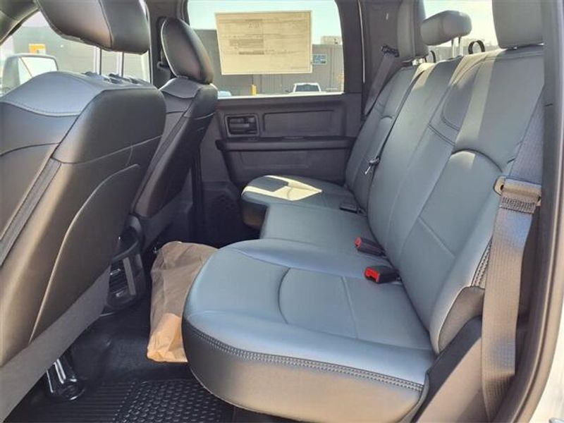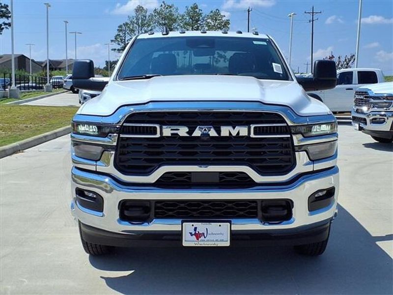 THIS VEHICLE COMES WITH THE FOLLOWING FEATURES AND OPTIONS : Chrome Appearance Group (DISC) (Bright Front Bumper, Center Hub, Chrome Grille Surround, Matte Black Mesh Grille w/Chrome, and Wheels: 18'' x 8.0'' Polished Aluminum), Quick Order Package 2UA Tradesman, 11.50'' Dual Wheels Rear Axle, 2 Way Rear Headrest Seat, 4-Wheel Disc Brakes, 4.10 Axle Ratio, 40/20/40 Split Bench Seat, 4G LTE Wi-Fi Hot Spot, 6 Speakers, 6000# Front Axle w/Hub Ext, ABS brakes, Air Conditioning, AM/FM radio: SiriusXM, Apple CarPlay, Apple CarPlay/Android Auto, Black Exterior Mirrors, Black Wheel Center Hub, Compass, Connectivity - US/Canada, Delay-off headlights, Driver door bin, Dual front impact airbags, Dual Rear Wheels, Electronic Stability Control, Emergency communication system: RAM Connect, For Details, Visit DriveUconnect.com, Front anti-roll bar, Front Armrest w/Cupholders, Front Center Armrest w/Storage, Front fog lights, Front License Plate Bracket, Front reading lights, Fully automatic headlights, Global Telematics Box Module (TBM), Google Android Auto, GPS Antenna Input, HD Vinyl 40/20/40 Split Bench Seat, Illuminated entry, Integrated Voice Command w/Bluetooth, Manual Adjust 4-Way Driver Seat, Manual Adjust 4-Way Front Passenger Seat, Manual Folding Exterior Mirrors, Manual Telescoping Mirrors, Manufacturer's Statement of Origin, MyFlexCare Service Plan, Nexen Brand Tires, Occupant sensing airbag, Outside temperature display, Overhead console, Panic alarm, ParkView Rear Back-Up Camera, Passenger door bin, Passenger vanity mirror, Power steering, Power windows, Radio data system, Radio: Uconnect 5 w/8.4'' Display, Rear anti-roll bar, Rear Folding Seat, Remote keyless entry, Remote USB Port - Charge Only, Speed control, Storage Tray, Tachometer, Temperature & Compass Gauge, Tilt steering wheel, Traction control, Trailer Brake Control, Trailer Light Check, Variably intermittent wipers, Voltmeter, Wheels: 17'' x 6.0'' Polished Aluminum, and Wheels: 18'' x 8.0'' Steel PainteD.
