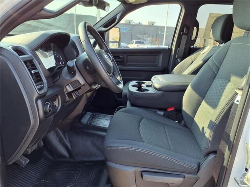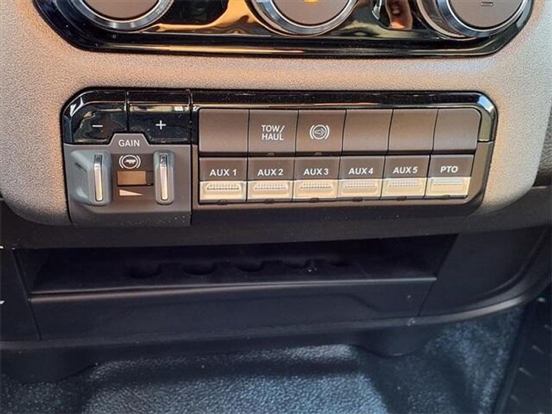 THIS VEHICLE COMES WITH THE FOLLOWING FEATURES AND OPTIONS : Chrome Appearance Group (19.5'' x 6.0'' Steel Wheels, Bright Front Bumper, Center Hub, Chrome Grille Surround, and Matte Black Mesh Grille w/Chrome), Quick Order Package 25A Tradesman, Tradesman Level 1 Equipment Group (Black Exterior Mirrors, Exterior Mirrors Courtesy Lamps, Exterior Mirrors w/Heating Element, Exterior Mirrors w/Supplemental Signals, Manual Folding Exterior Mirrors, Manual Telescoping Mirrors, Mirror Power Heat Fold Telescope Black, Mirror Running Lights, Power Adjust Mirrors, Power-Adjustable Convex Aux Mirrors, Rear Window Defroster, Trailer Brake Control, and Trailer Light Check), 2 Way Rear Headrest Seat, 4-Wheel Disc Brakes, 4.44 Axle Ratio, 40/20/40 Split Bench Seat, 4G LTE Wi-Fi Hot Spot, 6 Speakers, ABS brakes, Air Conditioning, AM/FM radio: SiriusXM, Apple CarPlay, Apple CarPlay/Android Auto, Compass, Connectivity - US/Canada, Delay-off headlights, Driver door bin, Dual front impact airbags, Dual rear wheels, Electronic Stability Control, Emergency communication system: RAM Connect, For Details, Visit DriveUconnect.com, Front anti-roll bar, Front Armrest w/Cupholders, Front Center Armrest w/Storage, Front fog lights, Front License Plate Bracket, Front reading lights, Fully automatic headlights, Global Telematics Box Module (TBM), Google Android Auto, GPS Antenna Input, Illuminated entry, Integrated Voice Command w/Bluetooth, Manual Adjust 4-Way Driver Seat, Manual Adjust 4-Way Front Passenger Seat, Manual DPF Regeneration, Manufacturer's Statement of Origin, Occupant sensing airbag, Outside temperature display, Overhead console, Panic alarm, ParkView Rear Back Up Camera, Passenger door bin, Passenger vanity mirror, Power steering, Power Take-Off Right/Left, Power windows, Radio data system, Radio: Uconnect 5 w/8.4'' Display, Rear anti-roll bar, Rear Folding Seat, Remote keyless entry, Remote USB Port - Charge Only, Speed control, Storage Tray, Tachometer, Temperature & Compass Gauge, Tilt steering wheel, Traction control, Variably intermittent wipers, Voltmeter, and Wheels: 19.5'' x 6.0'' Black Painted SteeL.