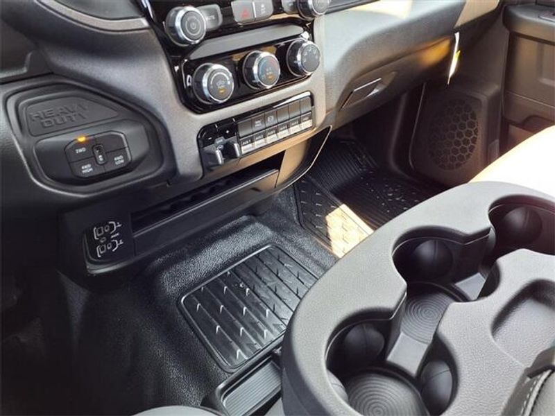 THIS VEHICLE COMES WITH THE FOLLOWING FEATURES AND OPTIONS : Chrome Appearance Group (19.5'' x 6.0'' Steel Wheels, Bright Front Bumper, Center Hub, Chrome Grille Surround, and Matte Black Mesh w/Chrome Grille), Quick Order Package 25A Tradesman, 4-Wheel Disc Brakes, 4.44 Axle Ratio, 40/20/40 Split Bench Seat, 4G LTE Wi-Fi Hot Spot, 6 Speakers, ABS brakes, Air Conditioning, AM/FM radio: SiriusXM, Apple CarPlay, Apple CarPlay/Android Auto, Black Exterior Mirrors, Compass, Connectivity - US/Canada, Delay-off headlights, Driver door bin, Dual front impact airbags, Dual rear wheels, Electronic Stability Control, Emergency communication system: RAM Connect, For Details, Visit DriveUconnect.com, Front anti-roll bar, Front Armrest w/Cupholders, Front Center Armrest w/Storage, Front fog lights, Front License Plate Bracket, Front reading lights, Fully automatic headlights, Global Telematics Box Module (TBM), Google Android Auto, GPS Antenna Input, Integrated Voice Command w/Bluetooth, Manual Adjust 4-Way Driver Seat, Manual Adjust 4-Way Front Passenger Seat, Manual DPF Regeneration, Manual Folding Exterior Mirrors, Manual Telescoping Mirrors, Manufacturer's Statement of Origin, MyFlexCare Service Diesel, Occupant sensing airbag, Outside temperature display, Overhead console, Panic alarm, ParkView Rear Back-Up Camera, Passenger door bin, Passenger vanity mirror, Power steering, Power Take-Off Right/Left, Power windows, Radio data system, Radio: Uconnect 5 w/8.4'' Display, Rear anti-roll bar, Rear Folding Seat, Rear reading lights, Remote keyless entry, Remote USB Port - Charge Only, Speed control, Tachometer, Temperature & Compass Gauge, Tilt steering wheel, Traction control, Trailer Brake Control, Trailer Light Check, Variably intermittent wipers, Voltmeter, and Wheels: 19.5'' x 6.0'' Black Painted SteeL.