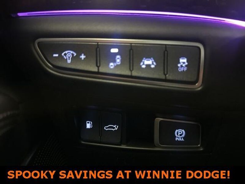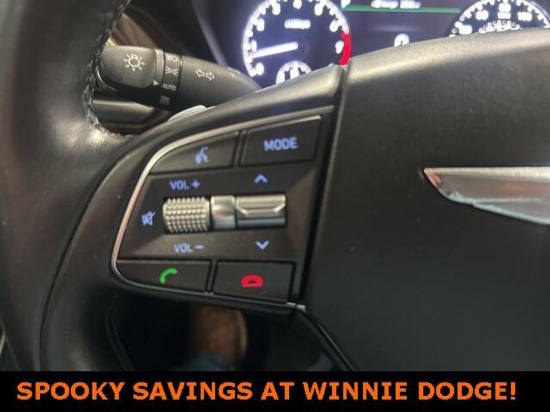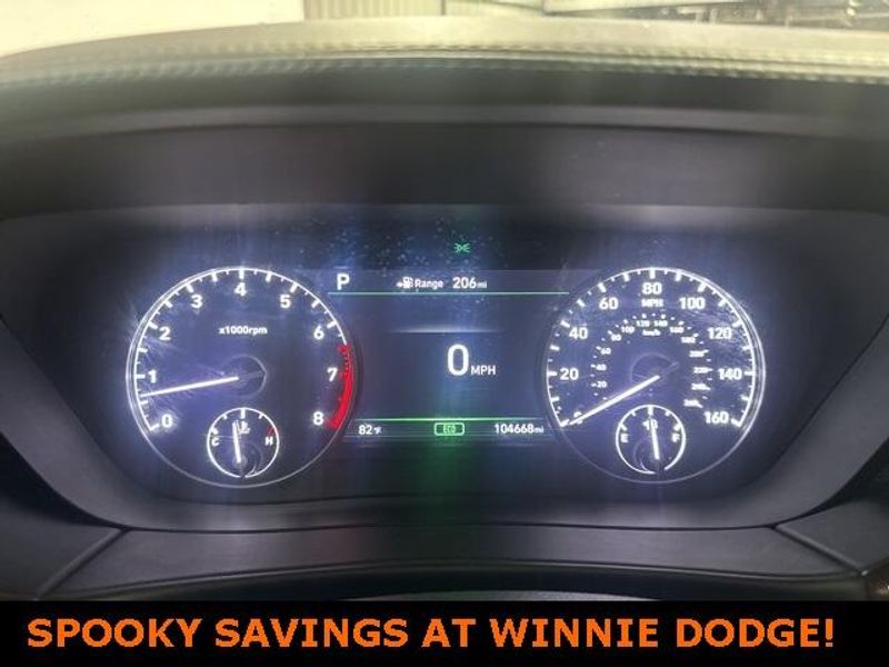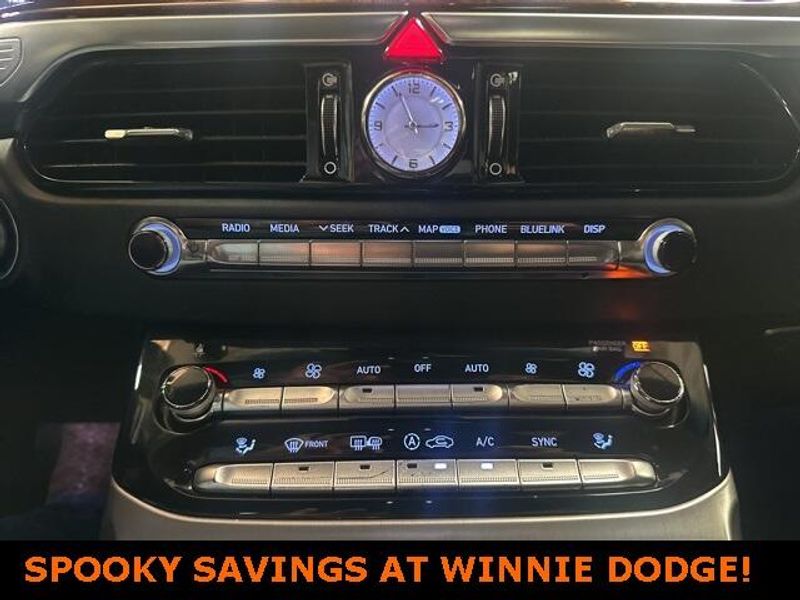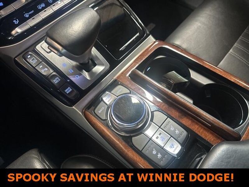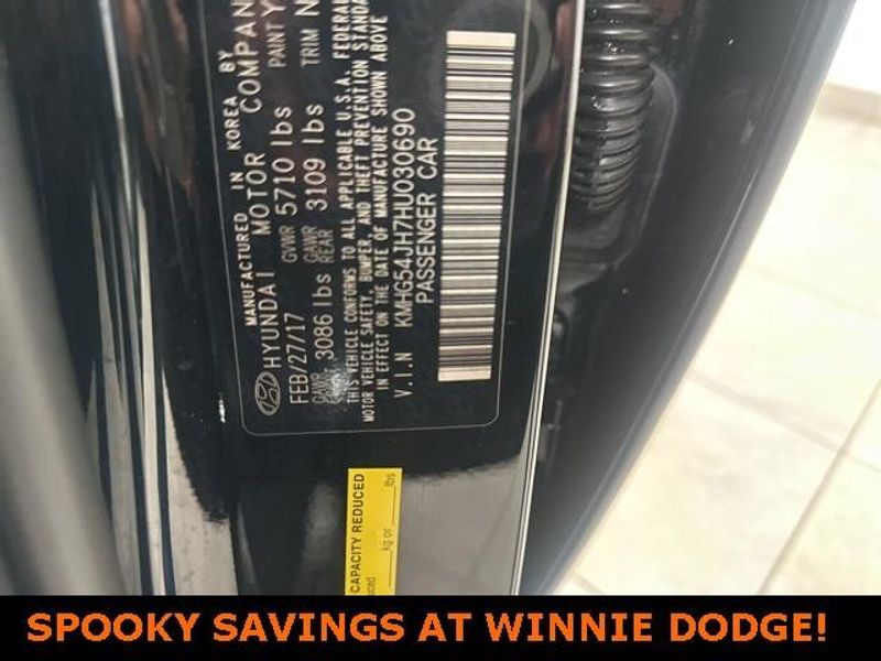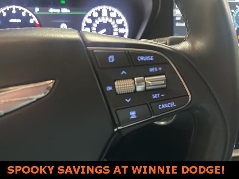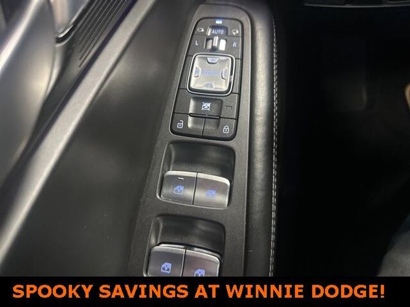 THIS VEHICLE IS EQUIPPED THE FOLLOWING FEATURES AND OPTIONS: Option Group 01, 17 Speakers, 4-Wheel Disc Brakes, ABS brakes, Adaptive suspension, Air Conditioning, Alloy wheels, AM/FM radio: SiriusXM, Auto High-beam Headlights, Auto tilt-away steering wheel, Auto-dimming door mirrors, Auto-dimming Rear-View mirror, Auto-leveling suspension, Automatic temperature control, Bodyside moldings, Brake assist, Bumpers: body-color, Compass, Delay-off headlights, Door auto-latch, Driver door bin, Driver vanity mirror, Dual front impact airbags, Dual front side impact airbags, Electronic Stability Control, Emergency communication system: Genesis Connected Services, Exterior Parking Camera Rear, Four wheel independent suspension, Front anti-roll bar, Front Bucket Seats, Front Center Armrest, Front dual zone A/C, Front fog lights, Front reading lights, Fully automatic headlights, Garage door transmitter: HomeLink, Genuine wood dashboard insert, Genuine wood door panel insert, Head restraints memory, Heads-Up Display, Heated & Vented Front Bucket Seats w/Memory, Heated door mirrors, Heated front seats, Heated rear seats, Heated steering wheel, Illuminated entry, Knee airbag, Leather Shift Knob, Leather steering wheel, Low tire pressure warning, Memory seat, Nappa Leather Seating Surfaces, Navigation System, Occupant sensing airbag, Outside temperature display, Overhead airbag, Overhead console, Panic alarm, Passenger door bin, Passenger vanity mirror, Power adjustable front head restraints, Power adjustable rear head restraints, Power door mirrors, Power driver seat, Power moonroof, Power passenger seat, Power steering, Power windows, Radio: AM/FM/HD/SiriusXM/MP3 Audio System, Rain sensing wipers, Rear air conditioning, Rear anti-roll bar, Rear reading lights, Rear seat center armrest, Rear side impact airbag, Rear Window Blind, Rear window defroster, Remote keyless entry, Security system, Speed control, Speed-sensing steering, Speed-Sensitive Wipers, Steering wheel memory, Steering wheel mounted audio controls, Tachometer, Telescoping steering wheel, Tilt steering wheel, Traction control, Trip computer, Turn signal indicator mirrors, Variably intermittent wipers, Ventilated front seats, Ventilated rear seats, and Wheels: 19 X 8.5J Fr & 19 X 9.5J Rr Chrome Alloy.
