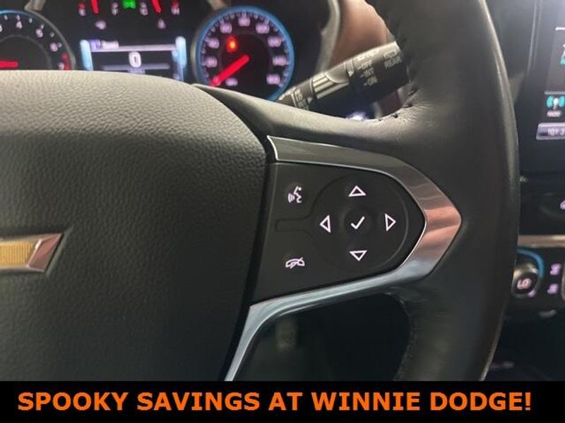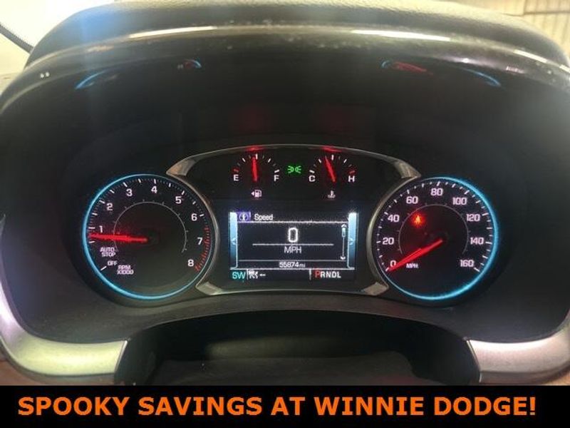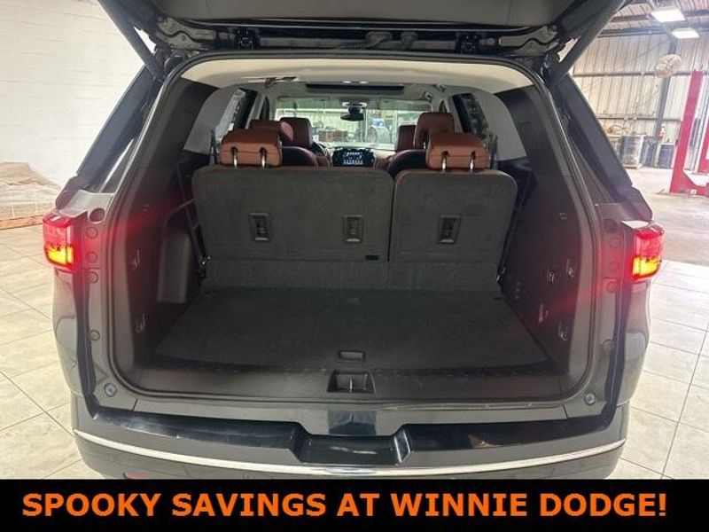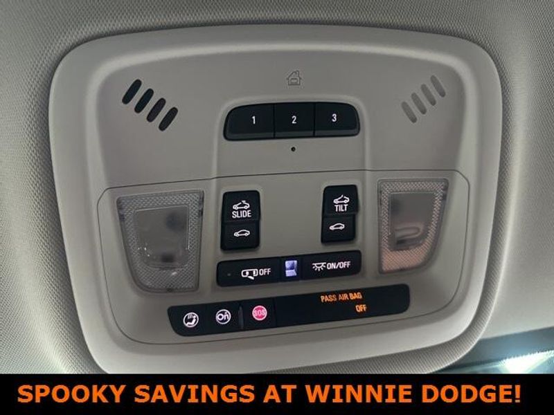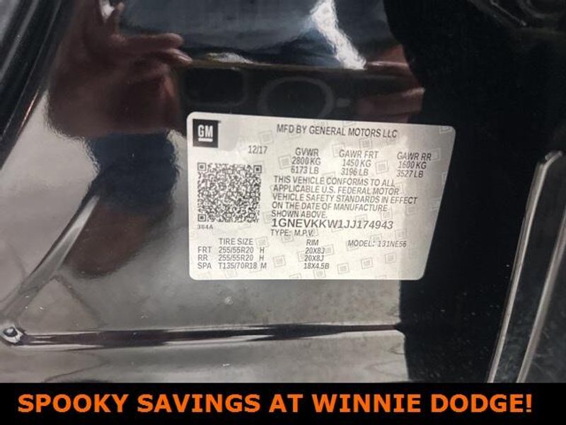 THIS VEHICLE IS EQUIPPED THE FOLLOWING FEATURES AND OPTIONS: Floor Liner Package (LPO) (1st & 2nd Row All-Weather Floor Liner (LPO) and 3rd Row All-Weather Floor Liner (LPO)), Front License Plate Bracket Mounting Package, Preferred Equipment Group 2LZ, 10 Speakers, 20'' Polished Aluminum Wheels, 3.49 Axle Ratio, 3rd row seats: split-bench, 4-Wheel Disc Brakes, 7-Passenger Seating (2-2-3 Seating Configuration), ABS brakes, Air Conditioning, Alloy wheels, AM/FM radio: SiriusXM, Apple CarPlay/Android Auto, Auto High-beam Headlights, Auto-dimming door mirrors, Auto-dimming Rear-View mirror, Automatic temperature control, Bose Premium 10-Speaker Audio System Feature, Brake assist, Bumpers: body-color, Compass, Delay-off headlights, Driver door bin, Driver vanity mirror, Dual front impact airbags, Dual front side impact airbags, Electronic Stability Control, Emergency communication system: OnStar Guidance, Four wheel independent suspension, Front & Rear Black Bowtie Emblems (LPO), Front anti-roll bar, Front Bucket Seats, Front Center Armrest, Front dual zone A/C, Front fog lights, Front reading lights, Fully automatic headlights, Garage door transmitter, Heated door mirrors, Heated front seats, Heated rear seats, Heated steering wheel, Illuminated entry, Low tire pressure warning, Memory seat, Navigation System, Occupant sensing airbag, Outside temperature display, Overhead airbag, Overhead console, Panic alarm, Passenger door bin, Passenger vanity mirror, Perforated Leather-Appointed Seat Trim, Power door mirrors, Power driver seat, Power Liftgate, Power moonroof: Dual SkyScape, Power passenger seat, Power steering, Power windows, Premium audio system: Chevrolet MyLink, Radio data system, Radio: Chevrolet MyLink AM/FM Stereo w/Navigation, Rear air conditioning, Rear anti-roll bar, Rear reading lights, Rear window defroster, Rear window wiper, Remote keyless entry, Roof rack: rails only, Security system, SiriusXM Satellite Radio, Speed control, Speed-sensing steering, Spoiler, Steering wheel memory, Steering wheel mounted audio controls, Tachometer, Telescoping steering wheel, Tilt steering wheel, Traction control, Trip computer, Turn signal indicator mirrors, Variably intermittent wipers, Ventilated front seats, and Voltmeter.