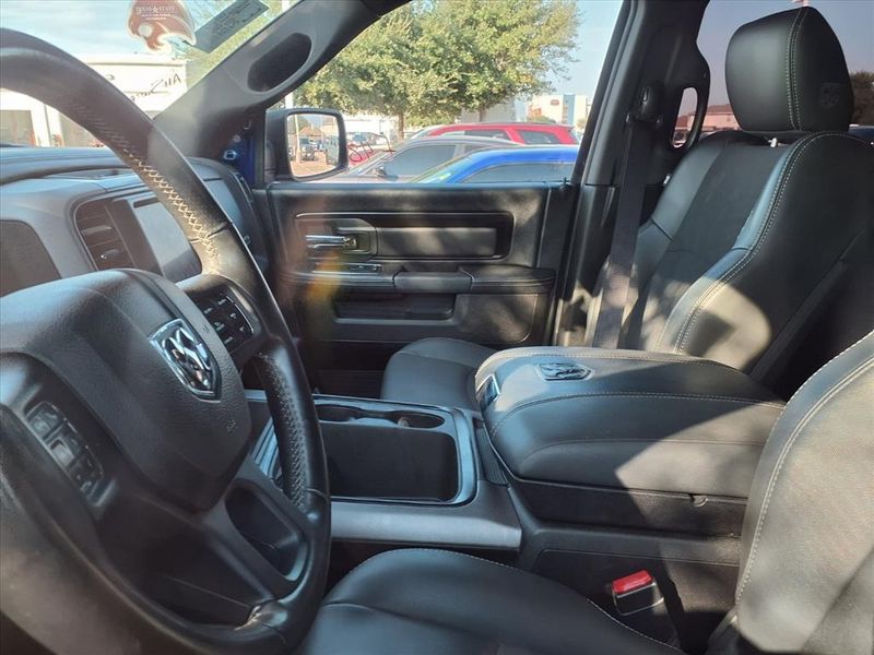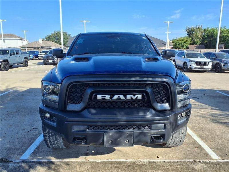 THIS VEHICLE IS EQUIPPED WITH THE FOLLOWING FEATURES AND OPTIONS :Luxury Group (Auto-Dimming Exterior Mirrors, Exterior Mirrors Courtesy Lamps, Exterior Mirrors w/Supplemental Signals, Glove Box Lamp, LED Bed Lighting, Overhead Console w/Garage Door Opener, Power Heated Fold-Away Mirrors, Power-Folding Mirrors, Rear Dome w/On/Off Switch Lamp, Sun Visors w/Illuminated Vanity Mirrors, and Universal Garage Door Opener), Protection Group, Quick Order Package 26W Rebel (Dual Rear Exhaust w/Bright Tips and Flat Black 5.7L Hemi Badge), RAM 1500 Black Rebel Group (Black Powder-Coated Front Bumper and Wheels: 17'' x 8'' Matte Black Aluminum), 1-Yr SiriusXM Guardian Trial, 3.92 Rear Axle Ratio, 4-Wheel Disc Brakes, 6 Speakers, 8.4'' Touchscreen Display, ABS brakes, Air Conditioning, Alloy wheels, AM/FM radio: SiriusXM, Apple CarPlay, Apple CarPlay/Android Auto, Audio Jack Input for Mobile Devices, Auto-leveling suspension, Automatic temperature control, Black Tubular Side Steps, Brake assist, Compass, Delay-off headlights, Driver door bin, Dual front impact airbags, Dual front side impact airbags, Electronic Shift, Electronic Stability Control, Emergency communication system: SiriusXM Guardian, Front anti-roll bar, Front Bucket Seats, Front Center Armrest w/Storage, Front dual zone A/C, Front fog lights, Front reading lights, Front wheel independent suspension, Fully automatic headlights, Google Android Auto, GPS Antenna Input, Heated door mirrors, Heated front seats, Heated steering wheel, Illuminated entry, Integrated Voice Command w/Bluetooth, Keyless Enter-N-Go, Leather steering wheel, Low tire pressure warning, Media Hub (2 USB, AUX), Occupant sensing airbag, Outside temperature display, Overhead airbag, Overhead console, Panic alarm, ParkView Rear Back-Up Camera, Passenger door bin, Passenger vanity mirror, Power door mirrors, Power driver seat, Power passenger seat, Power steering, Power windows, Premium Cloth Seats w/Emboss Tread Pattern, Radio data system, Radio: Uconnect 4C w/8.4'' Display, Rear anti-roll bar, Rear seat center armrest, Rear step bumper, Remote keyless entry, Remote Proximity Keyless Entry, Remote USB Port, Security system, SiriusXM Satellite Radio, Speed control, Split folding rear seat, Spray In Bedliner, Steering wheel mounted audio controls, Tachometer, Tilt steering wheel, Tip Start, Traction control, Trailer Brake Control, Trip computer, USB Host Flip, Variably intermittent wipers, Voltmeter, and Wheels: 17'' x 8'' Aluminum w/Matte Black Pocket. Recent Arrival! Odometer is 35414 miles below market average!