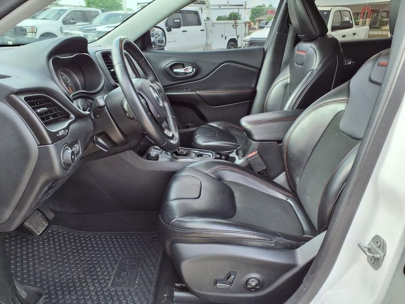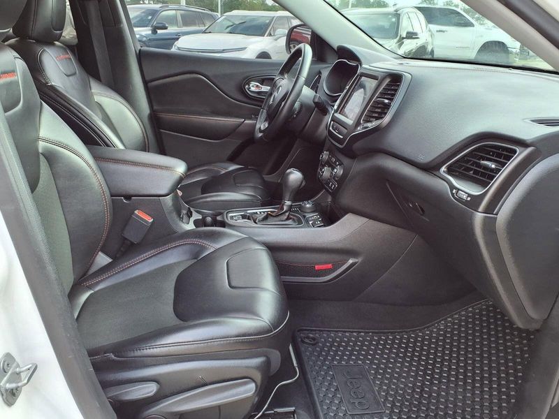 Experience the perfect blend of rugged versatility and modern convenience with this Jeep Cherokee Trailhawk. The 8.4-inch touchscreen display puts a world of connectivity at your fingertips, with features like Apple CarPlay, Android Auto, and SiriusXM Satellite Radio. Dual-zone automatic climate control, a power driver's seat, and a leather-wrapped steering wheel add a touch of luxury to every drive.