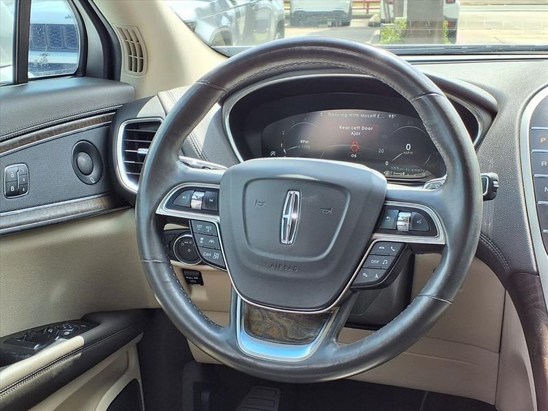 THIS VEHICLE IS EQUIPPED WITH THE FOLLOWING FEATURES AND OPTIONS :Driver Assistance Package (Adaptive Cruise Control, Adaptive Steering, and Collision Mitigation System), Equipment Group 300A, Lincoln Nautilus Technology Package (360 Degree Camera, Active Park Assist, and Front Park Aid Sensors), 13 Speakers, 3.80 Axle Ratio, 4-Wheel Disc Brakes, ABS brakes, Adaptive suspension, Air Conditioning, Alloy wheels, AM/FM radio: SiriusXM, AppLink/Apple CarPlay and Android Auto, Auto High-beam Headlights, Auto tilt-away steering wheel, Auto-dimming door mirrors, Auto-dimming Rear-View mirror, Automatic temperature control, Brake assist, Bumpers: body-color, CD player, Compass, Delay-off headlights, Driver door bin, Driver vanity mirror, Dual front impact airbags, Dual front side impact airbags, Electronic Stability Control, Emergency communication system: 911 Assist, Exterior Parking Camera Rear, Four wheel independent suspension, Front anti-roll bar, Front Bucket Seats, Front Center Armrest w/Storage, Front dual zone A/C, Front fog lights, Front reading lights, Fully automatic headlights, Garage door transmitter: HomeLink, Genuine wood console insert, Genuine wood door panel insert, Heated door mirrors, Heated front seats, Heated rear seats, Heated steering wheel, Illuminated entry, Knee airbag, Leather steering wheel, Low tire pressure warning, Memory seat, Navigation System, Occupant sensing airbag, Outside temperature display, Overhead airbag, Overhead console, Panic alarm, Passenger door bin, Passenger vanity mirror, Power door mirrors, Power driver seat, Power Liftgate, Power moonroof: Panoramic Vista Roof, Power passenger seat, Power steering, Power windows, Prem Lthr-Trimmed Heated/Cooled Bucket Seats, Radio data system, Radio: Revel Audio w/Single-CD, HD & Nav, Rain sensing wipers, Rear anti-roll bar, Rear reading lights, Rear seat center armrest, Rear window defroster, Rear window wiper, Remote keyless entry, Satin Roof Rack Side Rails w/o Crossbars, Security system, Speed control, Speed-sensing steering, Speed-Sensitive Wipers, Split folding rear seat, Spoiler, Steering wheel memory, Steering wheel mounted A/C controls, Steering wheel mounted audio controls, SYNC 3 Communications & Entertainment System, Tachometer, Telescoping steering wheel, Tilt steering wheel, Traction control, Trip computer, Turn signal indicator mirrors, Variably intermittent wipers, Ventilated front seats, Voice-Activated Touchscreen Navigation System, and Wheels: 20'' Prem Painted Bright Machined Alum. Odometer is 19313 miles below market average! 20/27 City/Highway MPG