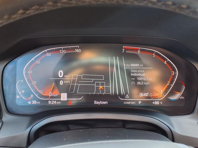 THIS VEHICLE IS EQUIPPED WITH THE FOLLOWING FEATURES AND OPTIONS :Connected Package Pro, Convenience Package (Active Blind Spot Detection, Active Driving Assistant, Comfort Access Keyless Entry, LED Headlights w/Cornering Lights, Lumbar Support, Park Distance Control, and SiriusXM Satellite Radio), 10 Speakers, 4-Wheel Disc Brakes, ABS brakes, Air Conditioning, Alloy wheels, AM/FM radio, Apple CarPlay Compatibility, Auto-dimming door mirrors, Auto-dimming Rear-View mirror, Automatic temperature control, BMW Assist eCall, BMW TeleServices, Brake assist, Bumpers: body-color, Compass, Delay-off headlights, Driver door bin, Driver vanity mirror, Dual front impact airbags, Dual front side impact airbags, DVD Area Coding (North America), Electronic Stability Control, Emergency communication system: BMW Assist eCall, Exterior Parking Camera Rear, Four wheel independent suspension, Front anti-roll bar, Front Bucket Seats, Front Center Armrest, Front dual zone A/C, Front reading lights, Fully automatic headlights, Garage door transmitter, Genuine wood console insert, Genuine wood dashboard insert, Hands-Free Bluetooth & USB Audio Connection, HD Radio, Heated door mirrors, Heated Front Seats, Hi-Fi Sound System, Illuminated entry, Leather Shift Knob, Leather steering wheel, Live Cockpit Pro w/Navi, Low tire pressure warning, Memory seat, Navigation, Navigation System, Occupant sensing airbag, Outside temperature display, Overhead airbag, Panic alarm, Passenger door bin, Passenger vanity mirror, Power door mirrors, Power driver seat, Power Front Seats, Power moonroof, Power passenger seat, Power steering, Power windows, Radio Control US, Radio data system, Radio: AM/FM Audio System, Rain sensing wipers, Rear air conditioning, Rear anti-roll bar, Rear reading lights, Rear seat center armrest, Rear window defroster, Remote keyless entry, Security system, SensaTec Upholstery, Speed control, Speed-sensing steering, Speed-Sensitive Wipers, Split folding rear seat, Sport Seats, Sport steering wheel, Steering wheel mounted audio controls, Tachometer, Telescoping steering wheel, Tilt steering wheel, Traction control, Trip computer, Turn signal indicator mirrors, Variably intermittent wipers, and Wheels: 18'' x 7.5'' V-Spoke Bi-Color Orbit Grey. 26/36 City/Highway MPG