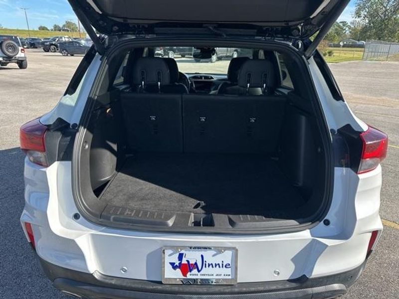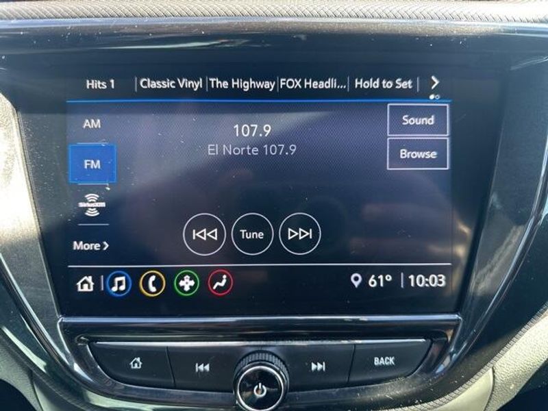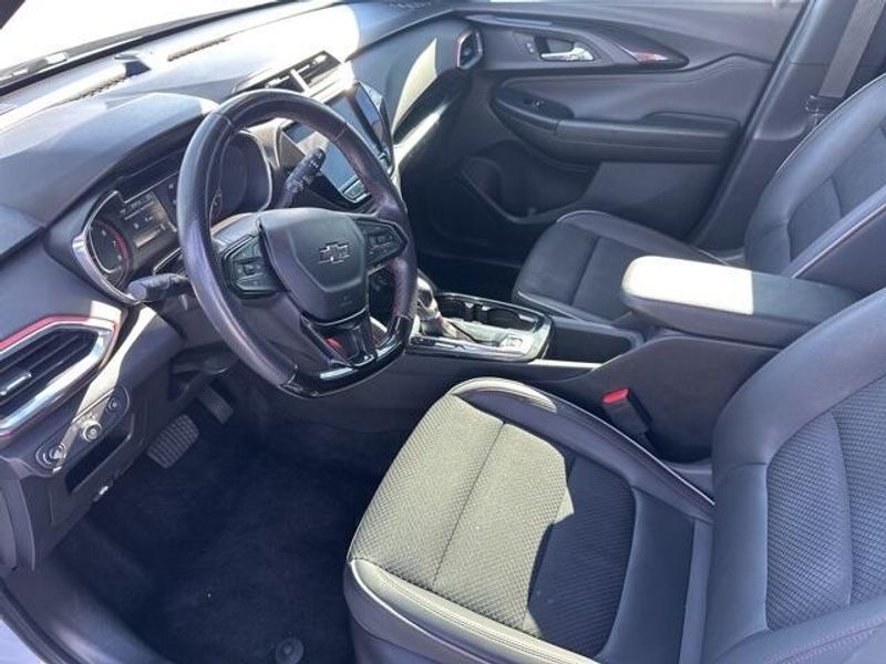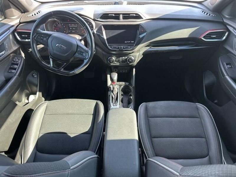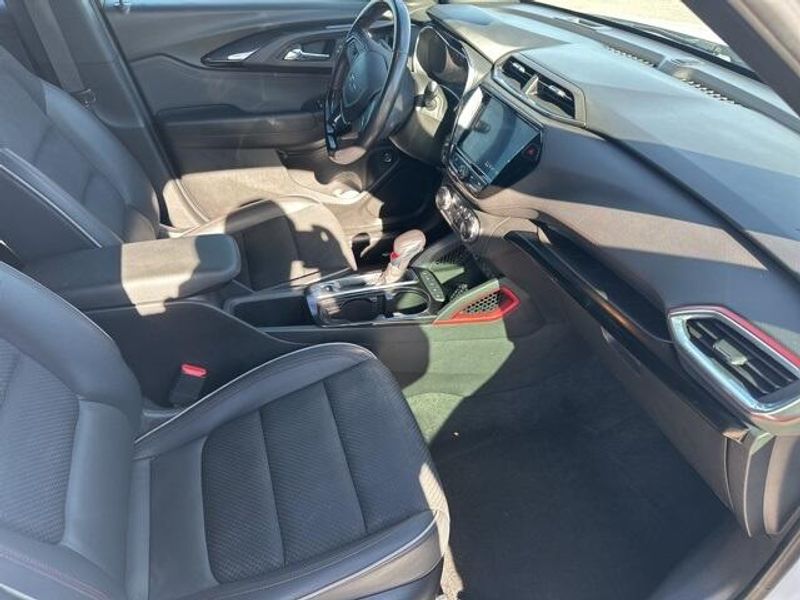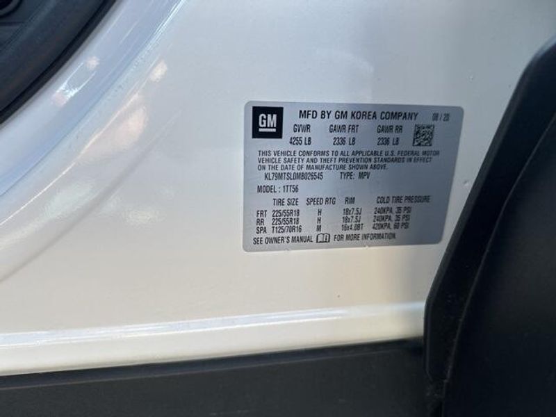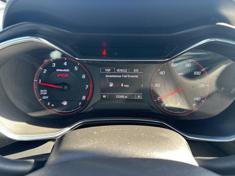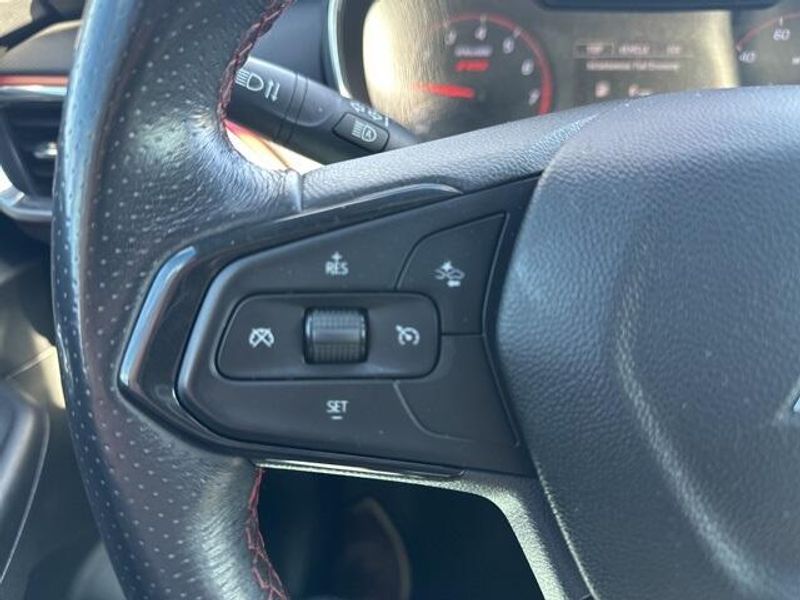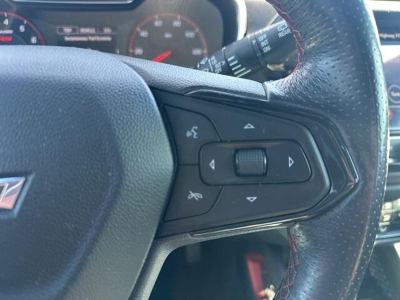 THIS VEHICLE IS EQUIPPED THE FOLLOWING FEATURES AND OPTIONS: Convenience Package (1 Type-A & 1 Type-C USB Charging-Only Ports, 120-Volt Power Outlet, 8'' Diagonal Color Touchscreen Display, Cabin Humidity Sensor, Driver & Front Passenger Illuminated Vanity Mirrors, Inside Rear-View Auto-Dimming Mirror, Single-Zone Auto Climate Control Air Conditioning, and SiriusXM Radio), Driver Confidence Package (Lane Change Alert w/Side Blind Zone Alert, Rear Cross Traffic Alert, and Rear Park Assist), Preferred Equipment Group 1RS, Sun & Liftgate Package (Dual-Pane Panoramic Power Sunroof and Hands-Free Power Programmable Liftgate), 2-Way Power Driver Lumbar Seat Adjuster, 4-Way Manual Front Passenger Seat Adjuster, 4-Wheel Disc Brakes, 5.45 Axle Ratio, 6 Speakers, 6-Speaker Audio System Feature, 8-Way Power Driver Seat Adjuster, ABS brakes, Air Conditioning, Alloy wheels, AM/FM radio, Apple CarPlay/Android Auto, Auto High-beam Headlights, Brake assist, Bumpers: body-color, Cloth w/Leatherette Seat Trim, Compass, Delay-off headlights, Driver door bin, Driver vanity mirror, Dual front impact airbags, Dual front side impact airbags, Electronic Stability Control, Emergency communication system: OnStar and Chevrolet connected services capable, Exterior Parking Camera Rear, Flat-Folding Front Passenger Seatback, Front anti-roll bar, Front Bucket Seats, Front Center Armrest, Front fog lights, Front License Plate Bracket, Front reading lights, Front wheel independent suspension, Fully automatic headlights, Heated door mirrors, Heated Driver & Front Passenger Seats, Heated front seats, Illuminated entry, Knee airbag, Leather Shift Knob, Leather steering wheel, Low tire pressure warning, Mosaic Black Metallic Two-Tone Roof, Occupant sensing airbag, Overhead airbag, Overhead console, Panic alarm, Passenger door bin, Passenger vanity mirror, Power door mirrors, Power driver seat, Power steering, Power windows, Radio data system, Radio: Chevrolet Infotainment 3 System, Rear seat center armrest, Rear side impact airbag, Rear window defroster, Rear window wiper, Remote keyless entry, Ride & Handling Suspension, Roof rack: rails only, Security system, Speed control, Split folding rear seat, Spoiler, Steering wheel mounted audio controls, Tachometer, Telescoping steering wheel, Tilt steering wheel, Traction control, Trip computer, Variably intermittent wipers, Wheels: 18'' High Gloss Black Machined Aluminum, and Wireless Apple CarPlay/Android Auto.