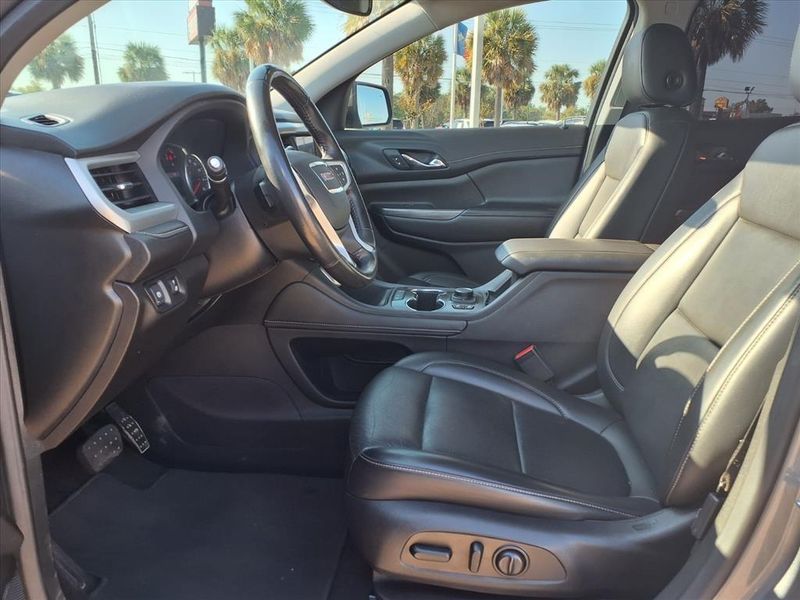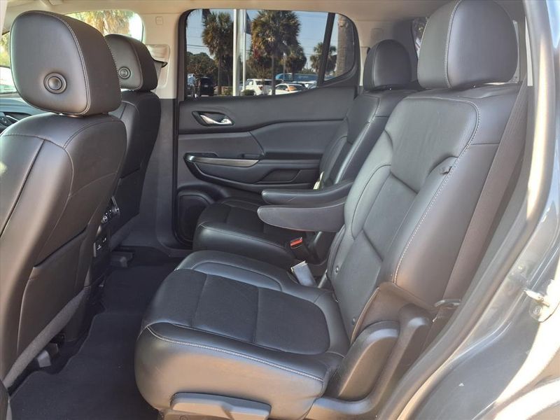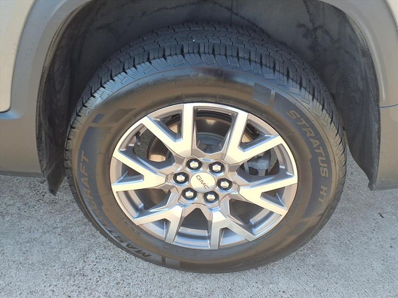 THIS VEHICLE IS EQUIPPED WITH THE FOLLOWING FEATURES AND OPTIONS :Preferred Equipment Group 4SA, FWD, Jet Black Leather, 18'' Aluminum Wheels, 3.47 Final Drive Axle Ratio, 3rd row seats: split-bench, 4-Way Manual Passenger Seat Adjuster, 4-Wheel Disc Brakes, 6-Passenger (2-2-2 Seating Configuration), 8 Speakers, 8-Way Power Driver Seat Adjuster, ABS brakes, Air Conditioning, Alloy wheels, AM/FM radio: SiriusXM with 360L, Apple CarPlay/Android Auto, Auto High-beam Headlights, Auto-dimming Rear-View mirror, Automatic temperature control, Bose Premium 8-Speaker Audio System Feature, Brake assist, Bumpers: body-color, Compass, Delay-off headlights, Driver door bin, Driver vanity mirror, Dual front impact airbags, Dual front side impact airbags, Electronic Stability Control, Emergency communication system: OnStar and GMC connected services capable, Four wheel independent suspension, Front anti-roll bar, Front Bucket Seats, Front Center Armrest, Front dual zone A/C, Front fog lights, Front License Plate Bracket, Front reading lights, Fully automatic headlights, Garage door transmitter, HD Radio, Heated door mirrors, Heated Driver & Front Passenger Seats, Heated front seats, Illuminated entry, Knee airbag, Low tire pressure warning, Navigation System, Occupant sensing airbag, Outside temperature display, Overhead airbag, Overhead console, Panic alarm, Passenger door bin, Passenger vanity mirror, Perforated Leather-Appointed Seat Trim, Power door mirrors, Power Driver Lumbar Control Seat Adjuster, Power driver seat, Power Liftgate, Power steering, Power windows, Premium audio system: GMC Infotainment System, Radio data system, Radio: AM/FM 8'' Diagonal Multi-Touch Navigation, Rear air conditioning, Rear anti-roll bar, Rear reading lights, Rear window defroster, Rear window wiper, Remote keyless entry, Roof rack: rails only, Security system, SiriusXM w/360L, Speed control, Speed-sensing steering, Spoiler, Steering wheel mounted audio controls, Tachometer, Telescoping steering wheel, Tilt steering wheel, Traction control, Trip computer, Turn signal indicator mirrors, Variably intermittent wipers, Voltmeter, Wheels: 18'' Machined Aluminum (DISC), and Wireless Apple CarPlay/Wireless Android Auto. 22/29 City/Highway MPG