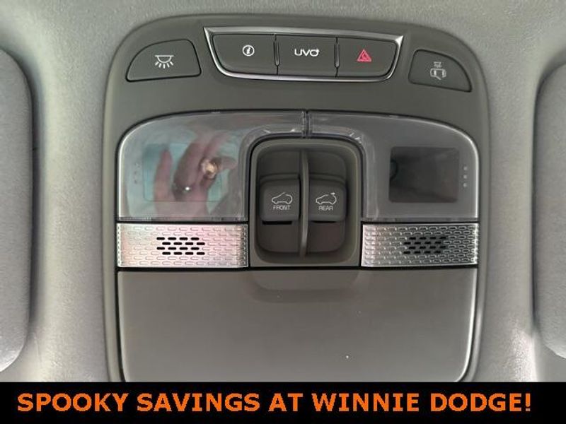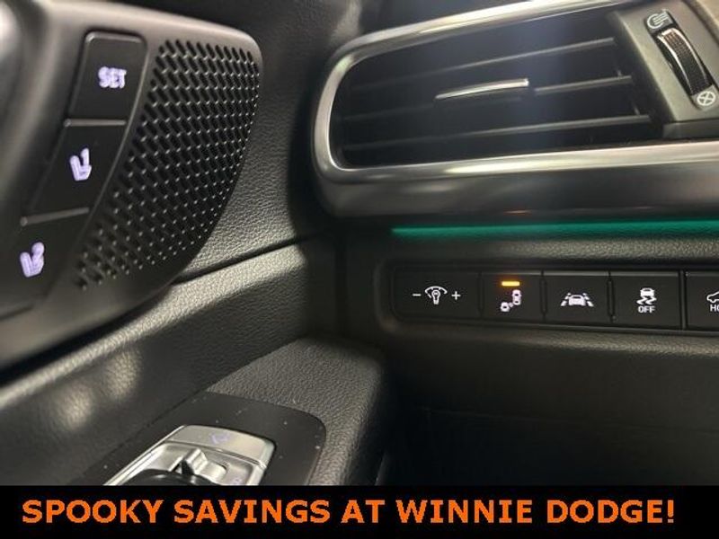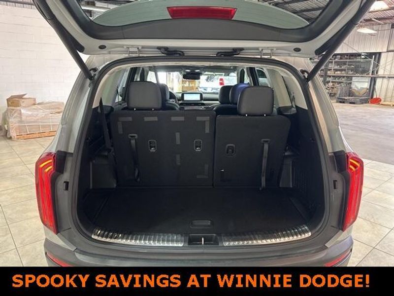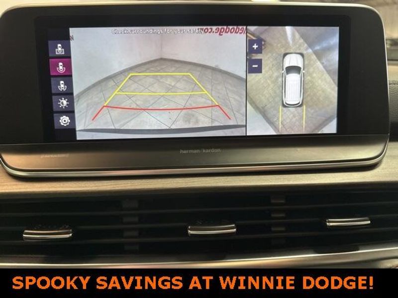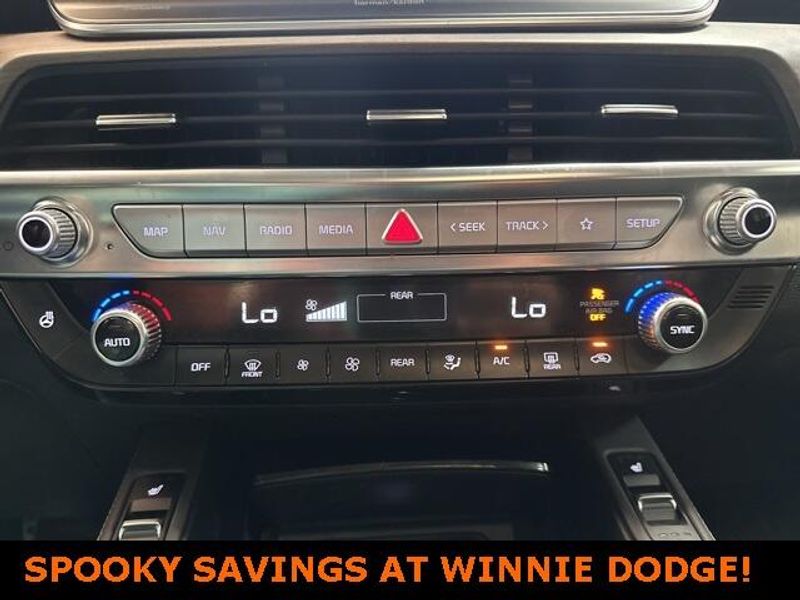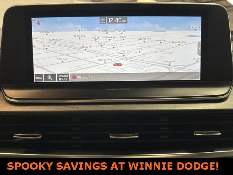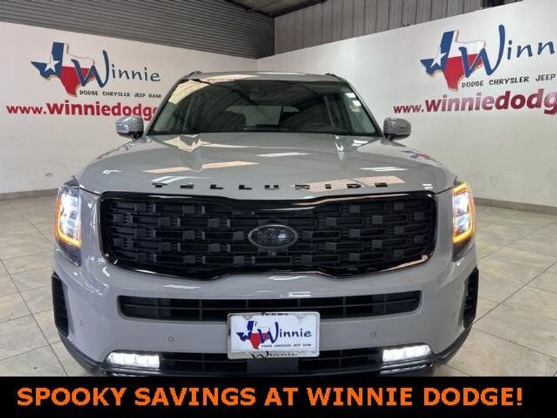 THIS VEHICLE IS EQUIPPED THE FOLLOWING FEATURES AND OPTIONS: Nightfall Edition Package (Black Finish Radiator Grille, Body Color Exterior Door Handles, Exclusive Black Fog Light Bezel, Exclusive Black Headlight Bezels, Front & Rear Gloss Black Finish Bumper Skid Plates, Front & Rear KIA Logo, Gloss Black Finish Exterior Emblems, Gloss Black Finish Front & Rear Door Garnish, Gloss Black Finish Roof Rails, and Wheels: 7.5'' x 20'' Exclusive Black Finish Alloy), SX Prestige Package (110V Inverter, Heads-Up Display, Heated & Ventilated 2nd Row Seats, Premium Cloth Headliner & Pillar Trim, Premium Nappa Leather Seat Trim, and Rain-Sensing Front Windshield Wipers), Towing Package (Self Leveling Rear Suspension and Tow Hitch w/Harness (TOF)), 10 Speakers, 3.648 Axle Ratio, 3rd row seats: split-bench, 4-Wheel Disc Brakes, ABS brakes, Air Conditioning, Alloy wheels, AM/FM radio: SiriusXM, Apple CarPlay & Android Auto, Auto High-beam Headlights, Auto-dimming Rear-View mirror, Automatic temperature control, Brake assist, Bumpers: body-color, Cargo Net, Cargo Seatback Up Mat, Carpeted Floor Mats, Compass, Delay-off headlights, Driver door bin, Driver vanity mirror, Dual front impact airbags, Dual front side impact airbags, Electronic Stability Control, Emergency communication system: 911 Connect, Four wheel independent suspension, Front anti-roll bar, Front Bucket Seats, Front Center Armrest, Front dual zone A/C, Front fog lights, Front reading lights, Fully automatic headlights, Garage door transmitter: HomeLink, Heated & Ventilated Front Bucket Seats, Heated door mirrors, Heated front seats, Heated steering wheel, Illuminated entry, Knee airbag, Leather Seat Trim, Leather Shift Knob, Leather steering wheel, Low tire pressure warning, Memory seat, Mud Guard Kit, Navigation System, Occupant sensing airbag, Outside temperature display, Overhead airbag, Overhead console, Panic alarm, Passenger door bin, Passenger vanity mirror, Power door mirrors, Power driver seat, Power Liftgate, Power moonroof, Power passenger seat, Power steering, Power windows, Radio data system, Radio: AM/FM/SIRIUS Premium Audio, Rear air conditioning, Rear anti-roll bar, Rear audio controls, Rear reading lights, Rear window defroster, Rear window wiper, Reclining 3rd row seat, Remote keyless entry, Roof rack: rails only, Security system, Smart Key w/ Push Button and Remote Start, Speed control, Speed-sensing steering, Split folding rear seat, Spoiler, Steering wheel mounted audio controls, Tachometer, Telescoping steering wheel, Tilt steering wheel, Traction control, Trip computer, Turn signal indicator mirrors, Variably intermittent wipers, Ventilated front seats, and Wheels: 7.5'' x 20'' Black Finish Alloy.