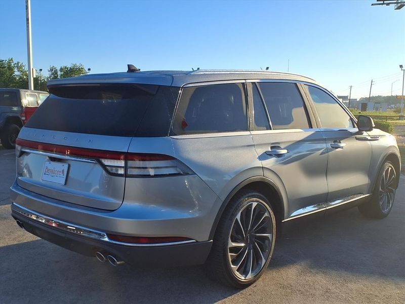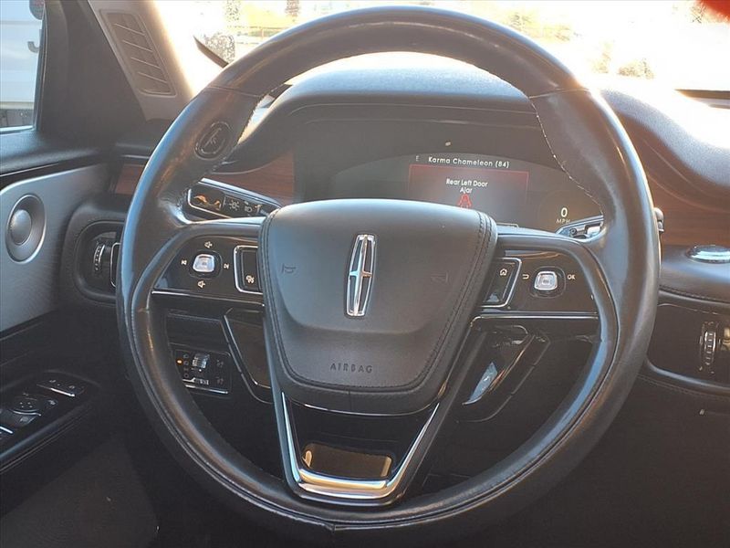 THIS VEHICLE IS EQUIPPED WITH THE FOLLOWING FEATURES AND OPTIONS :Class IV Trailer Tow Package (4-Pin & 7-Pin Connectors, Blind Spot Detection w/Cross Traffic Alert, Class IV Hitch & Wiring, Smart Trailer Tow, and Trailer Sway Control), Convenience Package (Head-Up Display, Phone As A Key, and Wireless Charging Pad), Elements Package Plus (Auto Air Refresh, Auto Heated/Ventilated Driver & Passenger Seats, Heated Steering Wheel, Heated VisioBlade Wipers, and Heated/Ventilated 2nd Row Outboard Seats), Equipment Group 202A (Wheels: 22'' Bright-Machined Aluminum), Illumination Package (Adaptive Pixel LED Headlamps and Lincoln Lit Star in Grille), Lincoln Co-Pilot360 Plus (Active Park Assist Plus, Adaptive Cruise Control w/Traffic Jam Assist, Evasive Steering Assist, and Reverse Brake Assist), Luxury Package (30-Way Perfect Position Seats w/Active Motion, Radio: Revel Ultima 3D Audio System w/28 Speakers, and Rear Door Sunshades), 14 Speakers, 3.58 Axle Ratio, 3rd row seats: split-bench, 4-Wheel Disc Brakes, ABS brakes, Adaptive suspension, Air Conditioning, All-Weather Floor Liners, Alloy wheels, AM/FM radio: SiriusXM, Audio memory, Auto High-beam Headlights, Auto-dimming door mirrors, Auto-dimming Rear-View mirror, Automatic temperature control, Brake assist, Bumpers: body-color, Compass, Delay-off headlights, Driver door bin, Driver vanity mirror, Dual front impact airbags, Dual front side impact airbags, Electronic Stability Control, Emergency communication system, Four wheel independent suspension, Front anti-roll bar, Front Bucket Seats, Front Center Armrest, Front dual zone A/C, Front fog lights, Front reading lights, Full Rear Console, Fully automatic headlights, Garage door transmitter, Heated door mirrors, Heated front seats, Hidden Locking Lug Nut Kit (Dealer Installed), HVAC memory, Illuminated entry, Knee airbag, Low tire pressure warning, Memory seat, Navigation System, Occupant sensing airbag, Outside temperature display, Overhead airbag, Overhead console, Panic alarm, Passenger door bin, Passenger vanity mirror, Power door mirrors, Power driver seat, Power Liftgate, Power moonroof: Panoramic Vista Roof, Power passenger seat, Power steering, Power windows, Premium Lthr Heated/Ventilated Fnt Captain's Chairs, Radio data system, Radio: Revel AM/FM Audio System w/14 Speakers, Rain sensing wipers, Rear air conditioning, Rear anti-roll bar, Rear audio controls, Rear dual zone A/C, Rear reading lights, Rear window defroster, Rear window wiper, Remote keyless entry, Security system, SiriusXM, Speed control, Speed-Sensitive Wipers, Split folding rear seat, Spoiler, Steering wheel memory, Steering wheel mounted A/C controls, Steering wheel mounted audio controls, SYNC 3 Communication & Entertainment System, Tachometer, Telescoping steering wheel, Tilt steering wheel, Traction control, Trip computer, Turn signal indicator mirrors, Variably intermittent wipers, and Wheels: 20'' Bright-Machined Aluminum.