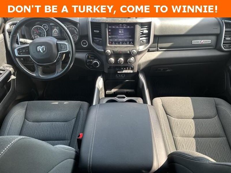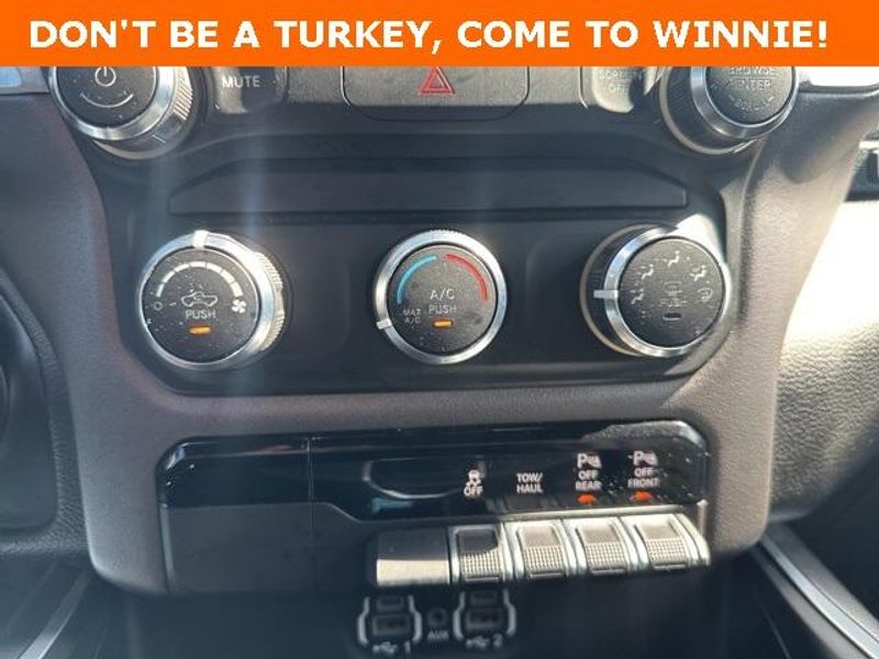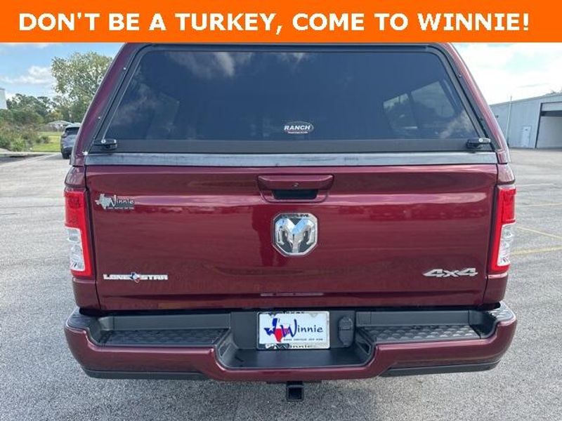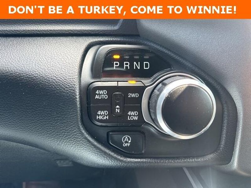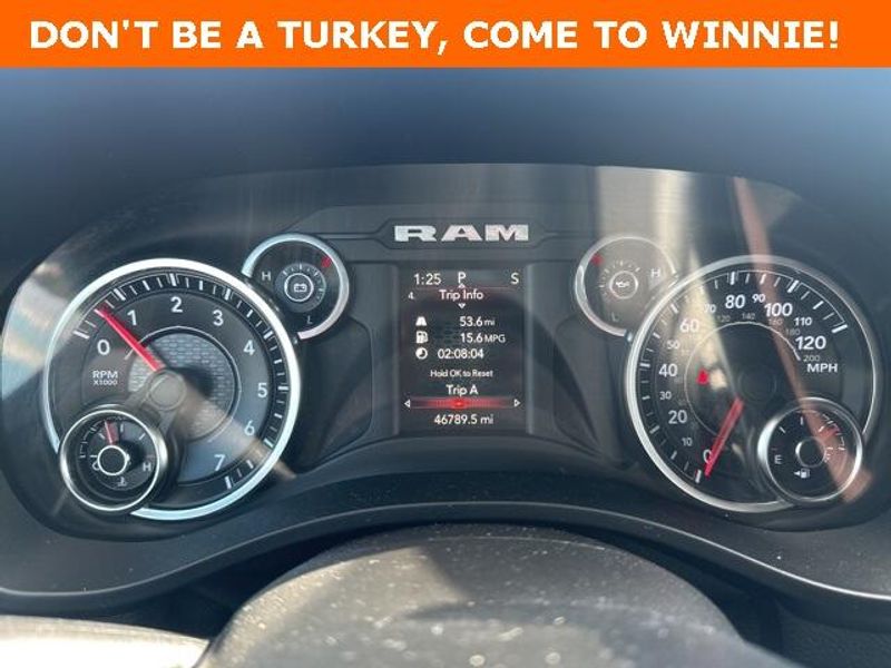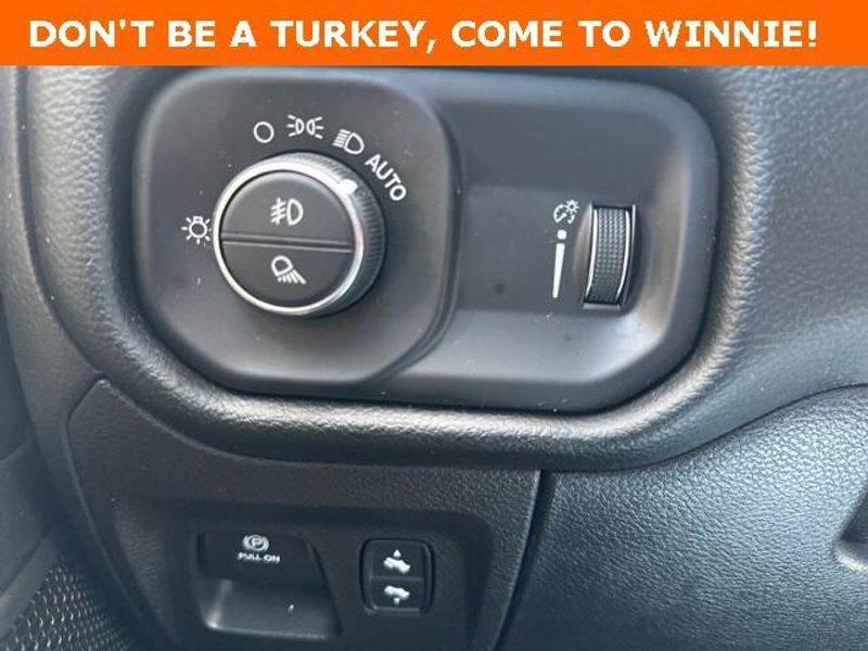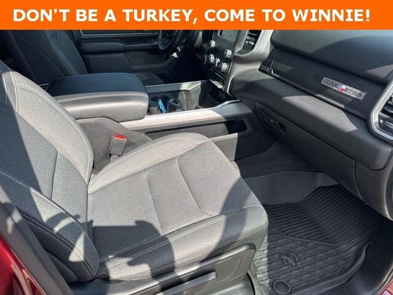 THIS VEHICLE IS EQUIPPED THE FOLLOWING FEATURES AND OPTIONS: Big Horn Level 1 Equipment Group (Radio: Uconnect 4 w/8.4'' Display), Protection Group (Tow Hooks), Quick Order Package 23R Lone Star (Regional), Sport Appearance Package (3 Rear Seat Head Restraints, 4 Way Front Headrests, Deluxe Cloth Bucket Seats, Front Seat Back Map Pockets, and Rear 60/40 Folding Seat), 3.21 Rear Axle Ratio, 4-Wheel Disc Brakes, 40/20/40 Split Bench Seat, 48V Belt Starter Generator, 6 Speakers, ABS brakes, Air Conditioning, Alloy wheels, AM/FM radio, Anti-Spin Differential Rear Axle, Black Exterior Mirrors, Brake assist, Bumpers: chrome, Cloth Bench Seat, Compass, Delay-off headlights, Driver door bin, Dual front impact airbags, Dual front side impact airbags, Electronic Stability Control, Front anti-roll bar, Front Center Armrest w/Storage, Front fog lights, Front License Plate Bracket, Front reading lights, Front wheel independent suspension, Fully automatic headlights, GPS Antenna Input, Heated door mirrors, Illuminated entry, Integrated Voice Command w/Bluetooth, Leather steering wheel, Low tire pressure warning, Manufacturer's Statement of Origin, MOPAR Front & Rear Rubber Floor Mats, Occupant sensing airbag, Outside temperature display, Overhead airbag, Overhead console, Panic alarm, ParkSense Front/Rear Park Assist w/Stop, ParkView Rear Back-Up Camera, Passenger door bin, Passenger vanity mirror, Power door mirrors, Power steering, Power windows, Radio data system, Radio: Uconnect 3 w/5'' Display, Rear anti-roll bar, Rear seat center armrest, Rear step bumper, Remote keyless entry, Remote Start System, Speed control, Split folding rear seat, Steering wheel mounted audio controls, Tachometer, Telescoping steering wheel, Tilt steering wheel, Traction control, Trip computer, Variably intermittent wipers, Voltmeter, Wheel to Wheel Side Steps, Wheels: 18'' x 8'' Cast-Aluminum Painted, and Wheels: 20'' x 9'' Aluminum Chrome Clad (WRK)