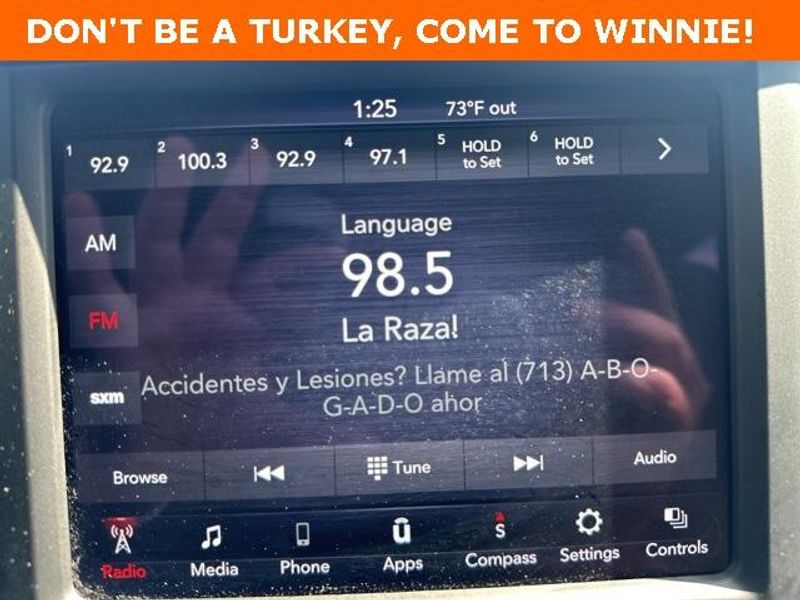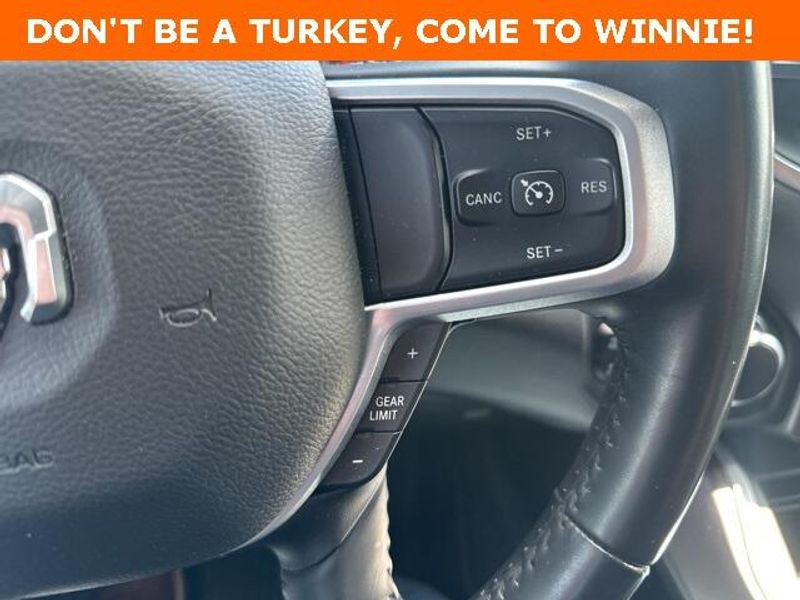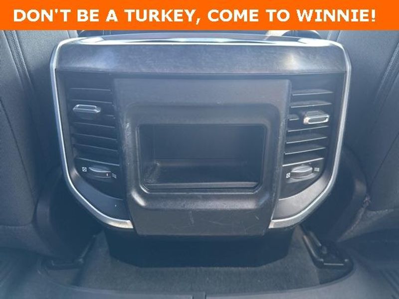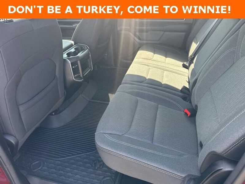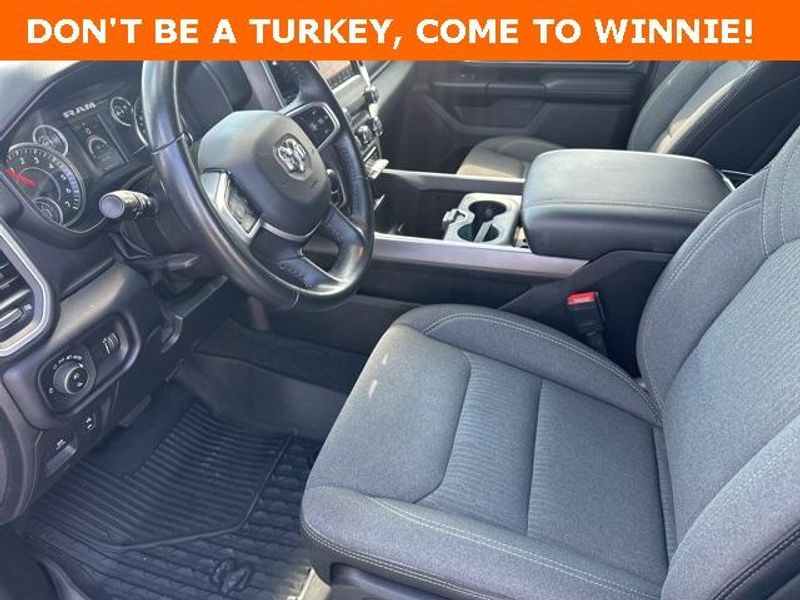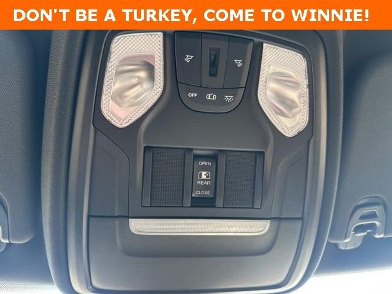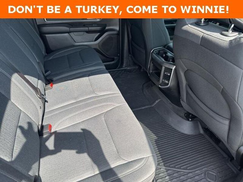THIS VEHICLE IS EQUIPPED THE FOLLOWING FEATURES AND OPTIONS: Big Horn Level 1 Equipment Group (Radio: Uconnect 4 w/8.4'' Display), Protection Group (Tow Hooks), Quick Order Package 23R Lone Star (Regional), Sport Appearance Package (3 Rear Seat Head Restraints, 4 Way Front Headrests, Deluxe Cloth Bucket Seats, Front Seat Back Map Pockets, and Rear 60/40 Folding Seat), 3.21 Rear Axle Ratio, 4-Wheel Disc Brakes, 40/20/40 Split Bench Seat, 48V Belt Starter Generator, 6 Speakers, ABS brakes, Air Conditioning, Alloy wheels, AM/FM radio, Anti-Spin Differential Rear Axle, Black Exterior Mirrors, Brake assist, Bumpers: chrome, Cloth Bench Seat, Compass, Delay-off headlights, Driver door bin, Dual front impact airbags, Dual front side impact airbags, Electronic Stability Control, Front anti-roll bar, Front Center Armrest w/Storage, Front fog lights, Front License Plate Bracket, Front reading lights, Front wheel independent suspension, Fully automatic headlights, GPS Antenna Input, Heated door mirrors, Illuminated entry, Integrated Voice Command w/Bluetooth, Leather steering wheel, Low tire pressure warning, Manufacturer's Statement of Origin, MOPAR Front & Rear Rubber Floor Mats, Occupant sensing airbag, Outside temperature display, Overhead airbag, Overhead console, Panic alarm, ParkSense Front/Rear Park Assist w/Stop, ParkView Rear Back-Up Camera, Passenger door bin, Passenger vanity mirror, Power door mirrors, Power steering, Power windows, Radio data system, Radio: Uconnect 3 w/5'' Display, Rear anti-roll bar, Rear seat center armrest, Rear step bumper, Remote keyless entry, Remote Start System, Speed control, Split folding rear seat, Steering wheel mounted audio controls, Tachometer, Telescoping steering wheel, Tilt steering wheel, Traction control, Trip computer, Variably intermittent wipers, Voltmeter, Wheel to Wheel Side Steps, Wheels: 18'' x 8'' Cast-Aluminum Painted, and Wheels: 20'' x 9'' Aluminum Chrome Clad (WRK)