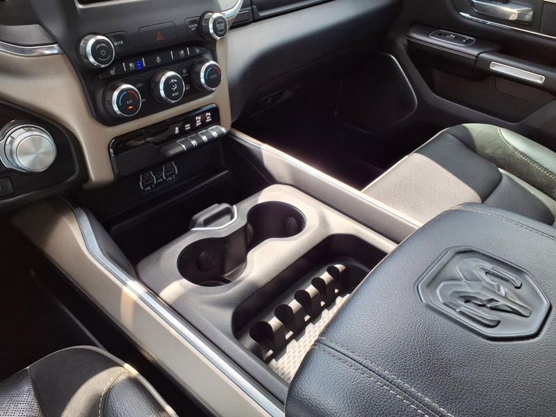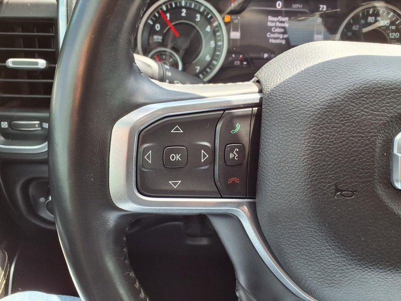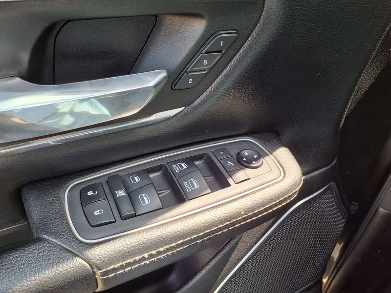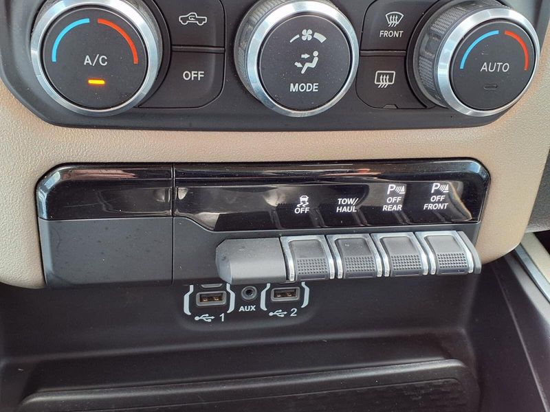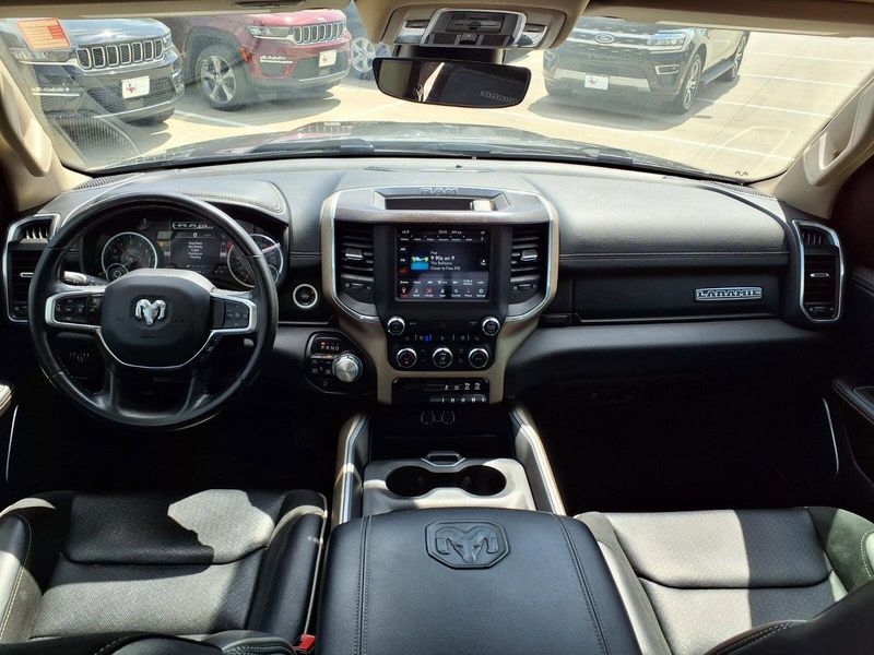The Laramie's interior is designed with your comfort and convenience in mind. Luxurious leather-trimmed bucket seats, a heated steering wheel, and ventilated front seats ensure you'll enjoy every mile. The Uconnect 4 system with an 8.4-inch touchscreen display provides seamless connectivity, while the ParkSense Front/Rear Park Assist with Stop helps you navigate tight spaces with ease.