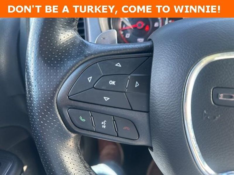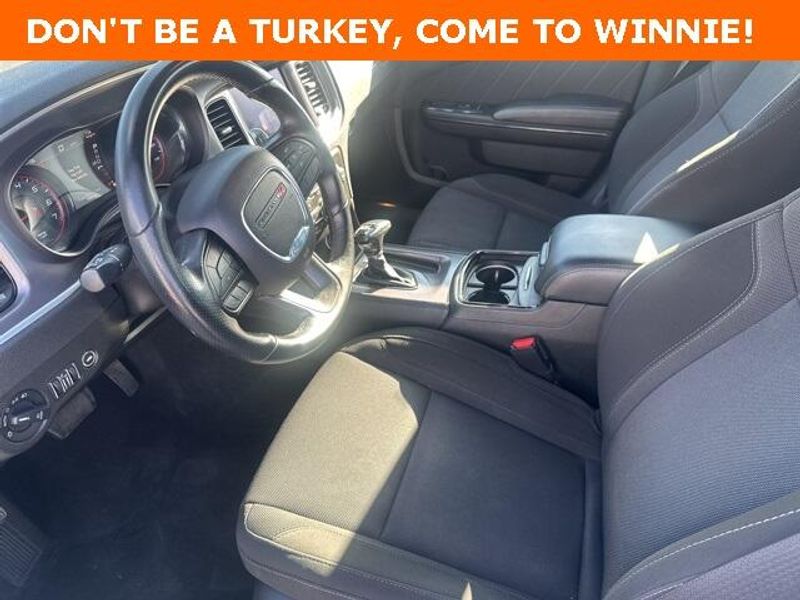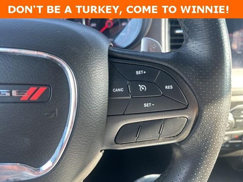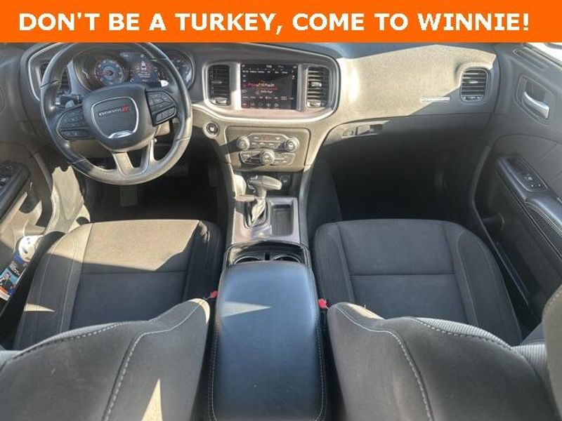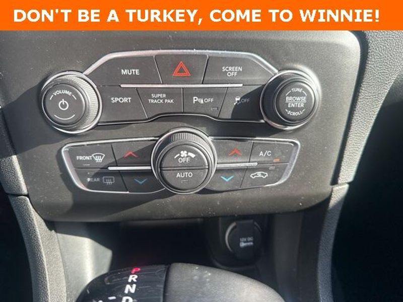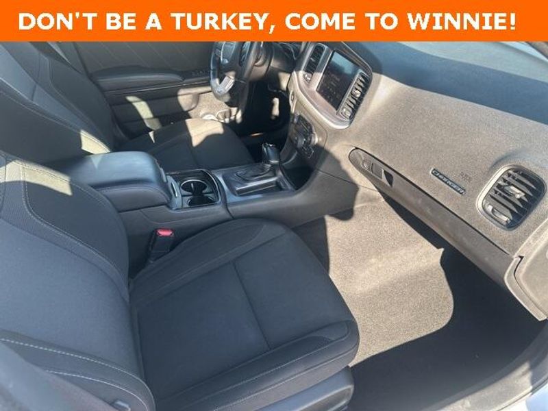 THIS VEHICLE IS EQUIPPED THE FOLLOWING FEATURES AND OPTIONS: Blacktop Package (AWD Rhombi Black Badge, Black 1-Piece Performance Spoiler, Dodge Grille Badge, Gloss Black I/P Cluster Trim Rings, Satin Black Charger Decklid Badge, and Satin Black Dodge Tail Lamp Badge), Quick Order Package 29G, 4-Wheel Disc Brakes, 6 Speakers, ABS brakes, Air Conditioning, Alloy wheels, AM/FM radio: SiriusXM, Anti-whiplash front head restraints, Apple CarPlay, Apple CarPlay/Android Auto, Auto-dimming Rear-View mirror, Automatic temperature control, Body Color Exterior Mirrors, Brake assist, Bumpers: body-color, Cloth Sport Seat, Compass, Delay-off headlights, Driver & Passenger Lower LED Lamps, Driver door bin, Driver vanity mirror, Dual front impact airbags, Dual front side impact airbags, Electronic Stability Control, Emergency communication system: SiriusXM Guardian, Four wheel independent suspension, Front anti-roll bar, Front Bucket Seats, Front Center Armrest, Front dual zone A/C, Front fog lights, Front License Plate Bracket, Front reading lights, Fully automatic headlights, Google Android Auto, GPS Antenna Input, Heated door mirrors, Illuminated entry, Integrated Center Stack Radio, Integrated Voice Command w/Bluetooth, Knee airbag, Leather Shift Knob, Low tire pressure warning, Media Hub (2 USB, AUX), Occupant sensing airbag, Outside temperature display, Overhead airbag, Overhead console, Panic alarm, ParkView Rear Back-Up Camera, Passenger door bin, Passenger vanity mirror, Power 2-Way Driver Lumbar Adjust, Power 8-Way Driver Seat, Power door mirrors, Power driver seat, Power steering, Power windows, Radio: Uconnect 4C w/8.4'' Display, Rear anti-roll bar, Rear Armrest w/Cupholder Seat, Rear reading lights, Rear seat center armrest, Rear window defroster, Remote keyless entry, Speed control, Speed-Sensitive Wipers, Split folding rear seat, Spoiler, Sport steering wheel, Steering wheel mounted audio controls, Tachometer, Telescoping steering wheel, Tilt steering wheel, Traction control, Trip computer, USB Host Flip, Variably intermittent wipers, Wheels: 19'' x 7.5'' Black Noise Painted, and Wheels: 19'' x 7.5'' Satin Carbon.