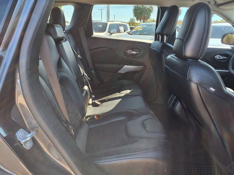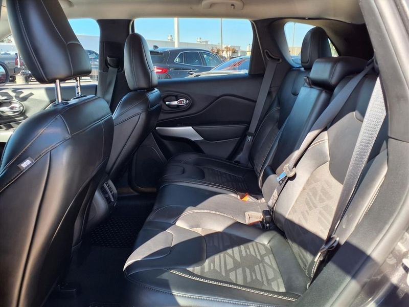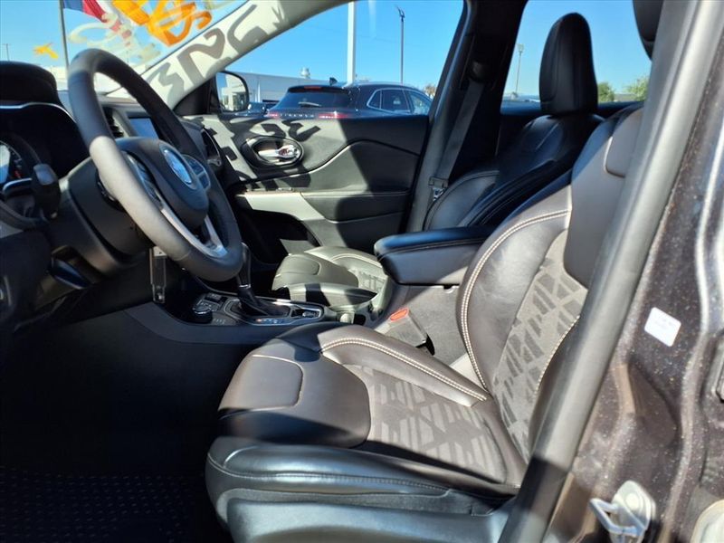 THIS VEHICLE IS EQUIPPED WITH THE FOLLOWING FEATURES AND OPTIONS :Quick Order Package 26S Cherokee X (All-Season Floor Mats, Cherokee X, Cherokee X Door Decal, Cherokee X Fascia, Cherokee X Hood & Liftgate Decal, Cloth/Premium Vinyl Seats w/Pixel Play, Front LED Fog Lamps, Gloss Black Badges, Gloss Black Exterior Accents, Gloss Black Grille Surrounds, Heated Front Seats, Heated Steering Wheel, Leather Wrapped Shift Knob, Light Tungsten Interior Accents, Matte Black Rear Tow Hook, Off Road Suspension, Off Road Wheel Flares, Offroad Sill Cladding, Power Adjust 8-Way Driver Seat, Power Driver Lumbar Adjust, Premium-Wrapped Steering Wheel, Remote Start System, Silver Anodized Interior Accents, Sliding Sun Visors w/Illuminated Mirrors, Steering Wheel Mounted Audio Controls, Wheels: 17'' x 7.5'' Black Painted Aluminum, and Windshield Wiper De-Icer), 3.251 Final Drive Ratio, 4-Wheel Disc Brakes, 6 Speakers, ABS brakes, Air Conditioning, Alloy wheels, AM/FM radio: SiriusXM, Anti-whiplash front head restraints, Apple CarPlay/Android Auto, Brake assist, Bumpers: body-color, Compass, Delay-off headlights, Driver door bin, Driver vanity mirror, Dual front impact airbags, Dual front side impact airbags, Electronic Stability Control, Four wheel independent suspension, Front anti-roll bar, Front Bucket Seats, Front Center Armrest, Front License Plate Bracket, Front reading lights, Fully automatic headlights, Heated door mirrors, Illuminated entry, Knee airbag, Low tire pressure warning, Occupant sensing airbag, Outside temperature display, Overhead airbag, Overhead console, Panic alarm, ParkView Rear Back-Up Camera, Passenger door bin, Passenger vanity mirror, Power door mirrors, Power steering, Power windows, Radio data system, Radio: Uconnect 4 w/8.4'' Display, Rain sensing wipers, Rear anti-roll bar, Rear reading lights, Rear seat center armrest, Rear side impact airbag, Rear window defroster, Rear window wiper, Remote keyless entry, Roof rack: rails only, Speed control, Speed-sensing steering, Split folding rear seat, Spoiler, Tachometer, Telescoping steering wheel, Tilt steering wheel, Traction control, Trip computer, Turn signal indicator mirrors, Variably intermittent wipers, and Voltmeter. Odometer is 1424 miles below market average! 19/27 City/Highway MPG