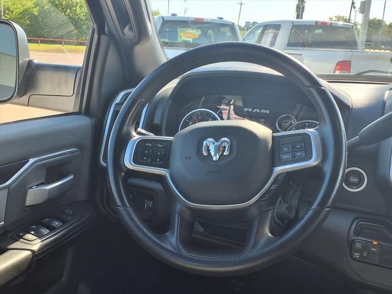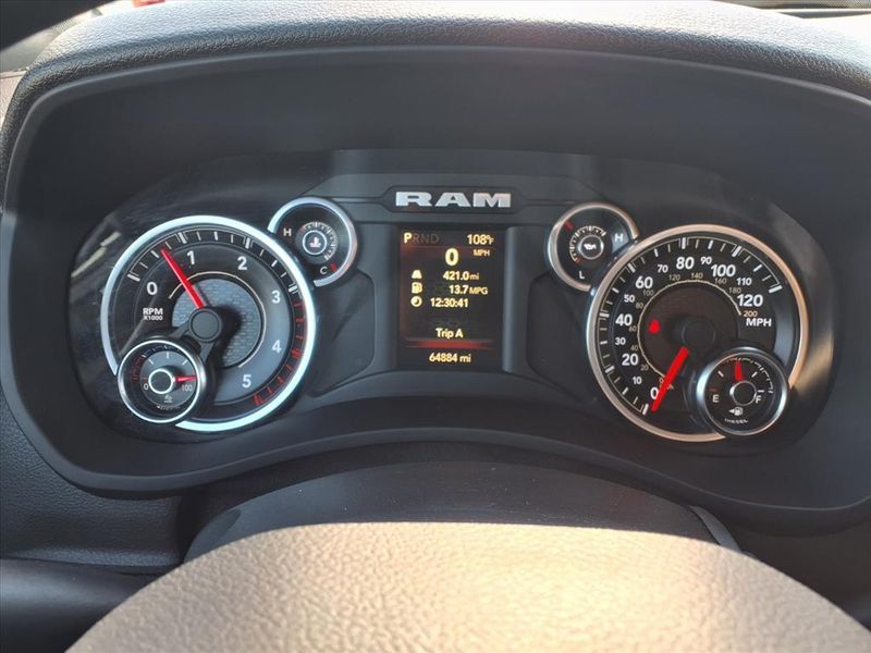 THIS VEHICLE IS EQUIPPED WITH THE FOLLOWING FEATURES AND OPTIONS :Quick Order Package 2HZ Big Horn, 2 Way Rear Headrest Seat, 3.73 Axle Ratio, 4 Way Front Headrests, 4-Wheel Disc Brakes, 40/20/40 Split Bench Seat, 4G LTE Wi-Fi Hot Spot, 6 Speakers, 8.4'' Touchscreen Display, ABS brakes, Active Noise Control System, Air Conditioning, AM/FM radio: SiriusXM, Apple CarPlay, Apple CarPlay/Android Auto, Bluetooth Handsfree Phone & Audio, Brake assist, Bumpers: chrome, Center Hub, Center Stack Storage Drawer, Chrome Flat Cab-Length Side Steps, Cloth 40/20/40 Bench Seat, Compass, Connectivity - US/Canada, Delay-off headlights, Driver door bin, Dual front impact airbags, Dual front side impact airbags, Electronic Stability Control, Electronically Controlled Throttle, Front anti-roll bar, Front Center Armrest w/Storage, Front License Plate Bracket, Front reading lights, Fully automatic headlights, Global Telematics Box Module (TBM), Google Android Auto, GPS Antenna Input, Heated door mirrors, Illuminated entry, Integrated Center Stack Radio, Integrated Voice Command w/Bluetooth, Low tire pressure warning, Manual Adjust 4-Way Driver Seat, Manufacturer's Statement of Origin, Occupant sensing airbag, Outside temperature display, Overhead airbag, Overhead console, Panic alarm, ParkView Rear Back-Up Camera, Passenger door bin, Passenger vanity mirror, Power door mirrors, Power steering, Power windows, Radio data system, Radio: Uconnect 5 W w/8.4'' Display, Rear anti-roll bar, Rear Folding Seat, Rear seat center armrest, Rear step bumper, Remote keyless entry, Selectable Tire Fill Alert, SiriusXM Radio Service, SiriusXM Satellite Radio, Speed control, Tachometer, Tilt steering wheel, Tip Start, Tow Hooks, Traction control, Trip computer, Turn signal indicator mirrors, Variably intermittent wipers, Vendor Painted Cargo Box, Vendor Painted Cargo Box Tracking, Voltmeter, and Wheels: 18'' x 8.0'' Steel Chrome Clad. Odometer is 22544 miles below market average!