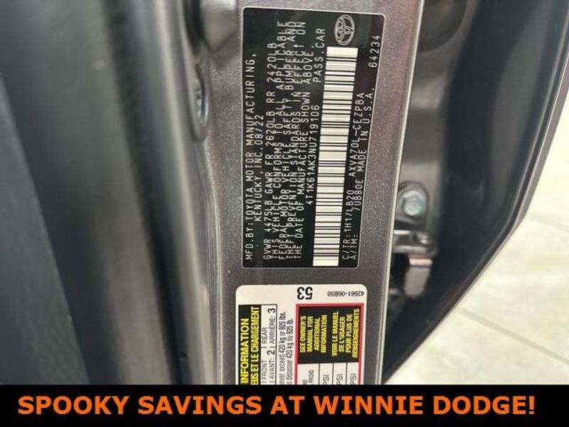 THIS VEHICLE IS EQUIPPED THE FOLLOWING FEATURES AND OPTIONS: 4-Wheel Disc Brakes, 6 Speakers, ABS brakes, Air Conditioning, Alloy wheels, AM/FM radio: SiriusXM, Apple CarPlay/Android Auto, Auto High-beam Headlights, Auto-dimming Rear-View mirror, Automatic temperature control, Brake assist, Bumpers: body-color, Delay-off headlights, Driver door bin, Driver vanity mirror, Dual front impact airbags, Dual front side impact airbags, Electronic Stability Control, Emergency communication system: Safety Connect with 1-year trial, Exterior Parking Camera Rear, Four wheel independent suspension, Front anti-roll bar, Front Bucket Seats, Front Center Armrest, Front dual zone A/C, Front reading lights, Fully automatic headlights, Garage door transmitter: HomeLink, Heated door mirrors, Heated front seats, Illuminated entry, Knee airbag, Low tire pressure warning, Multi-Stage Heated Front Bucket Seats, Occupant sensing airbag, Outside temperature display, Overhead airbag, Overhead console, Panic alarm, Passenger door bin, Passenger vanity mirror, Perforated Leather Seat Trim, Power door mirrors, Power driver seat, Power passenger seat, Power steering, Power windows, Radio data system, Radio: AM/FM/HD Audio Plus, Rear anti-roll bar, Rear reading lights, Rear seat center armrest, Rear side impact airbag, Rear window defroster, Remote keyless entry, Security system, Speed control, Speed-sensing steering, Split folding rear seat, Spoiler, Steering wheel mounted audio controls, Tachometer, Telescoping steering wheel, Tilt steering wheel, Traction control, Trip computer, Turn signal indicator mirrors, Variably intermittent wipers, and Wheels: 8.0J x 19'' Black Machined-Finish Alloy.