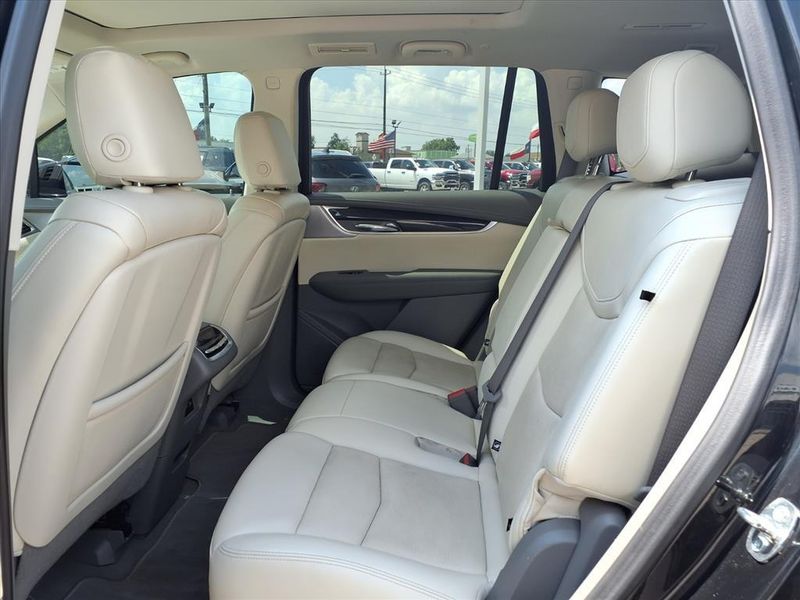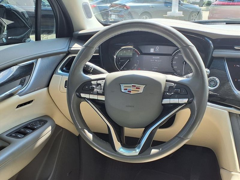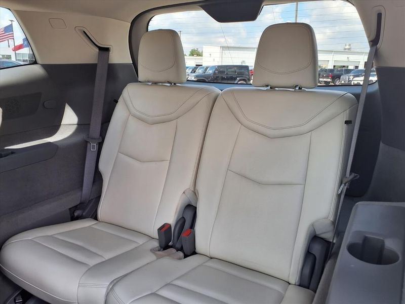 THIS VEHICLE IS EQUIPPED WITH THE FOLLOWING FEATURES AND OPTIONS :Premium Luxury Package 1SC (Automatic Emergency Braking, Dual Driver Info Center Display Gauge Cluster, Front & Rear Park Assist, Inside Rear-View Auto-Dimming Mirror, and Teen Driver), Radio: Cadillac User Experience w/Embedded Nav (Bose Performance Series Audio System and SiriusXM w/360L), 14 Speakers, 2-Way Power Driver Lumbar Control Seat Adjuster, 2-Way Power Passenger Lumbar Control Seat Adjuster, 3.49 Axle Ratio, 3rd row seats: split-bench, 4-Wheel Disc Brakes, 8-Way Power Driver Seat Adjuster, ABS brakes, Air Conditioning, Alloy wheels, AM/FM radio: SiriusXM with 360L, Audio memory, Auto High-beam Headlights, Auto tilt-away steering wheel, Auto-dimming door mirrors, Auto-dimming Rear-View mirror, Automatic Stop/Start w/Disable, Automatic temperature control, Brake assist, Bumpers: body-color, Compass, Delay-off headlights, Driver & Front Passenger Heated Seats, Driver door bin, Driver vanity mirror, Dual front impact airbags, Dual front side impact airbags, Electronic Stability Control, Emergency communication system: OnStar and Cadillac connected services capable, Four wheel independent suspension, Front anti-roll bar, Front Bucket Seats, Front Center Armrest, Front dual zone A/C, Front License Plate Bracket, Front reading lights, Fully automatic headlights, Garage door transmitter, Heated door mirrors, Heated front seats, Heated rear seats, Heated steering wheel, Illuminated entry, Knee airbag, Leather Seating Surfaces w/Mini-Perforated Inserts, Low tire pressure warning, Memory seat, Navigation System, Occupant sensing airbag, Outside temperature display, Overhead airbag, Overhead console, Panic alarm, Passenger door bin, Passenger vanity mirror, Power door mirrors, Power driver seat, Power Liftgate, Power moonroof: UltraView, Power passenger seat, Power steering, Power windows, Radio data system, Rain sensing wipers, Rear air conditioning, Rear anti-roll bar, Rear reading lights, Rear seat center armrest, Rear window defroster, Rear window wiper, Remote keyless entry, Ride & Handling Suspension, Roof rack: rails only, Security system, Speed control, Speed-sensing steering, Split folding rear seat, Spoiler, Steering wheel memory, Steering wheel mounted audio controls, Tachometer, Telescoping steering wheel, Tilt steering wheel, Traction control, Trip computer, Turn signal indicator mirrors, Variably intermittent wipers, Ventilated Driver & Front Passenger Seats, Ventilated front seats, Voltmeter, and Wheels: 20'' 6-Split Spoke Alloy. 19/26 City/Highway MPG