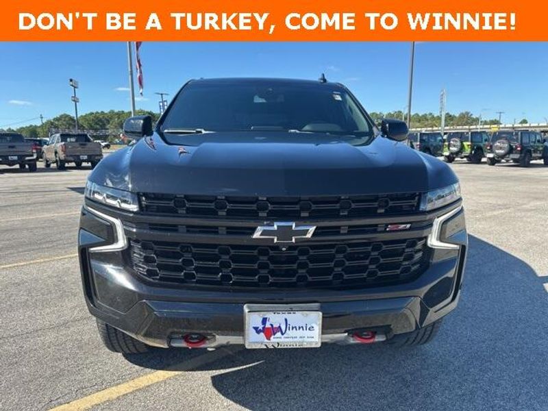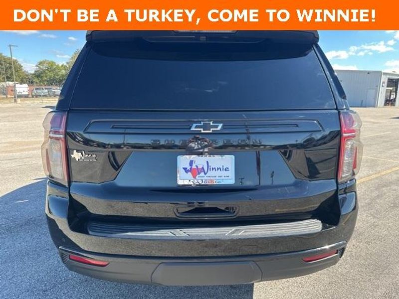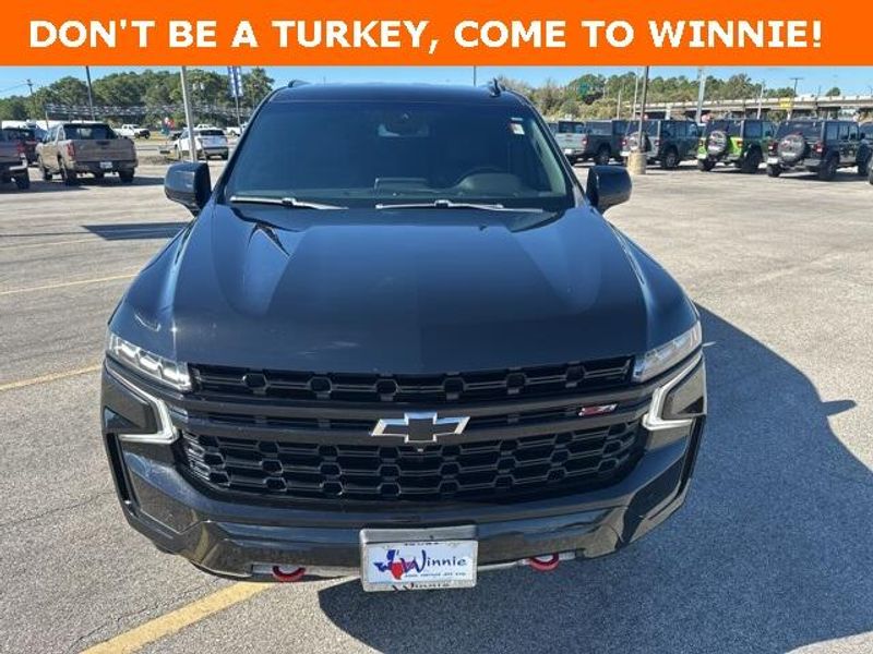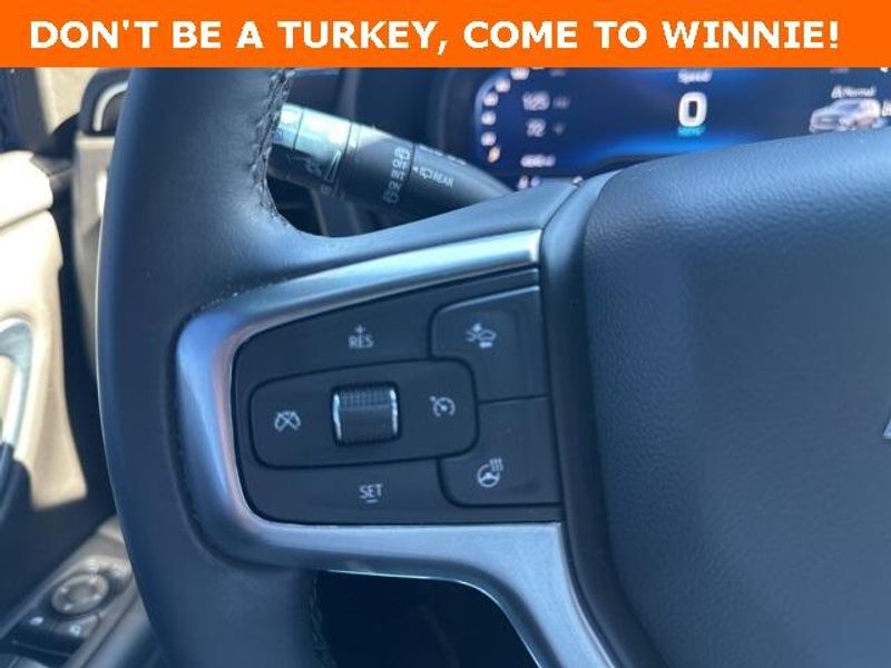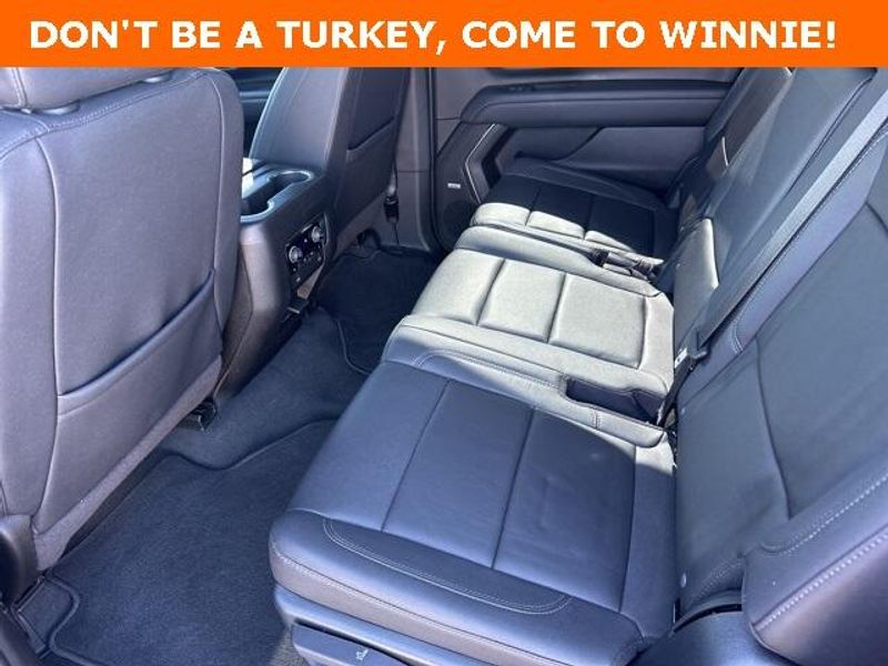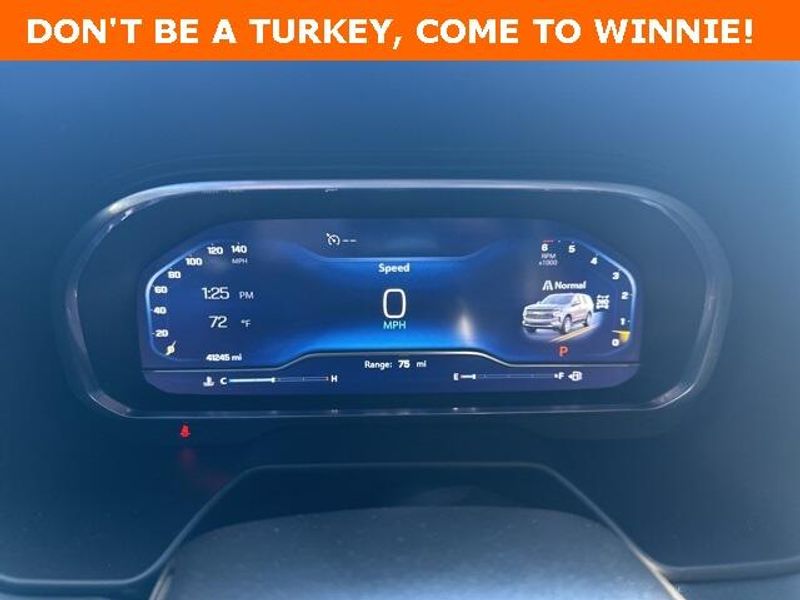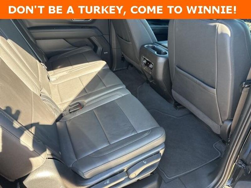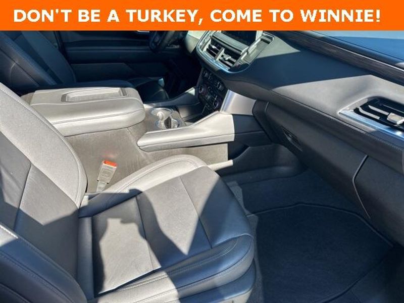 THIS VEHICLE IS EQUIPPED THE FOLLOWING FEATURES AND OPTIONS: Driver Alert Package (Lane Change Alert w/Side Blind Zone Alert and Rear Cross Traffic Alert), License Plate Front Mounting Package, Luxury Package (2nd Row Pwr Release 60/40 Split-Folding Bench Seat, 3rd Row 60/40 Power-Folding Split-Bench, HD Surround Vision, Heated 2nd Row Outboard Seats, Heated Steering Wheel, Memory Settings, Outside Heated Power-Adjustable Mirrors, Power Tilt & Telescopic Steering Column, and Rear Pedestrian Alert), Preferred Equipment Group 2Z7 (10-Way Power Driver & Passenger Seat Adjusters, 1st & 2nd Row Color-Keyed Carpeted Floor Mats, 2-Speed Active Electronic AutoTrac Transfer Case, Auto-Dimming Inside Rear-View Mirror, Black Tubular Assist Steps, Bose 9-Speaker Stereo Audio System Feature, Bright Front & Rear Door Sill Plates, Color-Keyed Carpeting Floor Covering, Driver & Front Outboard Passenger Airbags, Enhanced Driver Information Center, Floor Console w/Storage Area, Front High-Approach Angle Fascia, Hands-Free Rear Power Programmable Liftgate, Heated Driver & Front Passenger Seats, Heavy-Duty Air Filter, Hill Descent Control, Infotainment Display, LED Daytime Running Lamps, Memory Settings For Driver, Red Recovery Hooks, Remote Start, SiriusXM Radio w/360L, Universal Home Remote, Wireless Charging, and Wrapped Steering Wheel), 3.23 Rear Axle Ratio, 3rd row seats: split-bench, 4-Wheel Disc Brakes, 9 Speakers, ABS brakes, Air Conditioning, Alloy wheels, AM/FM radio: SiriusXM with 360L, Apple CarPlay/Android Auto, Auto High-beam Headlights, Auto-dimming Rear-View mirror, Automatic temperature control, Brake assist, Bumpers: body-color, Cargo Security Shade (LPO), Compass, Console-Mounted Safe (LPO), Delay-off headlights, Driver door bin, Driver vanity mirror, Dual front impact airbags, Dual front side impact airbags, Electronic Stability Control, Emergency communication system: OnStar and Chevrolet connected services capable, Four wheel independent suspension, Front anti-roll bar, Front Bucket Seats, Front Center Armrest, Front dual zone A/C, Front reading lights, Fully automatic headlights, Garage door transmitter, Heated door mirrors, Heated front seats, Illuminated entry, Leather-Appointed Seating, Low tire pressure warning, Memory seat, Navigation System, Occupant sensing airbag, Outside temperature display, Overhead airbag, Overhead console, Panic alarm, Passenger door bin, Passenger vanity mirror, Power door mirrors, Power driver seat, Power Liftgate, Power passenger seat, Power steering, Power windows, Premium audio system: Chevrolet Infotainment 3 Premium, Premium Smooth Ride Suspension, Radio: Chevrolet Infotainment 3 Premium System, Rain sensing wipers, Rear air conditioning, Rear anti-roll bar, Rear reading lights, Rear seat center armrest, Rear window defroster, Rear window wiper, Remote keyless entry, Roof rack: rails only, Security system, Speed control, Speed-sensing steering, Split folding rear seat, Spoiler, Steering wheel mounted audio controls, Tachometer, Telescoping steering wheel, Tilt steering wheel, Traction control, Trip computer, Variably intermittent wipers, Voltmeter, and Wheels: 20'' x 9'' Machined Aluminum.