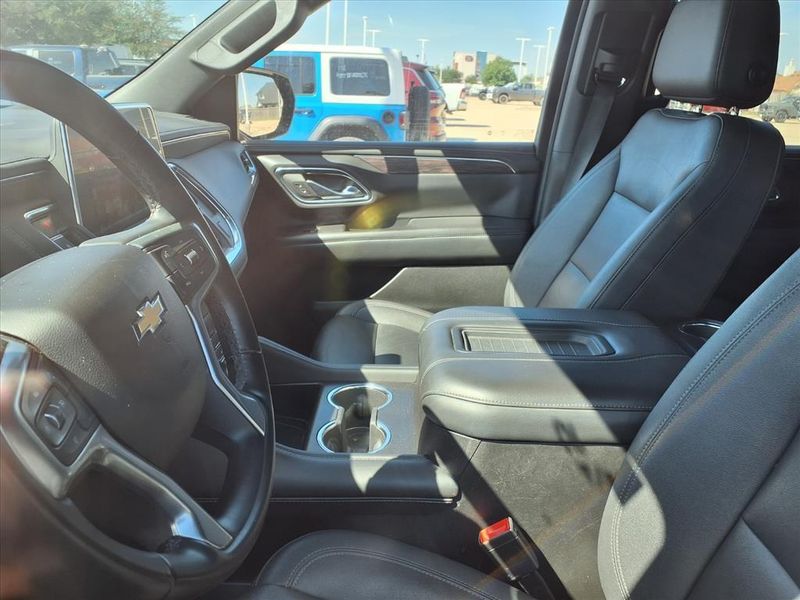 THIS VEHICLE IS EQUIPPED WITH THE FOLLOWING FEATURES AND OPTIONS :Preferred Equipment Group 1LT (1st & 2nd Row Color-Keyed Carpeted Floor Mats, Auto-Dimming Inside Rear-View Mirror, Bose 9-Speaker Stereo Audio System Feature, Bright Front & Rear Door Sill Plates, Color-Keyed Carpeting Floor Covering, Driver & Front Outboard Passenger Airbags, Enhanced Driver Information Center, Floor Console w/Storage Area, Hands-Free Rear Power Programmable Liftgate, Infotainment Display, LED Daytime Running Lamps, Memory Settings for Driver, Remote Start, SiriusXM Radio w/360L, Universal Home Remote, Wireless Charging, and Wrapped Steering Wheel), Black Leather, 10-Way Power Driver & Passenger Seat Adjusters, 2nd Row Manual Bucket Seats, 3.23 Rear Axle Ratio, 3rd row seats: split-bench, 4-Wheel Disc Brakes, 9 Speakers, ABS brakes, Air Conditioning, Alloy wheels, AM/FM radio: SiriusXM with 360L, Apple CarPlay/Android Auto, Auto High-beam Headlights, Auto-dimming Rear-View mirror, Automatic temperature control, Brake assist, Bumpers: body-color, Compass, Delay-off headlights, Deleted 3 Years of Remote Access, Driver door bin, Driver vanity mirror, Dual front impact airbags, Dual front side impact airbags, Electronic Stability Control, Emergency communication system: OnStar and Chevrolet connected services capable, Four wheel independent suspension, Front anti-roll bar, Front Bucket Seats, Front Center Armrest, Front dual zone A/C, Front High-Back Reclining Bucket Seats, Front reading lights, Fully automatic headlights, Garage door transmitter, Heated door mirrors, Heated Driver & Front Passenger Seats, Heated front seats, Illuminated entry, Leather-Appointed Seat Trim, Low tire pressure warning, Memory seat, Navigation System, Occupant sensing airbag, Outside temperature display, Overhead airbag, Overhead console, Panic alarm, Passenger door bin, Passenger vanity mirror, Power door mirrors, Power driver seat, Power Liftgate, Power passenger seat, Power steering, Power windows, Premium audio system: Chevrolet Infotainment 3 Premium, Premium Smooth Ride Suspension, Radio: Chevrolet Infotainment 3 Premium System, Rain sensing wipers, Rear air conditioning, Rear anti-roll bar, Rear reading lights, Rear seat center armrest, Rear window defroster, Rear window wiper, Remote keyless entry, Roof rack: rails only, Security system, Speed control, Speed-sensing steering, Split folding rear seat, Spoiler, Steering wheel mounted audio controls, Tachometer, Telescoping steering wheel, Tilt steering wheel, Traction control, Trip computer, Variably intermittent wipers, Voltmeter, and Wheels: 18'' x 8.5'' Bright Silver Painted Aluminum. Recent Arrival!