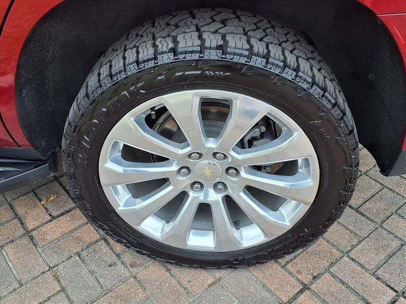 THIS VEHICLE IS EQUIPPED WITH THE FOLLOWING FEATURES AND OPTIONS :License Plate Front Mounting Package, Preferred Equipment Group 1LZ (1st & 2nd Row Color-Keyed Carpeted Floor Mats, 3rd Row 60/40 Power-Folding Split-Bench Seat, Auto-Dimming Inside Rear-View Mirror, Bose 10-Speaker Centerpoint Surround Audio Sys Ft, Bright Front & Rear Door Sill Plates, Chrome Door Handles w/Body-Color Strip, Chrome Mirror Caps, Color-Keyed Carpeting Floor Covering, Driver & Front Outboard Passenger Airbags, Dual Exhaust System, Enhanced Driver Information Center, Floor Console, Hands-Free Rear Power Programmable Liftgate, Heated 2nd Row Outboard Seats, Heated Steering Wheel, Infotainment Display, Lane Change Alert w/Side Blind Zone Alert, LED Daytime Running Lamps, Memory Settings, Outside Heated Power-Adjustable Mirrors, Power Release 2nd Row Bucket Seats, Power Tilt & Telescopic Steering Column, Rear Cross Traffic Alert, Remote Start, Safety Alert Seat, SiriusXM Radio w/360L, Universal Home Remote, Wireless Charging, and Wrapped Steering Wheel), Texas Edition (Set of 4 Wheel Locks (LPO), Texas Edition Badging, and Wheels: 22'' x 9'' Polished Aluminum (RVA)), Radiant Red Tintcoat, 10 Speakers, 20'' x 9'' Polished Aluminum Wheels, 3.23 Rear Axle Ratio, 3rd row seats: split-bench, 4-Wheel Disc Brakes, ABS brakes, Adaptive suspension, Air Conditioning, Alloy wheels, AM/FM radio: SiriusXM with 360L, Apple CarPlay/Android Auto, Auto High-beam Headlights, Auto-dimming door mirrors, Auto-dimming Rear-View mirror, Auto-leveling suspension, Automatic temperature control, Brake assist, Bumpers: body-color, Compass, Delay-off headlights, Driver door bin, Driver vanity mirror, Dual front impact airbags, Dual front side impact airbags, Dual-Pane Power Panoramic Sunroof, Electronic Stability Control, Emergency communication system: OnStar and Chevrolet connected services capable, Four wheel independent suspension, Front anti-roll bar, Front Bucket Seats, Front Center Armrest, Front dual zone A/C, Front High-Back Reclining Bucket Seats, Front reading lights, Fully automatic headlights, Garage door transmitter, Heated & Ventilated Driver & Front Passenger Seats, Heated door mirrors, Heated Driver & Front Passenger Seats, Heated front seats, Heated rear seats, Heated steering wheel, Illuminated entry, Low tire pressure warning, Magnetic Ride Control Suspension, Memory seat, Navigation System, Occupant sensing airbag, Outside temperature display, Overhead airbag, Overhead console, Panic alarm, Passenger door bin, Passenger vanity mirror, Perforated Leather Seat Trim, Power door mirrors, Power driver seat, Power Liftgate, Power passenger seat, Power steering, Power windows, Premium audio system: Chevrolet Infotainment 3 Premium, Radio: Chevrolet Infotainment 3 Premium System, Rain sensing wipers, Rear air conditioning, Rear anti-roll bar, Rear reading lights, Rear window defroster, Rear window wiper, Remote keyless entry, Roof rack: rails only, Security system, Speed control, Speed-sensing steering, Split folding rear seat, Spoiler, Steering wheel memory, Steering wheel mounted audio controls, Tachometer, Telescoping steering wheel, Tilt steering wheel, Traction control, Trip computer, Turn signal indicator mirrors, Variably intermittent wipers, Ventilated front seats, and Voltmeter. Recent Arrival!