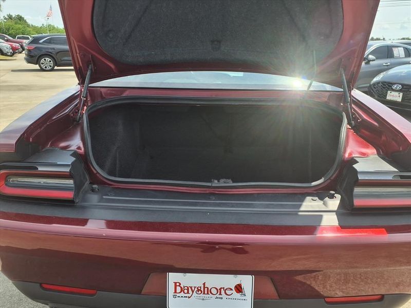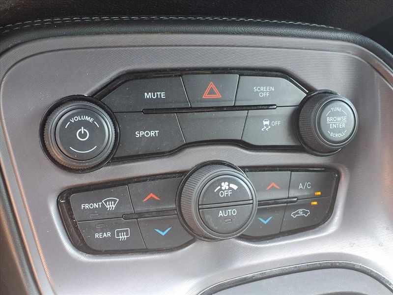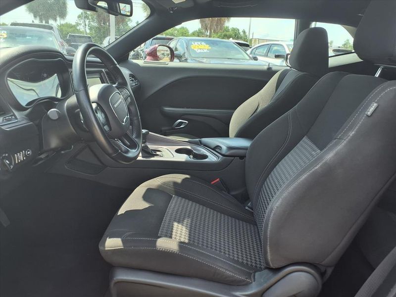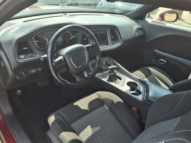 THIS VEHICLE IS EQUIPPED WITH THE FOLLOWING FEATURES AND OPTIONS :Blacktop Package (Black Fuel Filler Door, Black Grille w/Bezel, Challenger Blacktop Grille Badge, Gloss Black I/P Cluster Trim Rings, Leather Performance Steering Wheel, Satin Black Dodge Tail Lamp Badge, and Wheels: 20'' x 8.0'' Black Noise Painted), Quick Order Package 2EA, 276 Watt Amplifier, 4-Wheel Disc Brakes, 6 Speakers, ABS brakes, Air Conditioning, Alloy wheels, AM/FM radio, Anti-Lock Brakes, Anti-whiplash front head restraints, Apple CarPlay, Apple CarPlay/Android Auto, Auto Leather Wrapped Shift Knob, Auto-dimming Rear-View mirror, Automatic temperature control, AutoStick Automatic Transmission, Body Color Exterior Mirrors, Brake assist, Bumpers: body-color, Delay-off headlights, Driver door bin, Driver vanity mirror, Dual front impact airbags, Dual front side impact airbags, Electronic Stability Control, Exterior Mirrors w/Heating Element, Four wheel independent suspension, Front anti-roll bar, Front Bucket Seats, Front Center Armrest, Front dual zone A/C, Front License Plate Bracket, Front reading lights, Fully automatic headlights, Google Android Auto, GPS Antenna Input, Heated door mirrors, Houndstooth Cloth Sport Seat, Illuminated entry, Integrated Center Stack Radio, Integrated Voice Command w/Bluetooth, Leather Shift Knob, Low tire pressure warning, Media Hub (2 USB, AUX), Outside temperature display, Overhead airbag, Overhead console, Panic alarm, ParkView Rear Back-Up Camera, Passenger door bin, Passenger vanity mirror, Power door mirrors, Power driver seat, Power steering, Power windows, Radio data system, Radio: Uconnect 4 w/7'' Display, Rear anti-roll bar, Rear reading lights, Rear seat center armrest, Rear window defroster, Remote keyless entry, Security system, Speed control, Speed-sensing steering, Split folding rear seat, Spoiler, Steering wheel mounted audio controls, Tachometer, Telescoping steering wheel, Tilt steering wheel, Tip Start, Traction control, Trip computer, USB Host Flip, Variably intermittent wipers, and Wheels: 18'' x 7.5'' Aluminum Fine Silver. Odometer is 16727 miles below market average! 19/30 City/Highway MPG