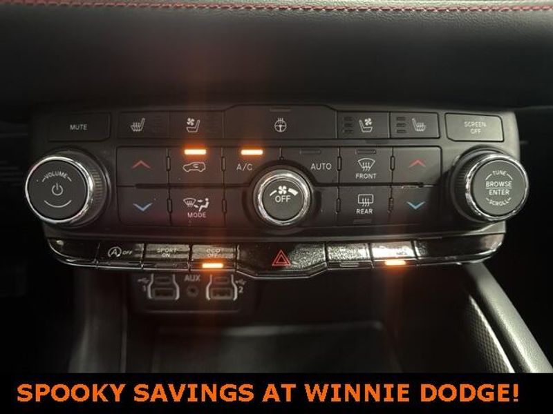 THIS VEHICLE IS EQUIPPED THE FOLLOWING FEATURES AND OPTIONS: Quick Order Package 2BG GT Plus (1-Year Trial (Registration Required), 10.1'' Touchscreen Display, 115V Auxiliary Power Outlet, 180 Amp Alternator, 4G LTE Wi-Fi Hot Spot, 7 & 4 Pin Wiring Harness, Adaptive Cruise Control w/Stop, Apple CarPlay, Auto-Dimming Exterior Driver Mirror, Black Roof Rails, Class IV Receiver Hitch, Connected Travel & Traffic Services, Disassociated Touchscreen Display, Dual Remote USB Port - Charge Only, Exterior Mirrors w/Heating Element, Exterior Mirrors w/Memory, Exterior Mirrors w/Supplemental Signals, Floor Console w/Leather Armrest, Full Speed Forward Collision Warning Plus, Global Telematics Box Module (TBM), Gloss Black Exterior Mirrors, Google Android Auto, GPS Antenna Input, GPS Navigation, HD Radio, Heated Second Row Seats, Heavy-Duty Engine Cooling, Integrated Center Stack Radio, Integrated Roof Rail Crossbars, Integrated Voice Command w/Bluetooth, Leather Trimmed Bucket Seats, Leather Wrapped Door Panels, LED Auxiliary Low Beam & Turn Signal, Power 6x9 Multi-Function Foldaway Mirrors, Power 8-Way Driver Memory 8-Way Passenger Seats, Power Driver/Passenger 4-Way Lumbar Adjust, Power Sunroof, Power Tilt & Telescopic Steering Column, Premium LED Fog Lamps, Radio: Uconnect 5 Nav w/10.1'' Display, Radio/Driver Seat/Mirrors Memory, Red Accent Stitching, SiriusXM Guardian - Included Trial (B), SiriusXM w/360L, Trailer Brake Control, USB Host Flip, and Ventilated Front Seats), 3.27 Rear Axle Ratio, 3rd row seats: split-bench, 4-Wheel Disc Brakes, 6 Speakers, ABS brakes, Air Conditioning, Alloy wheels, AM/FM radio: SiriusXM, Apple CarPlay/Android Auto, Auto-dimming Rear-View mirror, Auto-leveling suspension, Automatic temperature control, Brake assist, Bumpers: body-color, Cloth Bucket Seats w/Shift Insert, Compass, Delay-off headlights, Driver door bin, Driver vanity mirror, Dual front impact airbags, Dual front side impact airbags, Electronic Stability Control, Four wheel independent suspension, Front anti-roll bar, Front Bucket Seats, Front Center Armrest w/Storage, Front dual zone A/C, Front License Plate Bracket, Front reading lights, Fully automatic headlights, Garage door transmitter, Heated door mirrors, Heated front seats, Heated steering wheel, Illuminated entry, Knee airbag, Leather steering wheel, Low tire pressure warning, Manufacturer's Statement of Origin, Occupant sensing airbag, Outside temperature display, Overhead airbag, Overhead console, Panic alarm, ParkView Rear Back-Up Camera, Passenger door bin, Passenger vanity mirror, Power door mirrors, Power driver seat, Power Liftgate, Power steering, Power windows, Radio data system, Radio: Uconnect 4 w/8.4'' Display, Rear air conditioning, Rear anti-roll bar, Rear Load Leveling Suspension, Rear reading lights, Rear seat center armrest, Rear window defroster, Rear window wiper, Remote keyless entry, SiriusXM Radio Service, SiriusXM Satellite Radio, Speed control, Speed-sensing steering, Speed-Sensitive Wipers, Split folding rear seat, Spoiler, Sport steering wheel, Steering wheel mounted audio controls, Tachometer, Telescoping steering wheel, Tilt steering wheel, Traction control, Trip computer, Variably intermittent wipers, Voltmeter, and Wheels: 20'' x 8.0'' Fine Silver.