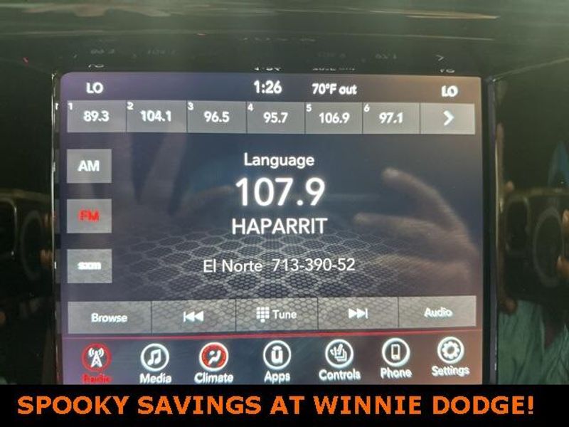 THIS VEHICLE IS EQUIPPED THE FOLLOWING FEATURES AND OPTIONS: Quick Order Package 2BD GT, 3.45 Rear Axle Ratio, 3rd row seats: split-bench, 4-Wheel Disc Brakes, 6 Speakers, ABS brakes, Air Conditioning, Alloy wheels, AM/FM radio: SiriusXM, Apple CarPlay, Apple CarPlay/Android Auto, Auto-dimming Rear-View mirror, Automatic temperature control, Brake assist, Bumpers: body-color, Cloth Bucket Seats w/Shift Insert, Compass, Delay-off headlights, Driver door bin, Driver vanity mirror, Dual front impact airbags, Dual front side impact airbags, Electronic Stability Control, Exterior Mirrors w/Heating Element, Four wheel independent suspension, Front anti-roll bar, Front Bucket Seats, Front Center Armrest w/Storage, Front dual zone A/C, Front License Plate Bracket, Front reading lights, Fully automatic headlights, Garage door transmitter, Gloss Black Exterior Mirrors, Google Android Auto, GPS Antenna Input, Heated door mirrors, Heated front seats, Heated steering wheel, Illuminated entry, Integrated Center Stack Radio, Integrated Voice Command w/Bluetooth, Knee airbag, Leather steering wheel, Low tire pressure warning, Occupant sensing airbag, Outside temperature display, Overhead airbag, Overhead console, Panic alarm, ParkView Rear Back-Up Camera, Passenger door bin, Passenger vanity mirror, Power door mirrors, Power driver seat, Power Liftgate, Power steering, Power windows, Radio data system, Radio: Uconnect 4 w/8.4'' Display, Rear air conditioning, Rear anti-roll bar, Rear reading lights, Rear seat center armrest, Rear window defroster, Rear window wiper, Red Accent Stitching, Remote keyless entry, SiriusXM Radio Service, SiriusXM Satellite Radio, Speed control, Speed-sensing steering, Speed-Sensitive Wipers, Split folding rear seat, Spoiler, Sport steering wheel, Steering wheel mounted audio controls, Tachometer, Telescoping steering wheel, Tilt steering wheel, Traction control, Trip computer, USB Host Flip, Variably intermittent wipers, Voltmeter, and Wheels: 20'' x 8.0'' Fine Silver.