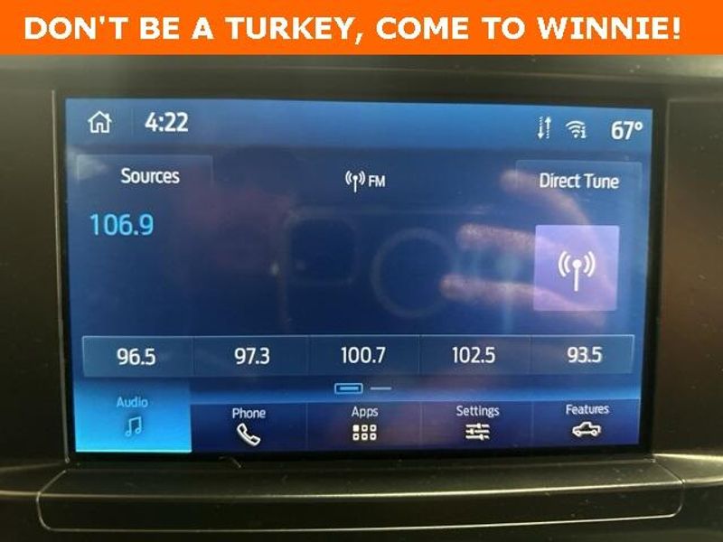 THIS VEHICLE IS EQUIPPED THE FOLLOWING FEATURES AND OPTIONS: 4-Wheel Disc Brakes, 6 Speakers, 8-Way Power Driver's Seat w/Power Lumbar, ABS brakes, Air Conditioning, Alloy wheels, AM/FM radio, Auto High-beam Headlights, Brake assist, Bumpers: chrome, Cloth 40/20/40 Front Seat, Compass, Delay-off headlights, Driver door bin, Driver vanity mirror, Dual front impact airbags, Dual front side impact airbags, Electronic Stability Control, Emergency communication system: SYNC 4 911 Assist, Exterior Parking Camera Rear, Front anti-roll bar, Front Center Armrest w/Storage, Front fog lights, Front License Plate Bracket, Front reading lights, Front wheel independent suspension, Fully automatic headlights, Heated door mirrors, Illuminated entry, Low tire pressure warning, Occupant sensing airbag, Outside temperature display, Overhead airbag, Overhead console, Panic alarm, Passenger door bin, Passenger vanity mirror, Power door mirrors, Power steering, Power windows, Radio data system, Radio: AM/FM Stereo w/6 Speakers, Rear reading lights, Rear step bumper, Rear window defroster, Remote keyless entry, Security system, Speed control, Speed-sensing steering, Split folding rear seat, Steering wheel mounted audio controls, SYNC 4, Tachometer, Telescoping steering wheel, Tilt steering wheel, Traction control, Trip computer, Variably intermittent wipers, Voltmeter, and Wheels: 17'' Silver Painted Aluminum.