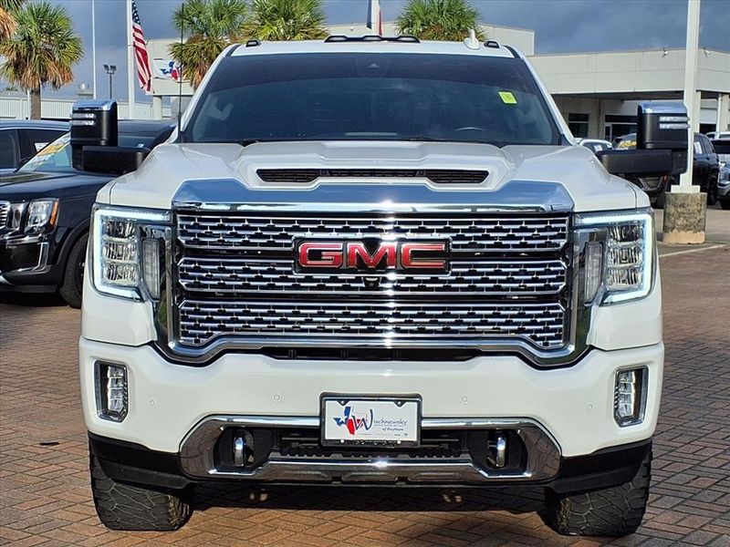 Clean CARFAX. White 2023 GMC Sierra 2500HD Denali 4WD 10-Speed Automatic Duramax 6.6L V8 Turbodiesel 10-Speed Automatic, 4WD, Leather.