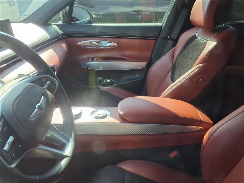 THIS VEHICLE IS EQUIPPED WITH THE FOLLOWING FEATURES AND OPTIONS :Sport Appearance, Sport Prestige Package (12.3'' 3D Digital Instrument Cluster, 2nd Row 110V AC Power Outlet, 3-Zone Climate Control, 4-Way Power Lumbar Front Passenger Seat, Adjustable Interior Ambient Lighting, Advanced Rear Occupant Alert, Aluminum Trim w/Haptic Carbon Pattern, Blind-Spot View Monitor, Ergo Motion Seat, Genesis Digital Key, Heated Steering Wheel, Integrated Memory System (IMS), Leather Seating Surfaces w/Mesh Insert, Leatherette Wrapped Upper Instrument Panel, Lexicon Premium Audio, Manual Rear Door Shades, Monobloc Front Brakes, Power Driver Seat Bolster & Cushion Extension, Power Folding ECM Mirrors w/Genesis Logo Lamp, Power Telescoping Steering Wheel, Power Tilt & Slide Panoramic Sunroof, Remote Smart Parking Assist, Reverse Parking Collision-Avoidance Assist, Surround View Monitor, Ventilated Front Seats, and Wheels: 21'' Sport Dark Sputtering Alloy), Winter Weather Package (All Season Fitted Liners and Front & Rear Mudguards), 4-Wheel Disc Brakes, 4.181 Axle Ratio, 9 Speakers, ABS brakes, Air Conditioning, Alloy wheels, Aluminum Trim w/Spin Brushed Pattern, AM/FM radio: SiriusXM, Android Auto & Apple CarPlay, Anti-whiplash front head restraints, Auto High-beam Headlights, Auto-dimming Rear-View mirror, Automatic temperature control, Brake assist, Bumpers: body-color, Cargo Cover, Delay-off headlights, Driver door bin, Driver vanity mirror, Dual front impact airbags, Dual front side impact airbags, Electronic Stability Control, Emergency communication system, Exterior Parking Camera Rear, Four wheel independent suspension, Front anti-roll bar, Front Bucket Seats, Front Center Armrest w/Storage, Front dual zone A/C, Front reading lights, Fully automatic headlights, Garage door transmitter: HomeLink, Heated door mirrors, Heated Front Bucket Seats, Heated front seats, Illuminated entry, Knee airbag, Leather Seating Surfaces, Leatherette Seating Surfaces, Low tire pressure warning, Navigation System, Occupant sensing airbag, Outside temperature display, Overhead airbag, Overhead console, Panic alarm, Passenger door bin, Passenger vanity mirror, Power door mirrors, Power driver seat, Power Liftgate, Power passenger seat, Power steering, Power windows, Radio: AM/FM/SiriusXM/HD Premium Audio System, Rain sensing wipers, Rear anti-roll bar, Rear Parking Sensors, Rear reading lights, Rear seat center armrest, Rear window defroster, Rear window wiper, Remote keyless entry, Reversible Cargo Tray, Security system, Speed control, Speed-sensing steering, Speed-Sensitive Wipers, Split folding rear seat, Spoiler, Steering wheel mounted audio controls, Tachometer, Telescoping steering wheel, Tilt steering wheel, Traction control, Trip computer, Turn signal indicator mirrors, Variably intermittent wipers, Wave Line Backlit Trim, Wheel Locks, Wheels: 18'' Real Steel Gray Alloy, and Wheels: 19'' Dark Hyper Silver Aluminum. Recent Arrival! 22/28 City/Highway MPG