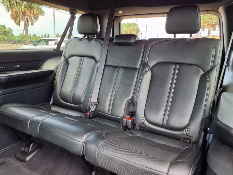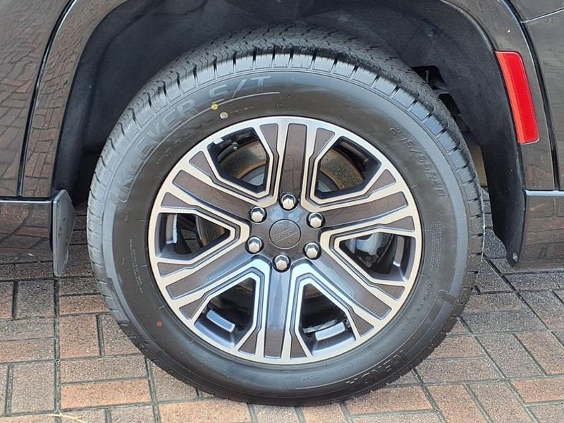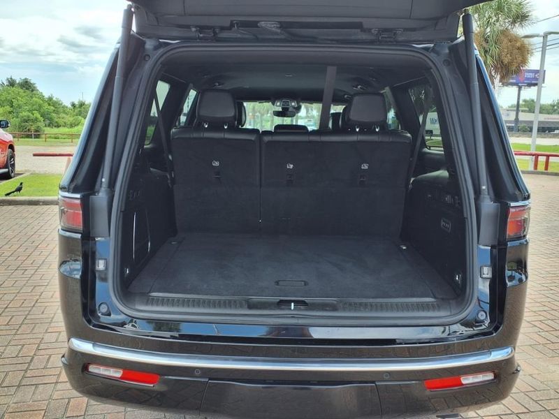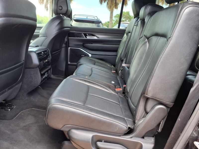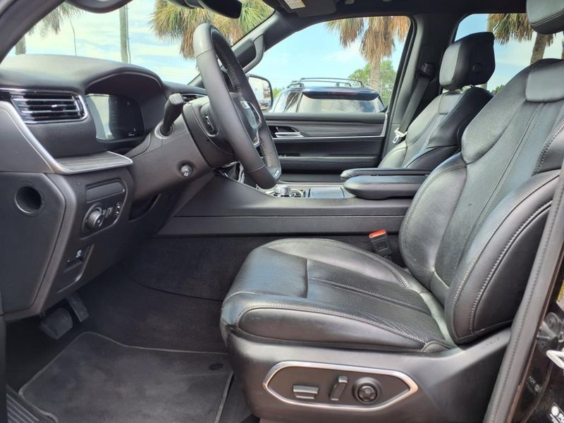 THIS VEHICLE IS EQUIPPED WITH THE FOLLOWING FEATURES AND OPTIONS :Quick Order Package 25J, 10 Speakers, 3.55 Rear Axle Ratio, 3rd row seats: bench, 4-Wheel Disc Brakes, ABS brakes, Adjustable pedals, Air Conditioning, Alloy wheels, AM/FM radio: SiriusXM with 360L, Anti-whiplash front head restraints, Audio memory, Auto-dimming door mirrors, Auto-dimming Rear-View mirror, Auto-leveling suspension, Automatic temperature control, Brake assist, Bumpers: body-color, Compass, Delay-off headlights, Driver door bin, Driver vanity mirror, Driver's Seat Mounted Armrest, Dual front impact airbags, Dual front side impact airbags, Electronic Stability Control, Emergency communication system: Automatic SOS Call, Exterior Parking Camera Rear, Four wheel independent suspension, Front anti-roll bar, Front Bucket Seats, Front Center Armrest w/Storage, Front dual zone A/C, Front fog lights, Front reading lights, Fully automatic headlights, Garage door transmitter, Genuine wood console insert, Genuine wood dashboard insert, Genuine wood door panel insert, Heated door mirrors, Heated front seats, Heated steering wheel, Illuminated entry, Knee airbag, Leather Trimmed Bucket Seats, Low tire pressure warning, Memory seat, Navigation System, Normal Duty Suspension, Occupant sensing airbag, Outside temperature display, Overhead airbag, Overhead console, Panic alarm, Passenger door bin, Passenger seat mounted armrest, Passenger vanity mirror, Pedal memory, Power adjustable front head restraints, Power door mirrors, Power driver seat, Power Liftgate, Power passenger seat, Power steering, Power windows, Radio data system, Radio: Uconnect 5 Nav w/10.1'' Display, Rain sensing wipers, Rear air conditioning, Rear anti-roll bar, Rear reading lights, Rear seat center armrest, Rear window defroster, Rear window wiper, Reclining 3rd row seat, Remote keyless entry, Security system, Speed control, Speed-sensing steering, Speed-Sensitive Wipers, Split folding rear seat, Steering wheel memory, Steering wheel mounted audio controls, Tachometer, Telescoping steering wheel, Tilt steering wheel, Traction control, Trip computer, Turn signal indicator mirrors, Variably intermittent wipers, Ventilated front seats, Voltmeter, and Wheels: 20'' x 9.0'' Premium 2 Aluminum.