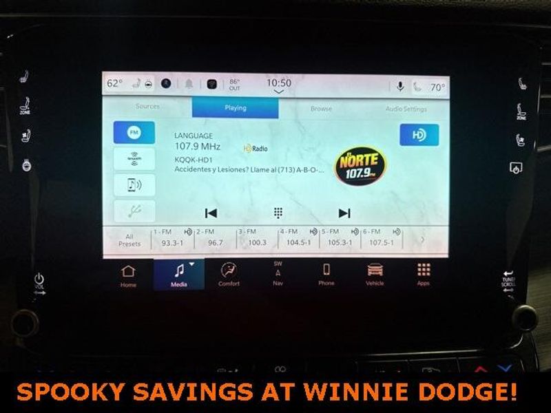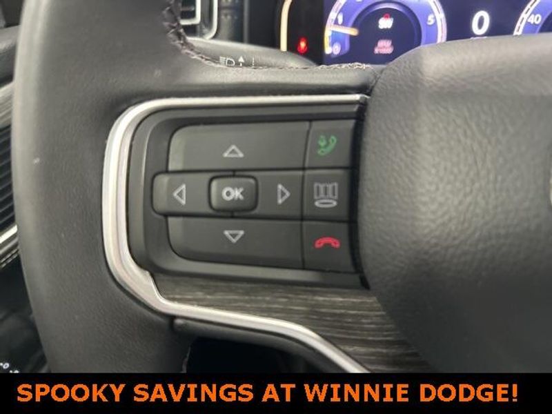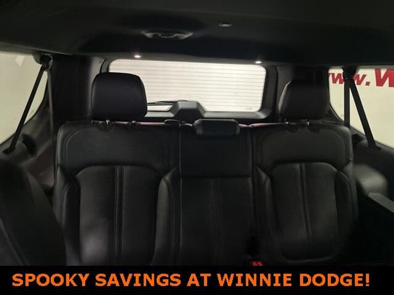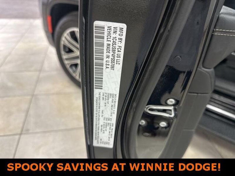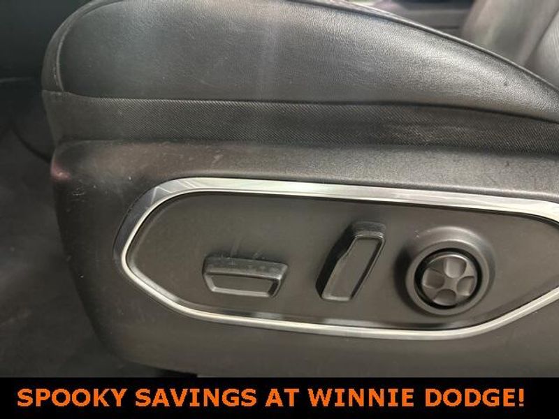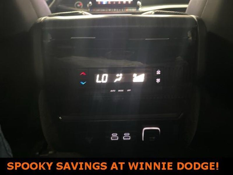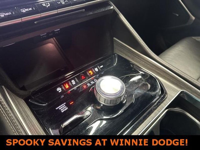 THIS VEHICLE IS EQUIPPED THE FOLLOWING FEATURES AND OPTIONS: Quick Order Package 25J, 10 Speakers, 3.55 Rear Axle Ratio, 3rd row seats: bench, 4-Wheel Disc Brakes, ABS brakes, Adjustable pedals, Air Conditioning, Alloy wheels, AM/FM radio: SiriusXM with 360L, Anti-whiplash front head restraints, Audio memory, Auto-dimming door mirrors, Auto-dimming Rear-View mirror, Auto-leveling suspension, Automatic temperature control, Brake assist, Bumpers: body-color, Compass, Delay-off headlights, Driver door bin, Driver vanity mirror, Driver's Seat Mounted Armrest, Dual front impact airbags, Dual front side impact airbags, Electronic Stability Control, Emergency communication system: Automatic SOS Call, Exterior Parking Camera Rear, Four wheel independent suspension, Front anti-roll bar, Front Bucket Seats, Front Center Armrest w/Storage, Front dual zone A/C, Front fog lights, Front reading lights, Fully automatic headlights, Garage door transmitter, Genuine wood console insert, Genuine wood dashboard insert, Genuine wood door panel insert, Heated door mirrors, Heated front seats, Heated steering wheel, Illuminated entry, Knee airbag, Leather Trimmed Bucket Seats, Low tire pressure warning, Memory seat, Navigation System, Normal Duty Suspension, Occupant sensing airbag, Outside temperature display, Overhead airbag, Overhead console, Panic alarm, Passenger door bin, Passenger seat mounted armrest, Passenger vanity mirror, Pedal memory, Power adjustable front head restraints, Power door mirrors, Power driver seat, Power Liftgate, Power passenger seat, Power steering, Power windows, Radio data system, Radio: Uconnect 5 Nav w/10.1'' Display, Rain sensing wipers, Rear air conditioning, Rear anti-roll bar, Rear reading lights, Rear seat center armrest, Rear window defroster, Rear window wiper, Reclining 3rd row seat, Remote keyless entry, Security system, Speed control, Speed-sensing steering, Speed-Sensitive Wipers, Split folding rear seat, Steering wheel memory, Steering wheel mounted audio controls, Tachometer, Telescoping steering wheel, Tilt steering wheel, Traction control, Trip computer, Turn signal indicator mirrors, Variably intermittent wipers, Ventilated front seats, Voltmeter, and Wheels: 20'' x 9.0'' Premium 2 Aluminum.