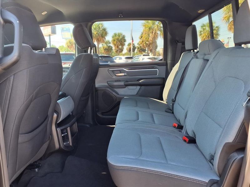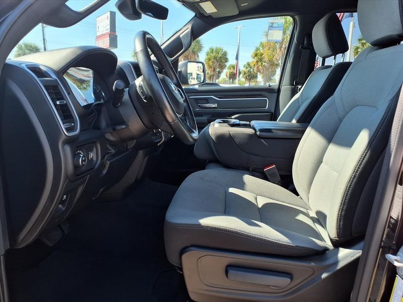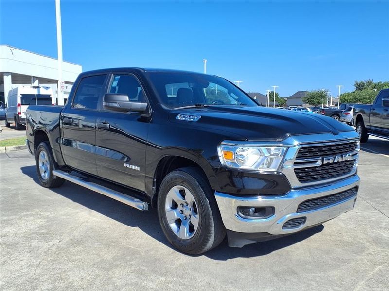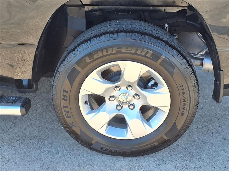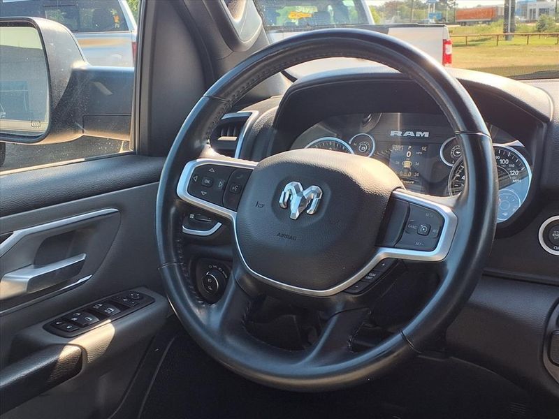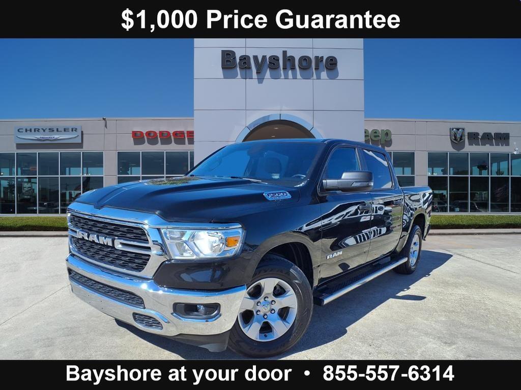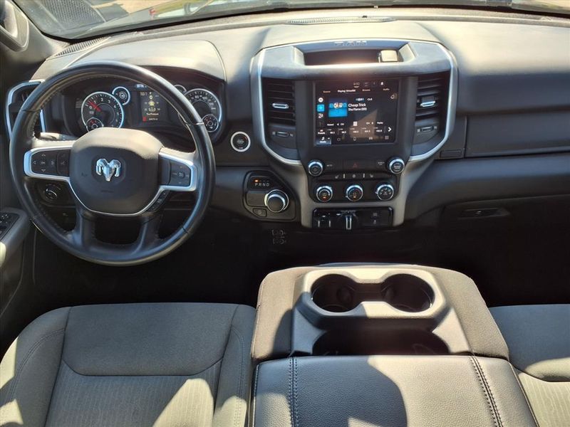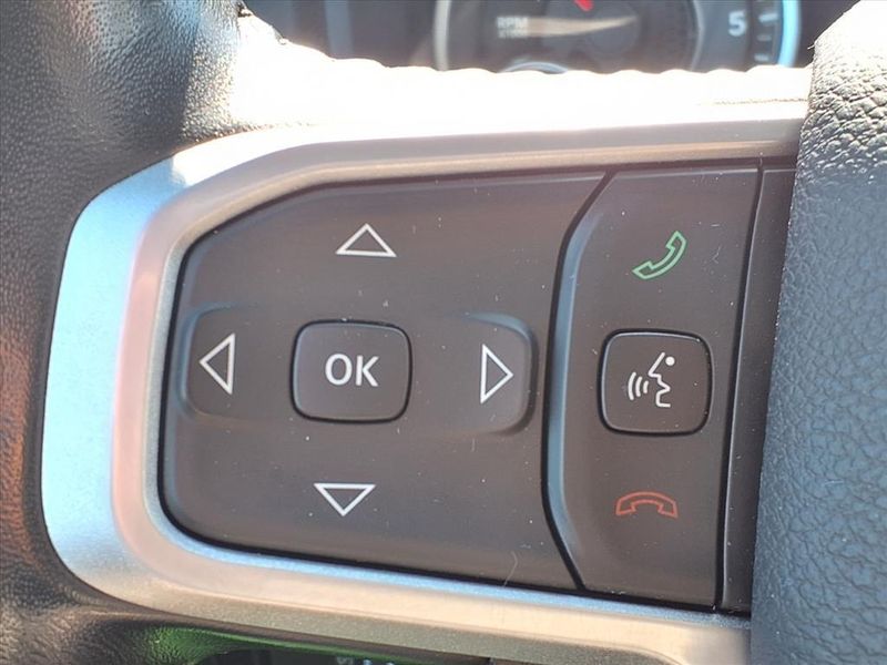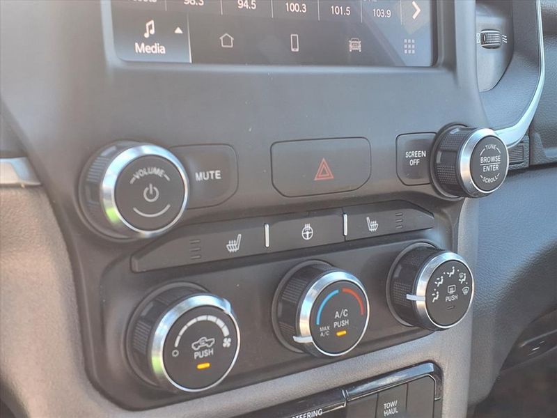THIS VEHICLE IS EQUIPPED WITH THE FOLLOWING FEATURES AND OPTIONS :Bed Utility Group (MOPAR 4 Adjustable Cargo Tie-Down Hooks, MOPAR Deployable Bed Step, MOPAR Spray In Bedliner, and Pick-Up Box Lighting), Big Horn Level 1 Equipment Group (2nd Row In Floor Storage Bins, 4G LTE Wi-Fi Hot Spot, 8.4'' Touchscreen Display, Apple CarPlay, Auto-Dimming Exterior Driver Mirror, Auto-Dimming Rear-View Mirror, Black Exterior Mirrors, Black Premium Power Mirrors, Bluetooth Handsfree Phone & Audio, Class IV Receiver Hitch, Connectivity - US/Canada, Convex Wide-Angle Exterior Mirror Insert, Exterior Mirrors Courtesy Lamps, Exterior Mirrors w/Heating Element, Exterior Mirrors w/Supplemental Signals, For Details, Visit DriveUconnect.com, For More Info, Call 800-643-2112, Front Fog Lamps, Glove Box Lamp, Google Android Auto, GPS Antenna Input, Heated Front Seats, Heated Steering Wheel, Integrated Center Stack Radio, Passenger Sun Visor w/Illuminated Mirror, Power-Folding Mirrors, Radio: Uconnect 5 W w/8.4'' Display, Rear Dome w/On/Off Switch Lamp, Rear Power Sliding Window, Rear Window Defroster, SiriusXM Satellite Radio, and USB Host Flip), Quick Order Package 27Z Big Horn (Big Horn Badge), Trailer Tow Group (Trailer Brake Control, Trailer Light Check, Trailer Reverse Steering Control, Trailer Tire Pressure Monitoring System, and Trailer Tow Mirrors), 3 Rear Seat Head Restraints, 3.21 Rear Axle Ratio, 4 Way Front Headrests, 4-Wheel Disc Brakes, 48V Belt Starter Generator, 6 Speakers, ABS brakes, Air Conditioning, Alloy wheels, AM/FM radio, Black Trailer Tow Power Mirrors (DISC), Brake assist, Bumpers: chrome, Cloth Bench Seat, Compass, Delay-off headlights, Driver door bin, Dual front impact airbags, Dual front side impact airbags, Electronic Stability Control, Emergency communication system: SiriusXM Guardian, Exterior Parking Camera Rear, Front anti-roll bar, Front Center Armrest w/Storage, Front License Plate Bracket, Front reading lights, Front Seat Back Map Pockets, Front wheel independent suspension, Fully automatic headlights, Global Telematics Box Module (TBM), Heated door mirrors, Illuminated entry, Integrated Voice Command w/Bluetooth, Leather steering wheel, Low tire pressure warning, Manufacturer's Statement of Origin, Occupant sensing airbag, Outside temperature display, Overhead airbag, Overhead console, Panic alarm, Passenger door bin, Passenger vanity mirror, Power door mirrors, Power steering, Power windows, Radio data system, Radio: Uconnect 3 w/5'' Display, RAM Grille Badge - Chrome, Rear 60/40 Folding Seat, Rear anti-roll bar, Rear seat center armrest, Rear step bumper, Remote keyless entry, Speed control, Split folding rear seat, Steering wheel mounted audio controls, Tachometer, Telescoping steering wheel, Tilt steering wheel, Traction control, Trip computer, Variably intermittent wipers, Voltmeter, Wheel to Wheel Side Steps, and Wheels: 18'' x 8'' Cast-Aluminum PainteD.