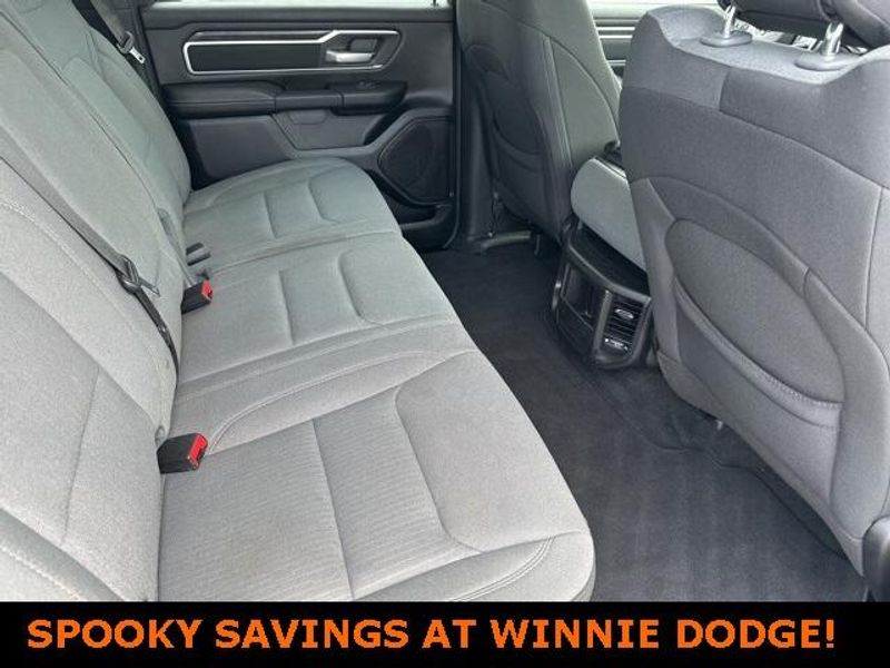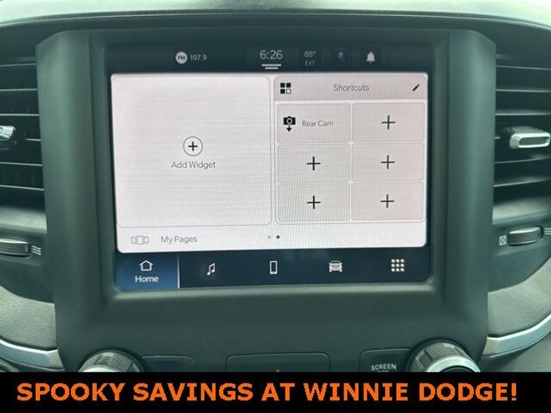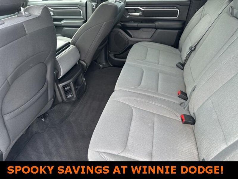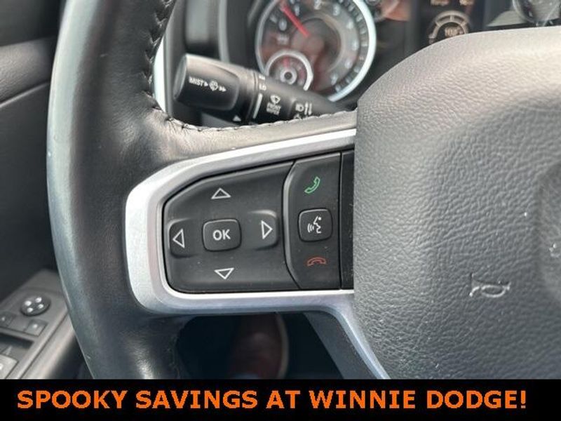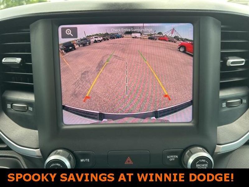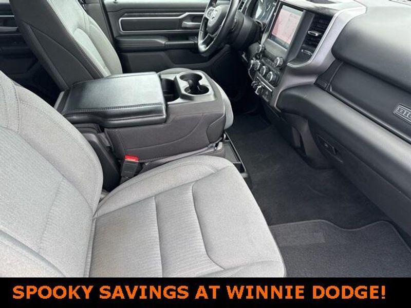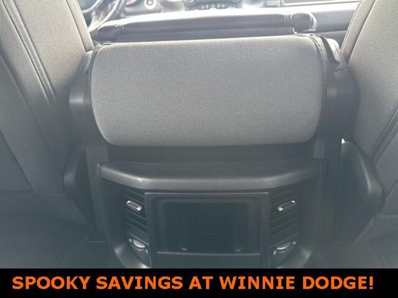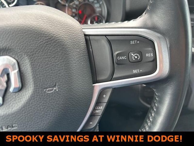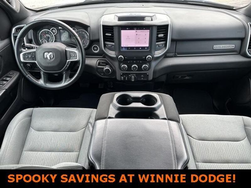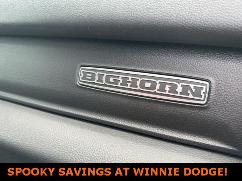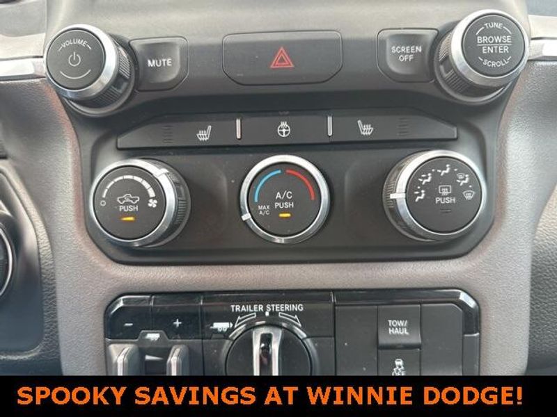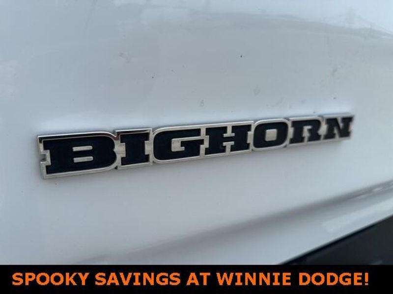 THIS VEHICLE IS EQUIPPED THE FOLLOWING FEATURES AND OPTIONS: Bed Utility Group (MOPAR 4 Adjustable Cargo Tie-Down Hooks, MOPAR Deployable Bed Step, MOPAR Spray In Bedliner, and Pick-Up Box Lighting), Big Horn Level 1 Equipment Group (2nd Row In Floor Storage Bins, 4G LTE Wi-Fi Hot Spot, 8.4'' Touchscreen Display, Apple CarPlay, Auto-Dimming Exterior Driver Mirror, Auto-Dimming Rear-View Mirror, Black Exterior Mirrors, Black Premium Power Mirrors, Bluetooth Handsfree Phone & Audio, Class IV Receiver Hitch, Connectivity - US/Canada, Convex Wide-Angle Exterior Mirror Insert, Exterior Mirrors Courtesy Lamps, Exterior Mirrors w/Heating Element, Exterior Mirrors w/Supplemental Signals, For Details, Visit DriveUconnect.com, For More Info, Call 800-643-2112, Front Fog Lamps, Glove Box Lamp, Google Android Auto, GPS Antenna Input, Heated Front Seats, Heated Steering Wheel, Integrated Center Stack Radio, Passenger Sun Visor w/Illuminated Mirror, Power-Folding Mirrors, Radio: Uconnect 5 W w/8.4'' Display, Rear Dome w/On/Off Switch Lamp, Rear Power Sliding Window, Rear Window Defroster, SiriusXM Satellite Radio, and USB Host Flip), Quick Order Package 27Z Big Horn (Big Horn Badge), Trailer Tow Group (Trailer Brake Control, Trailer Light Check, Trailer Reverse Steering Control, Trailer Tire Pressure Monitoring System, and Trailer Tow Mirrors), 3 Rear Seat Head Restraints, 3.21 Rear Axle Ratio, 4 Way Front Headrests, 4-Wheel Disc Brakes, 48V Belt Starter Generator, 6 Speakers, ABS brakes, Air Conditioning, Alloy wheels, AM/FM radio, Black Trailer Tow Power Mirrors (DISC), Brake assist, Bumpers: chrome, Cloth Bench Seat, Compass, Delay-off headlights, Driver door bin, Dual front impact airbags, Dual front side impact airbags, Electronic Stability Control, Emergency communication system: SiriusXM Guardian, Exterior Parking Camera Rear, Front anti-roll bar, Front Center Armrest w/Storage, Front License Plate Bracket, Front reading lights, Front Seat Back Map Pockets, Front wheel independent suspension, Fully automatic headlights, Global Telematics Box Module (TBM), Heated door mirrors, Illuminated entry, Integrated Voice Command w/Bluetooth, Leather steering wheel, Low tire pressure warning, Manufacturer's Statement of Origin, Occupant sensing airbag, Outside temperature display, Overhead airbag, Overhead console, Panic alarm, Passenger door bin, Passenger vanity mirror, Power door mirrors, Power steering, Power windows, Radio data system, Radio: Uconnect 3 w/5'' Display, RAM Grille Badge - Chrome, Rear 60/40 Folding Seat, Rear anti-roll bar, Rear seat center armrest, Rear step bumper, Remote keyless entry, Speed control, Split folding rear seat, Steering wheel mounted audio controls, Tachometer, Telescoping steering wheel, Tilt steering wheel, Traction control, Trip computer, Variably intermittent wipers, Voltmeter, Wheel to Wheel Side Steps, and Wheels: 18'' x 8'' Cast-Aluminum PainteD.